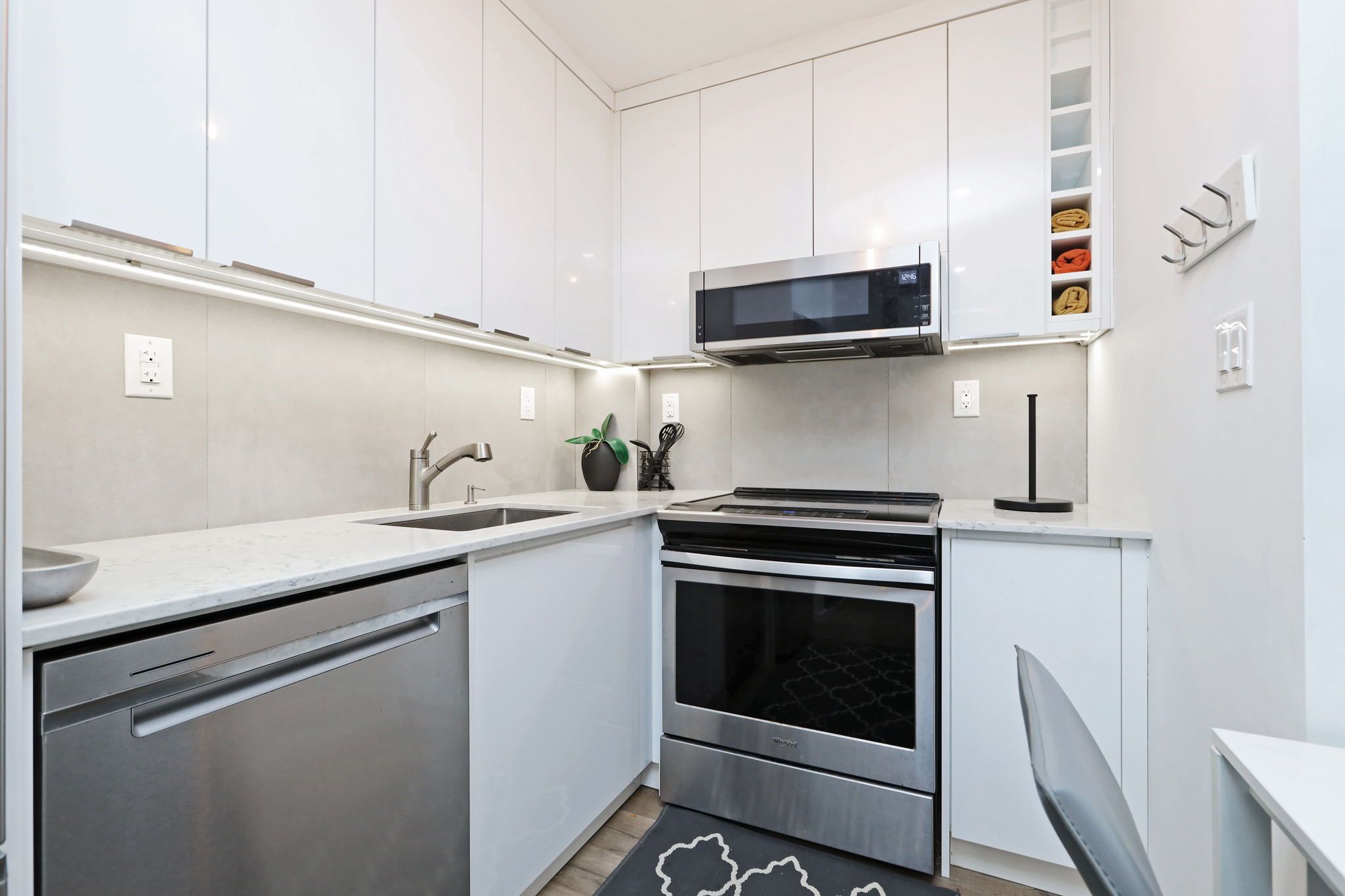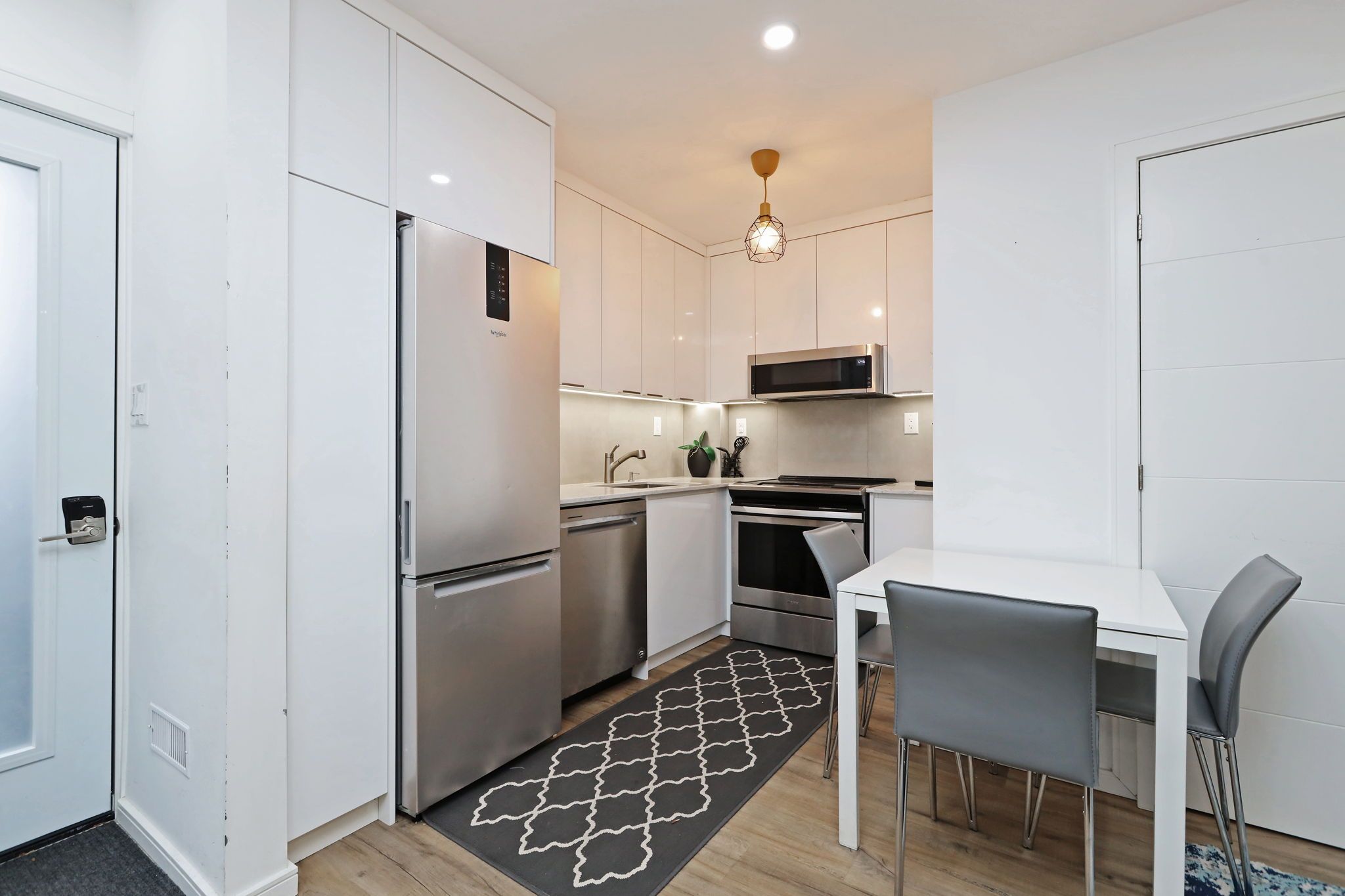• Modern kitchen equipped with stainless steel appliances.