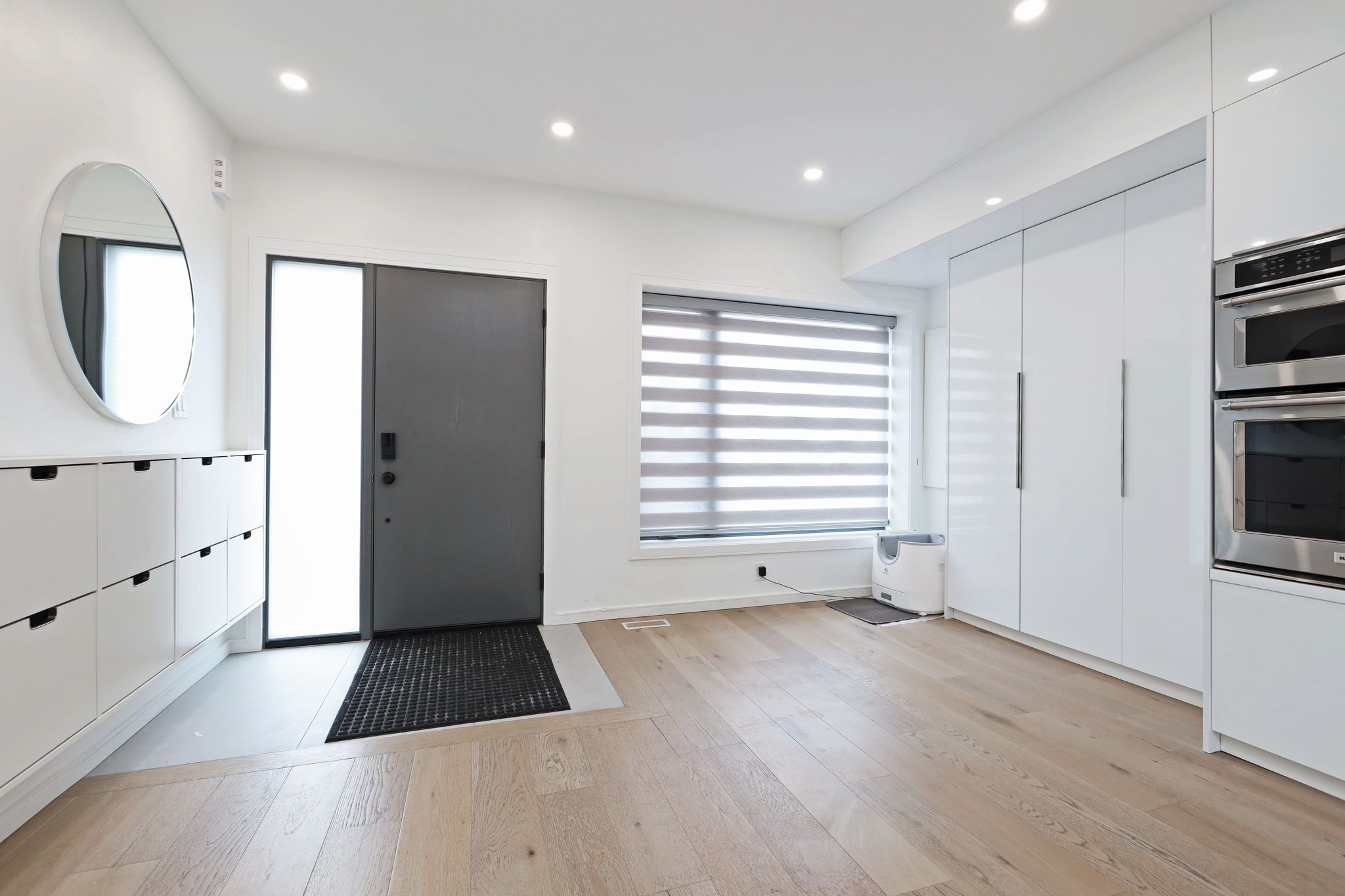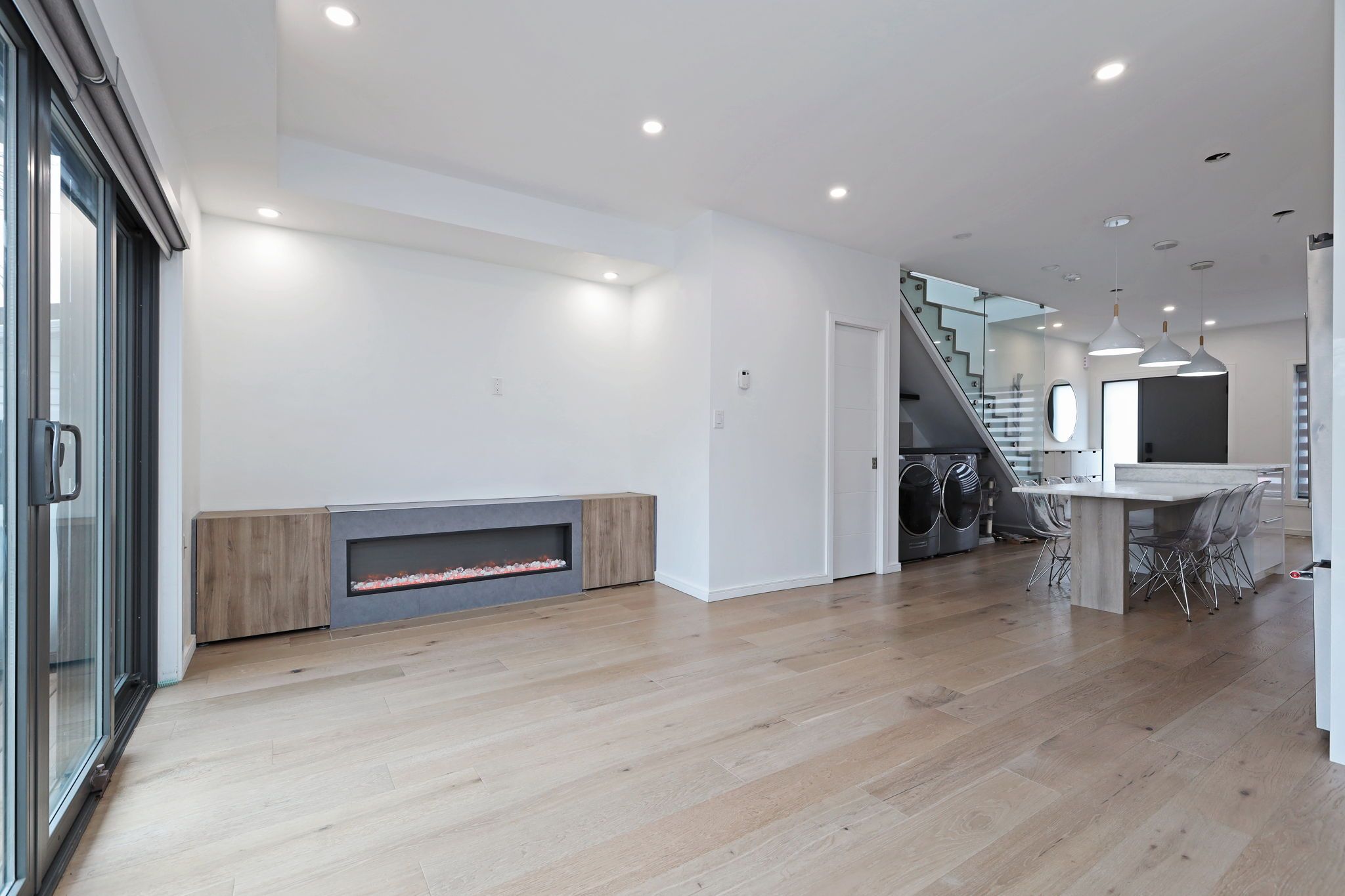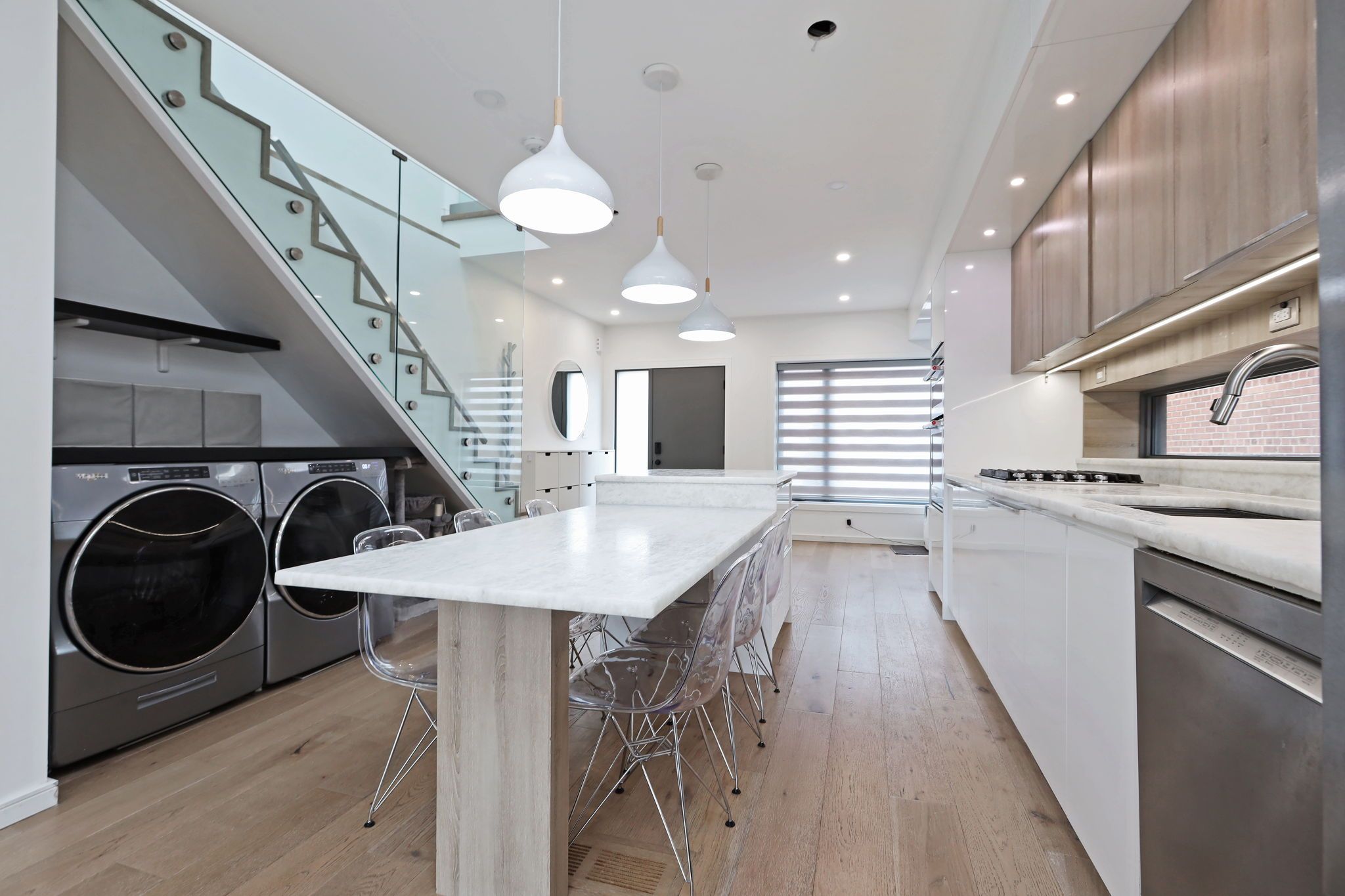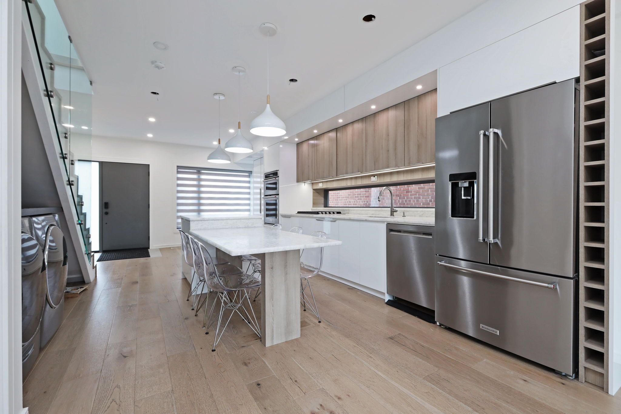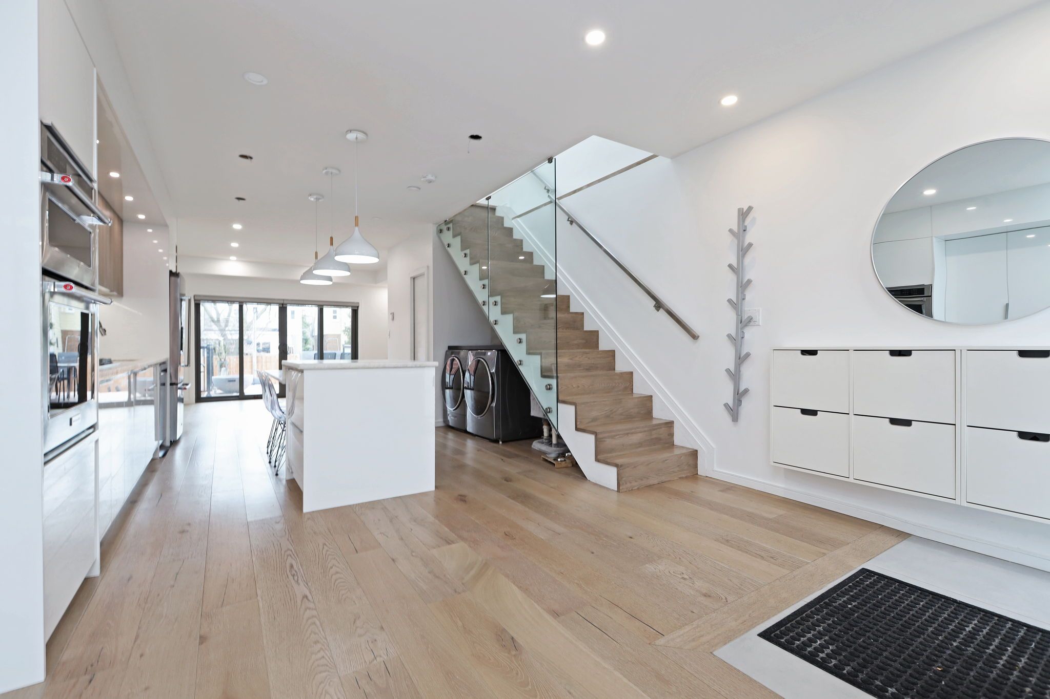 Bright, modern, detached 3 bed home in toronto's popular east end. This home offers clean lines and light filled rooms with large picture windows and skylights. Ideal for those seeking more space and flexibility, it's functional layout has a large kitchen with stunning quarzite large eat-in island, stainless steel appliances and handy powder room and laundry on the same floor. The living room with cozy fireplace overlooks the rare oversized backyard and deck, complete with included outdoor furniture for easy entertaining. Good sized bedrooms, primary with an ensuite, all have large windows and blinds. Conveniently located near woodbine subway for an easy downtown commute, and just minutes to the danforth's restaurants, cafés, and shops. Enjoy quick access to taylor creek park, local pools, and the beaches, all within a short bike ride. Close to michael garron hospital - an excellent option for medical professionals looking for a well-located, comfortable rental. Heat, hydro, water included.