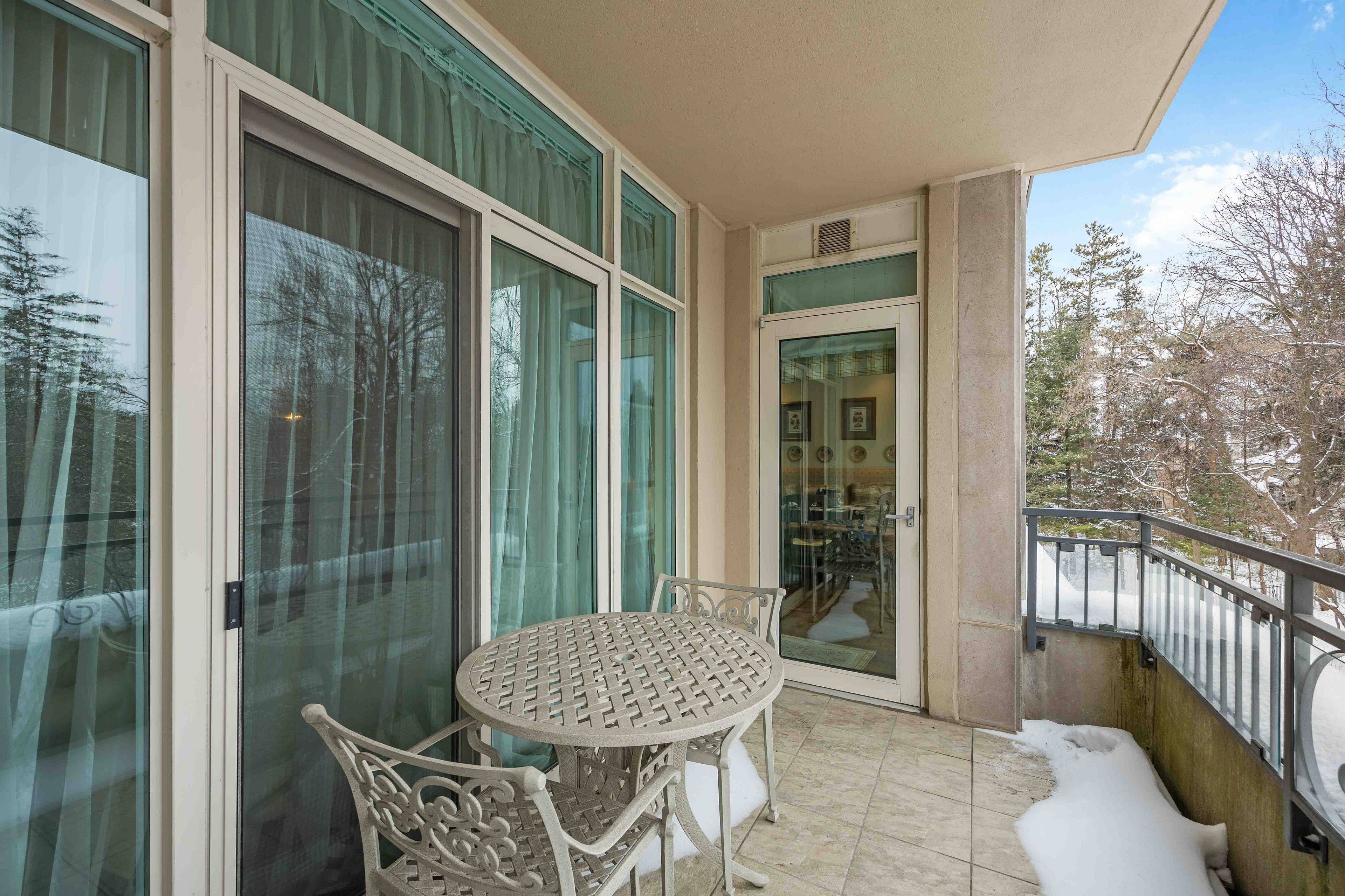 A rare opportunity to own a ravine-facing residence at the avignon by tridel, an intimate luxury building recognized for its privacy, craftsmanship, and understated elegance. This boutique six-storey community offers a refined living experience in one of thornhill's most desirable setting. Residents are welcomed by a beautifully appointed lobby with 24-hour concierge service and a calm, private atmosphere throughout the building. The suite is thoughtfully designed with generous ceiling heights, serene treetop views, and a private outdoor terrace-ideal for quiet mornings or relaxed outdoor dining. Quality finishes and a well-considered layout create a home that feels both sophisticated and comfortable, equally suited for everyday living and entertaining. The location offers a rare balance of natural surroundings with convenient access to nearby shops, services, and daily essentials. Completing the offering are two extra-large parking spaces, providing exceptional ease of use, and a heated room-sized storage locker-a rare and highly practical feature seldom found in condominium living. A private retreat in a truly distinguished residence.