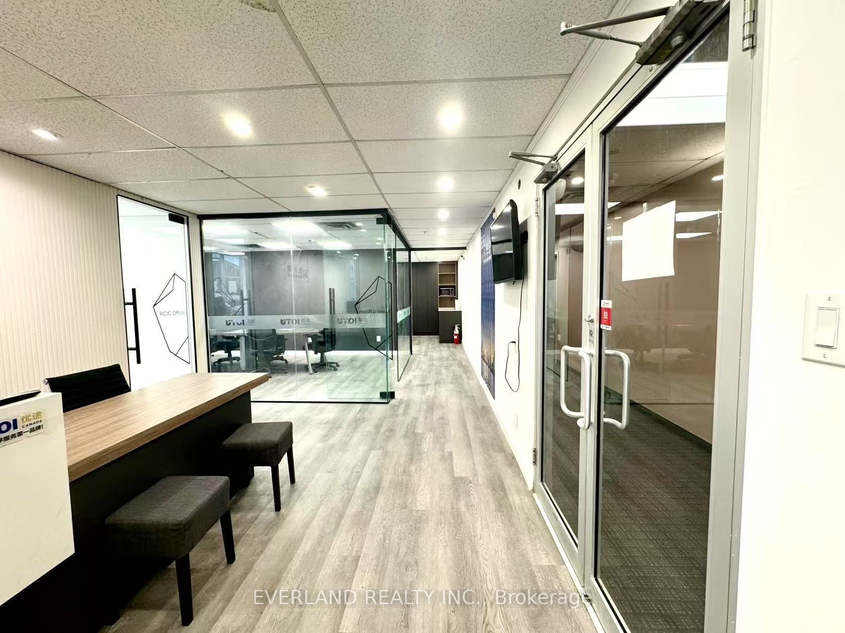 • Includes a reception area, separate offices, and a board room.