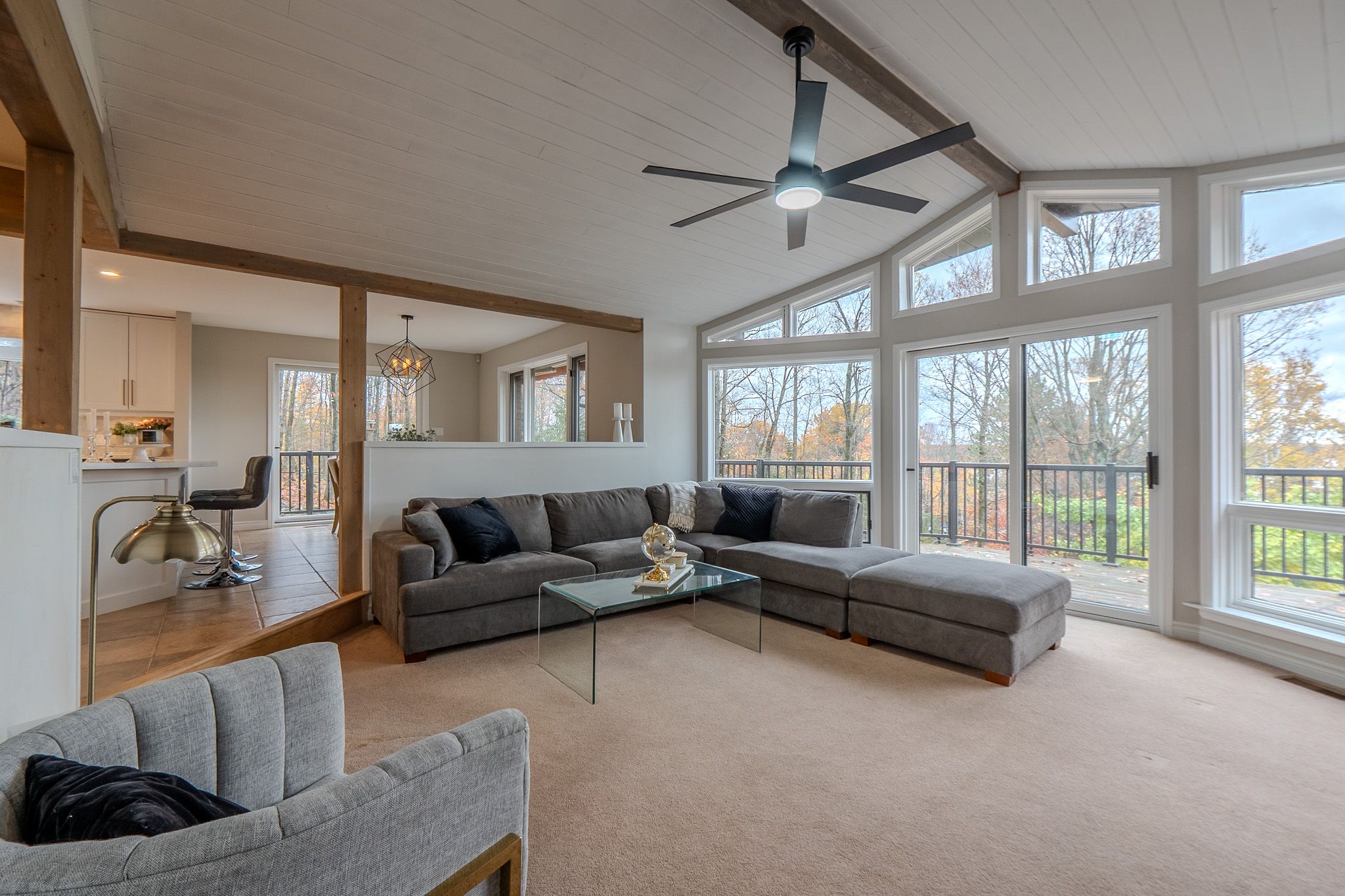 • Open concept layout with vaulted ceilings for spacious living.