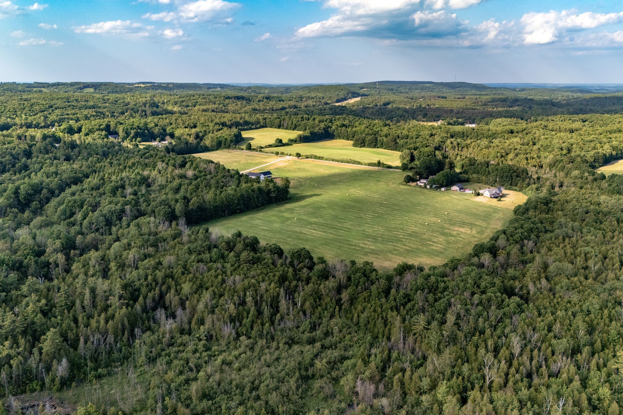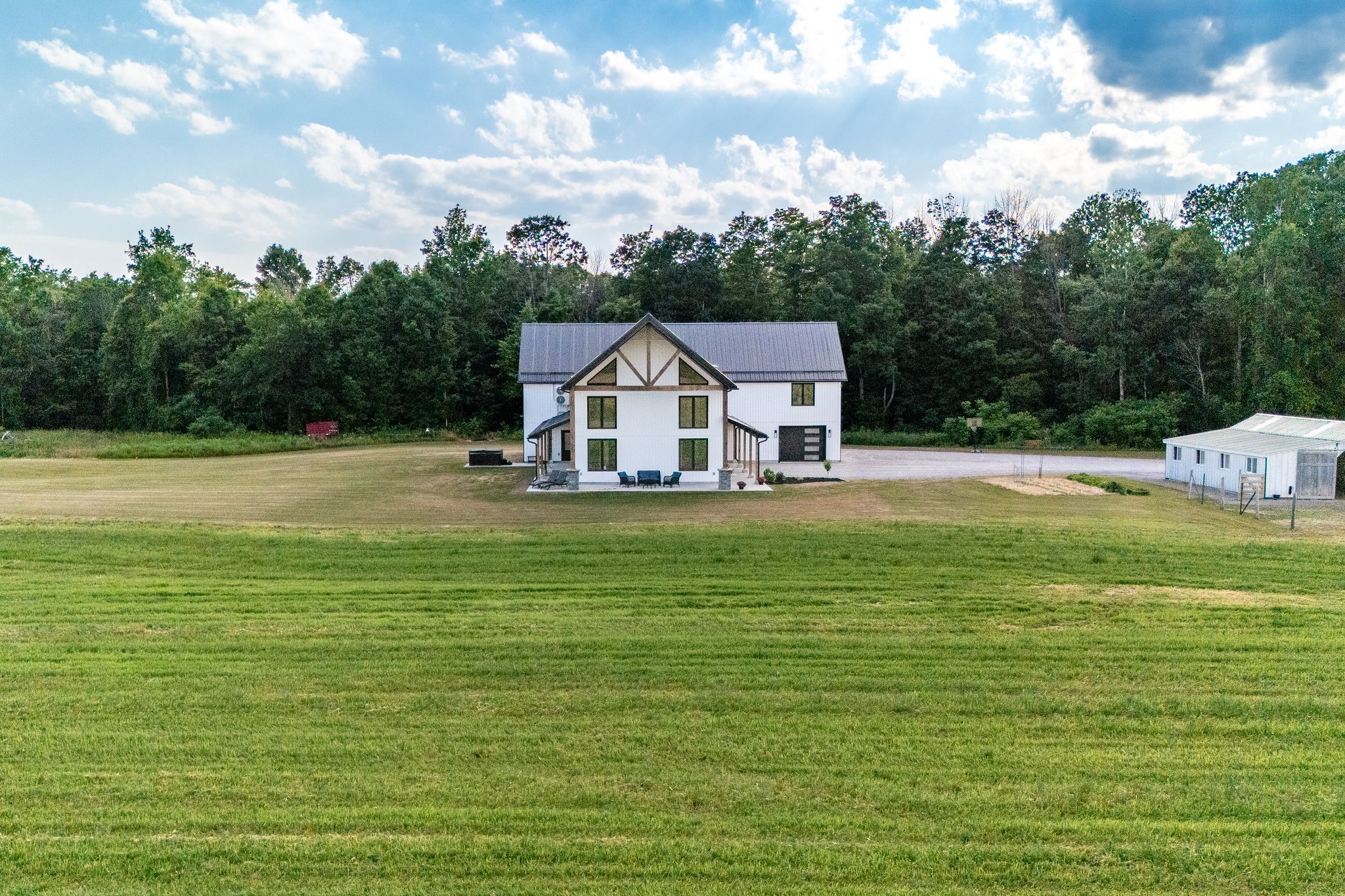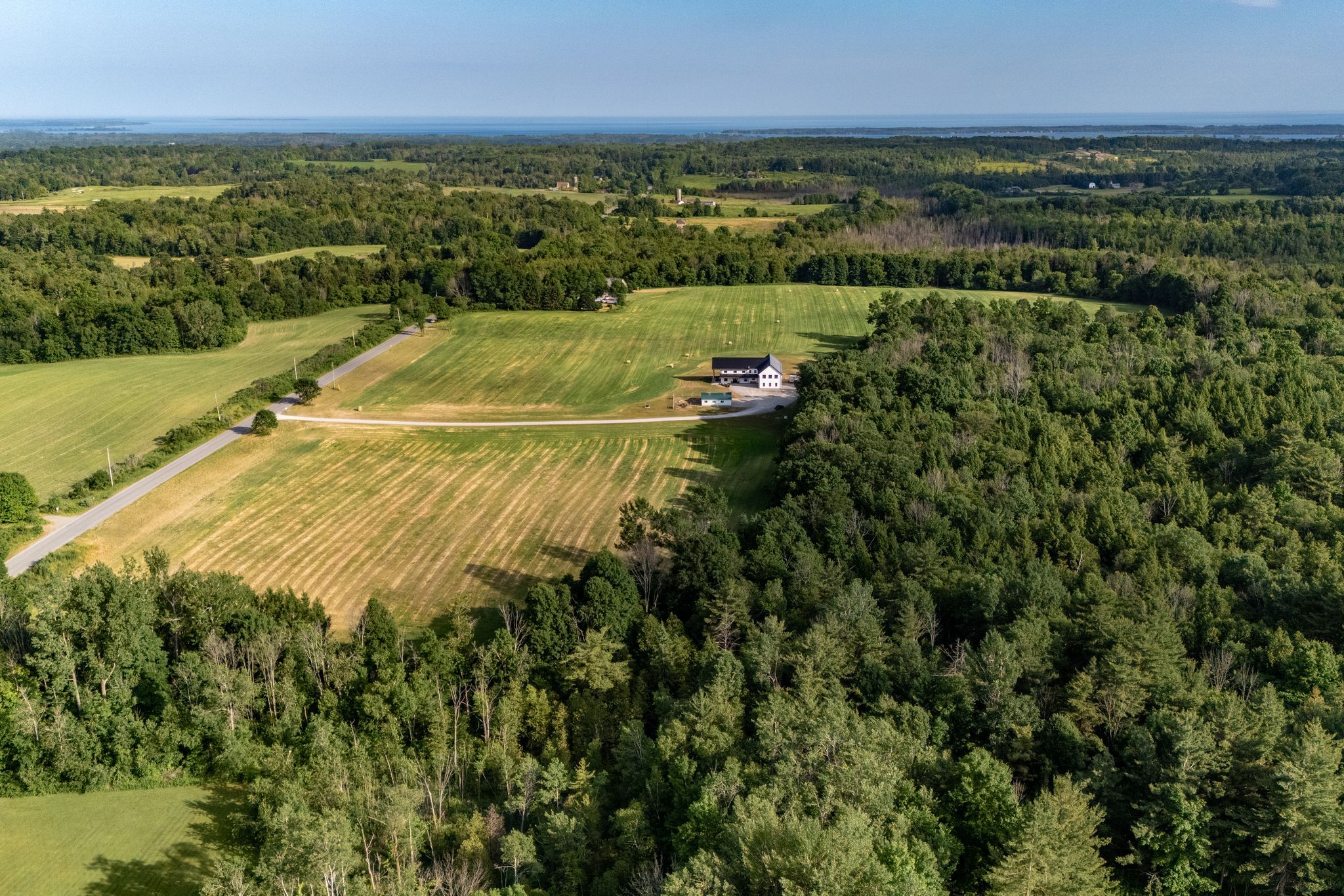 63. 16 acres of opportunity-a rare chance to slow down, claim as your own, and create your dream lifestyle. At the heart of the property sits a 2023 custom-built architectural masterpiece with over 5,300 sq ft of refined living space. Featuring 5 bedrooms and 4 bathrooms, soaring 26-ft ceilings with beam detail, and heated polished concrete floors throughout, the home blends bold design with modern comfort. The custom kitchen overlooks the living and dining areas, with quartz counters and backsplash, glass cabinetry, premium pot drawers, pot filler, full appliance package, and 14-ft centre island, plus a secondary prep kitchen-perfect for entertaining, baking, or large-family living. The primary suite includes a walkout to the covered stamped concrete porch, a 5-pc ensuite with soaker tub and glass shower, and a bright walk-in closet. The upper level features a large bonus room ideal for a theatre, gym, private retreat, or in-law suite potential, plus three additional bedrooms and two full baths. Perfect for a hobby farm, hay operation, homestead, or private country retreat, this property offers space to raise animals, garden, explore nature, and enjoy peace and solitude. The land is systematically tile drained, ideal for farming, gardening, or expanded agricultural use. Open fields provide room for animals, fencing, and hay production, while portions have been successfully cash-cropped with corn and soybeans. Dedicated garden areas support a "living off the land" lifestyle, and fruit trees line the driveway. Wooded trails and a creek offer walking, off-road adventures, or recreational pursuits-balancing quiet solitude with outdoor activity. A 7-stall horse barn adds exceptional value for equestrian or hobby-farm enthusiasts. Minutes to area golf courses, 401 access, and amenities-this is more than a home; it's land, lifestyle, and long-term potential. Extras: hydronic heating system, constant pressure well pump, electrical rough-in for generator.