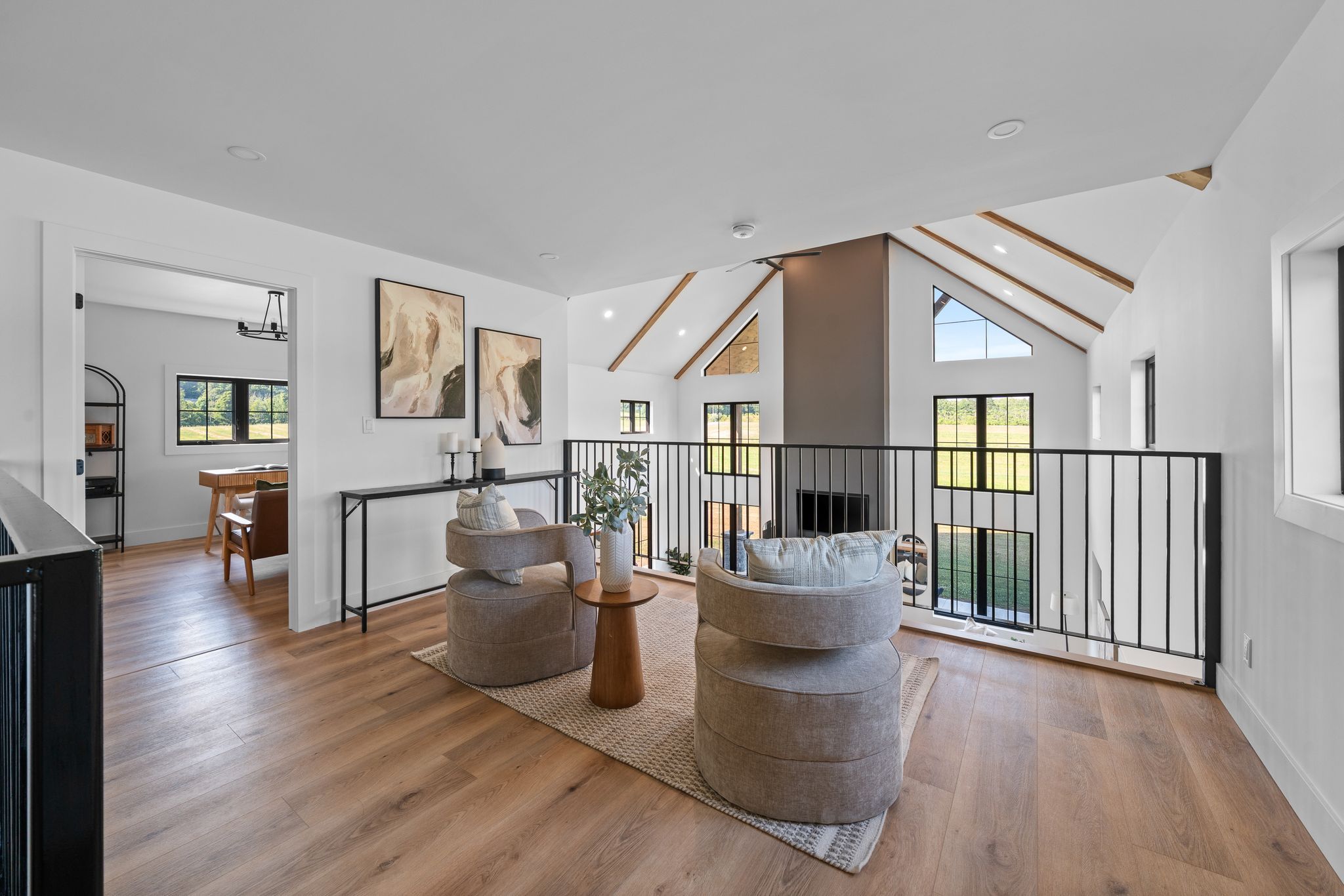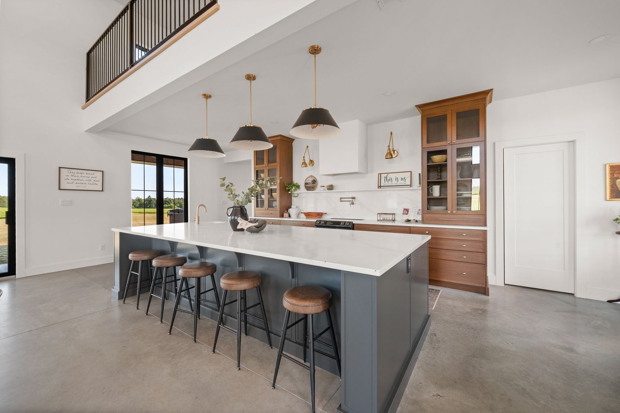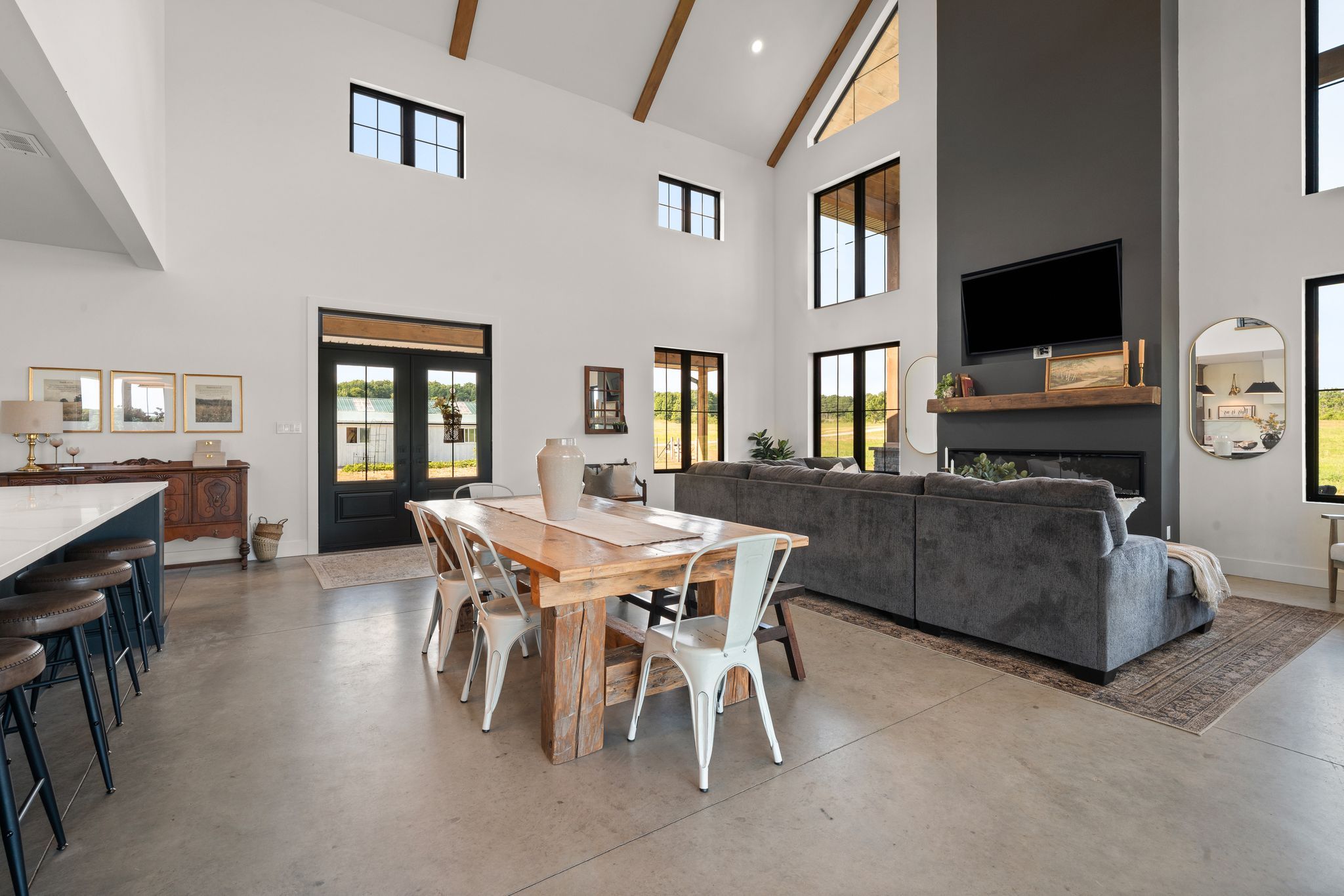 63. 16 acres of opportunity-a rare chance to slow down, claim as your own, and create your dream lifestyle. At the heart of the property sits a 2023 custom-built architectural masterpiece with over 5,300 sq ft of refined living space. Featuring 5 bedrooms and 4 bathrooms, soaring 26-ft ceilings with beam detail, and heated polished concrete floors throughout, the home blends bold design with modern comfort. The custom kitchen overlooks the living and dining areas, with quartz counters and backsplash, glass cabinetry, premium pot drawers, pot filler, full appliance package, and 14-ft centre island, plus a secondary prep kitchen-perfect for entertaining, baking, or large-family living. The primary suite includes a walkout to the covered stamped concrete porch, a 5-pc ensuite with soaker tub and glass shower, and a bright walk-in closet. The upper level features a large bonus room ideal for a theatre, gym, private retreat, or in-law suite potential, plus three additional bedrooms and two full baths. Perfect for a hobby farm, hay operation, homestead, or private country retreat, this property offers space to raise animals, garden, explore nature, and enjoy peace and solitude. The land is systematically tile drained, ideal for farming, gardening, or expanded agricultural use. Open fields provide room for animals, fencing, and hay production, while portions have been successfully cash-cropped with corn and soybeans. Dedicated garden areas support a "living off the land" lifestyle, and fruit trees line the driveway. Wooded trails and a creek offer walking, off-road adventures, or recreational pursuits-balancing quiet solitude with outdoor activity. A 7-stall horse barn adds exceptional value for equestrian or hobby-farm enthusiasts. Minutes to area golf courses, 401 access, and amenities-this is more than a home; it's land, lifestyle, and long-term potential. Extras: hydronic heating system, constant pressure well pump, electrical rough-in for generator.