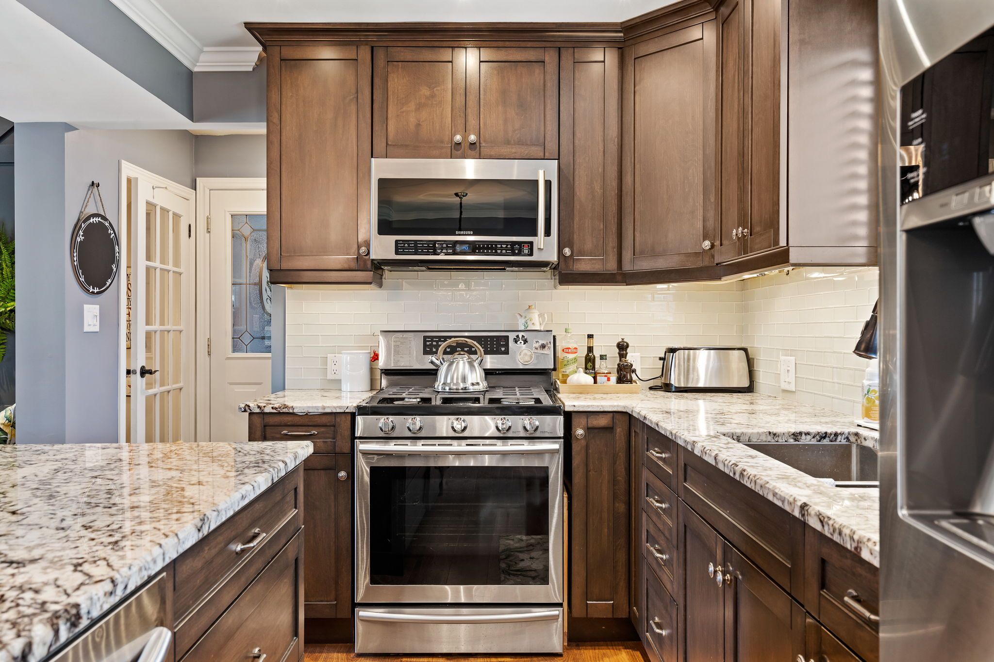 • Stunning kitchen with a large granite island, perfect for gatherings.