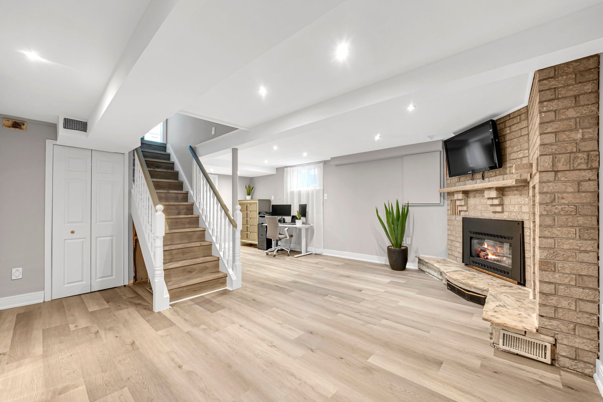 • Fully finished basement with a fireplace, walkout, and versatile layout.