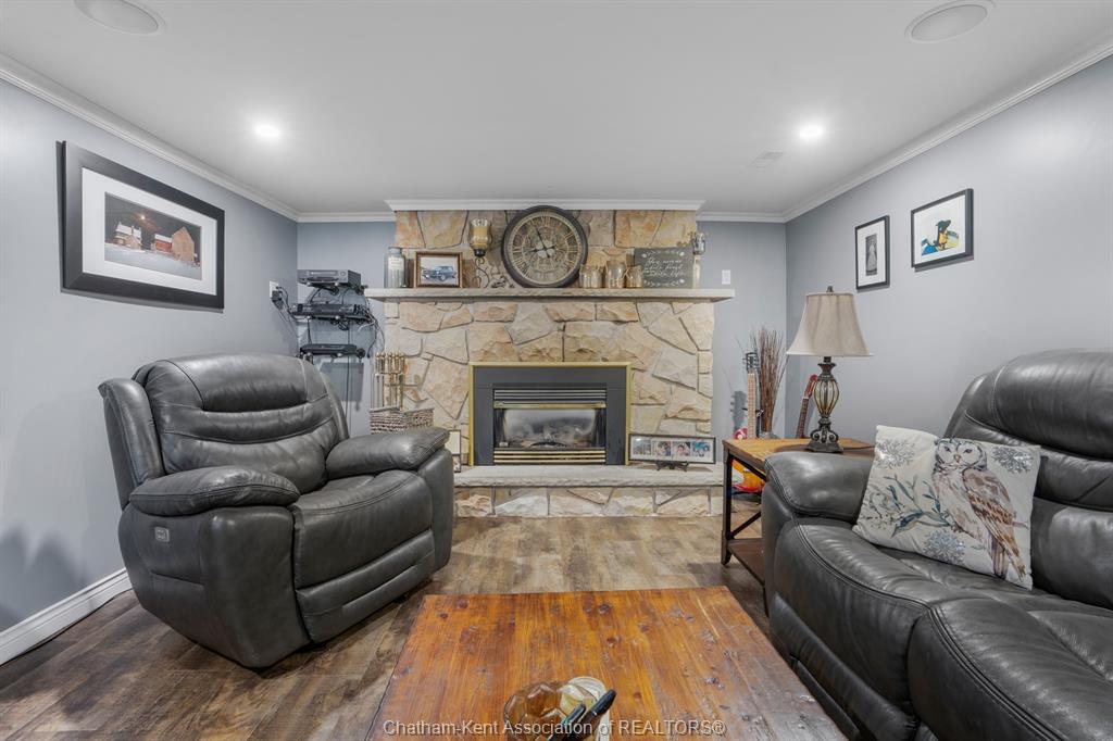 • Cozy basement with gas fireplace, perfect for relaxing evenings.