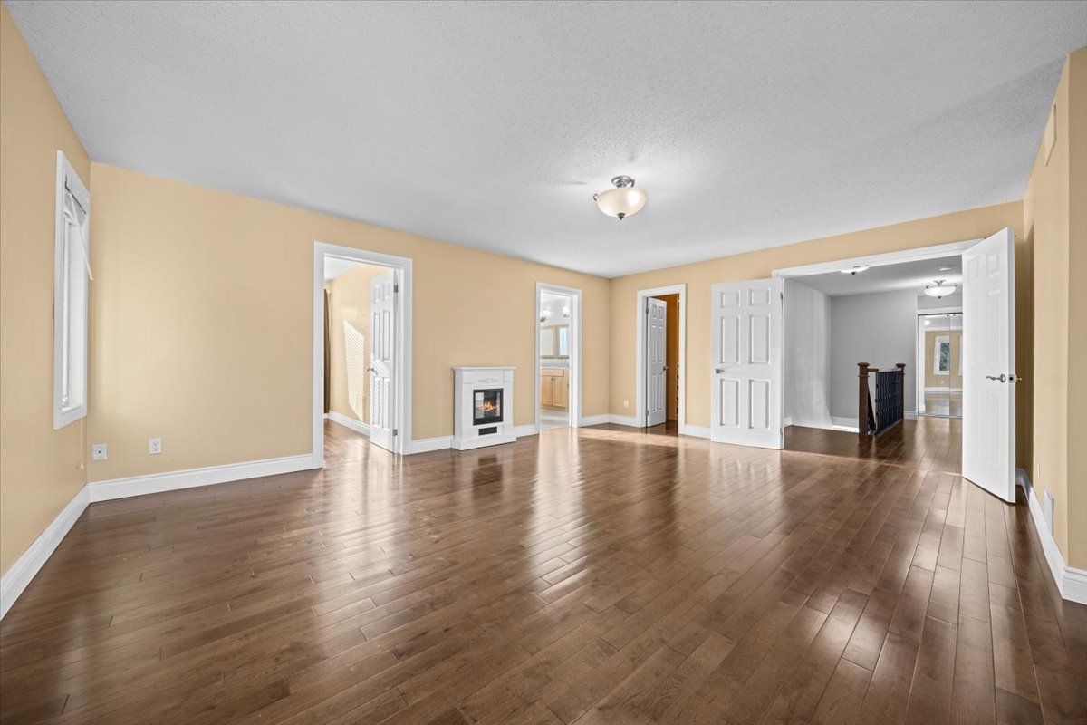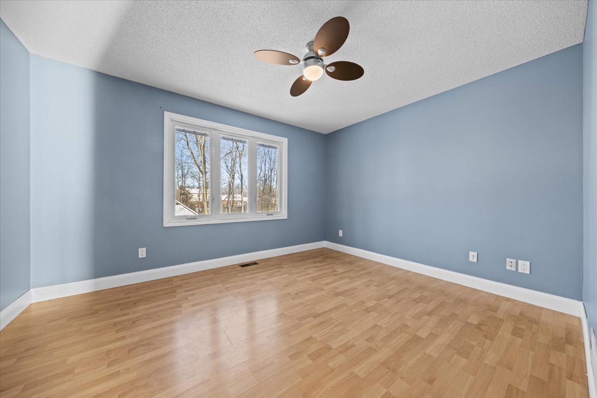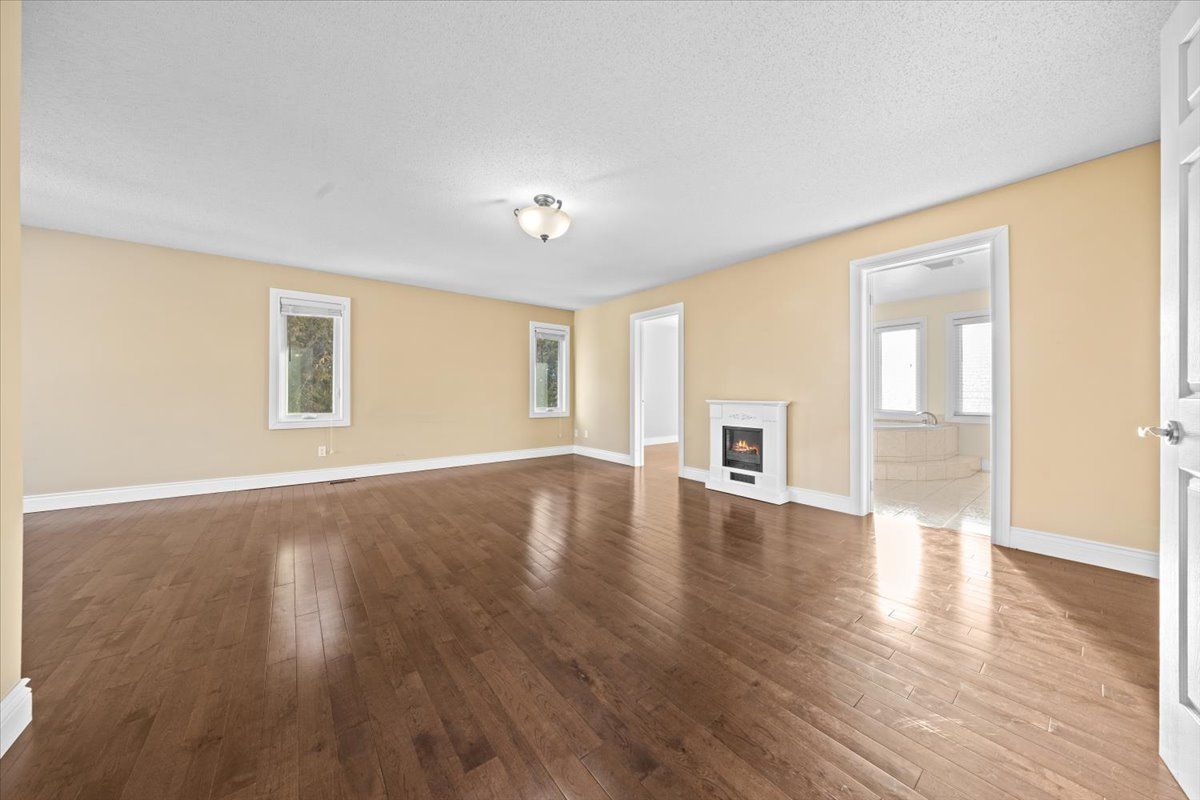 Start your day with peace of mind and predictable costs: this home averages under $300/month in utilities, with geothermal heating and triple-pane windows helping keep things efficient year-round, plus the simplicity of primarily a hydro bill. Set on a private, tree-lined lot in a peaceful, family-oriented community, this property offers a rare sense of privacy and tranquility while still being close to everyday conveniences. The home has been professionally winterized, offering added comfort and protection through every season. Inside, pride of ownership is clear throughout. The main level features spacious principal rooms with rich, dark-stained hardwood flooring and a warm, inviting living area centered around an airtight wood-burning fireplace insert framed with cultured stone. The kitchen is well appointed with stainless steel appliances and plenty of workspace, flowing naturally to a large 14' x 28' deck with a gazebo. Overlooking the heated saltwater inground pool (2016), this outdoor area is perfect for family gatherings and summer entertaining. Upstairs, the primary suite is truly one-of-a-kind and feels like a private retreat of its own, complete with a spacious sitting area, separate den/office, massive walk-in closet, and an oversized ensuite bathroom - ideal for busy parents who want space to relax, recharge, or work in peace. Major updates and improvements ensure lasting comfort and efficiency, including triple-pane windows throughout (2017-2019), 200-amp electrical service with ev charger, full septic replacement with waterloo biofilter (2016) and new tank (2025), new hot water tank (2025), new insulated garage doors (2025), and insulated basement flooring for added warmth and comfort. The home is also wired for ethernet, offering reliable connectivity for remote work or entertainment. A rare blend of character, function, and privacy in a setting families will love