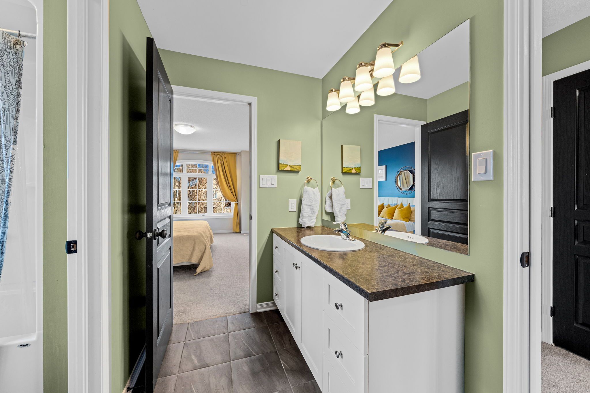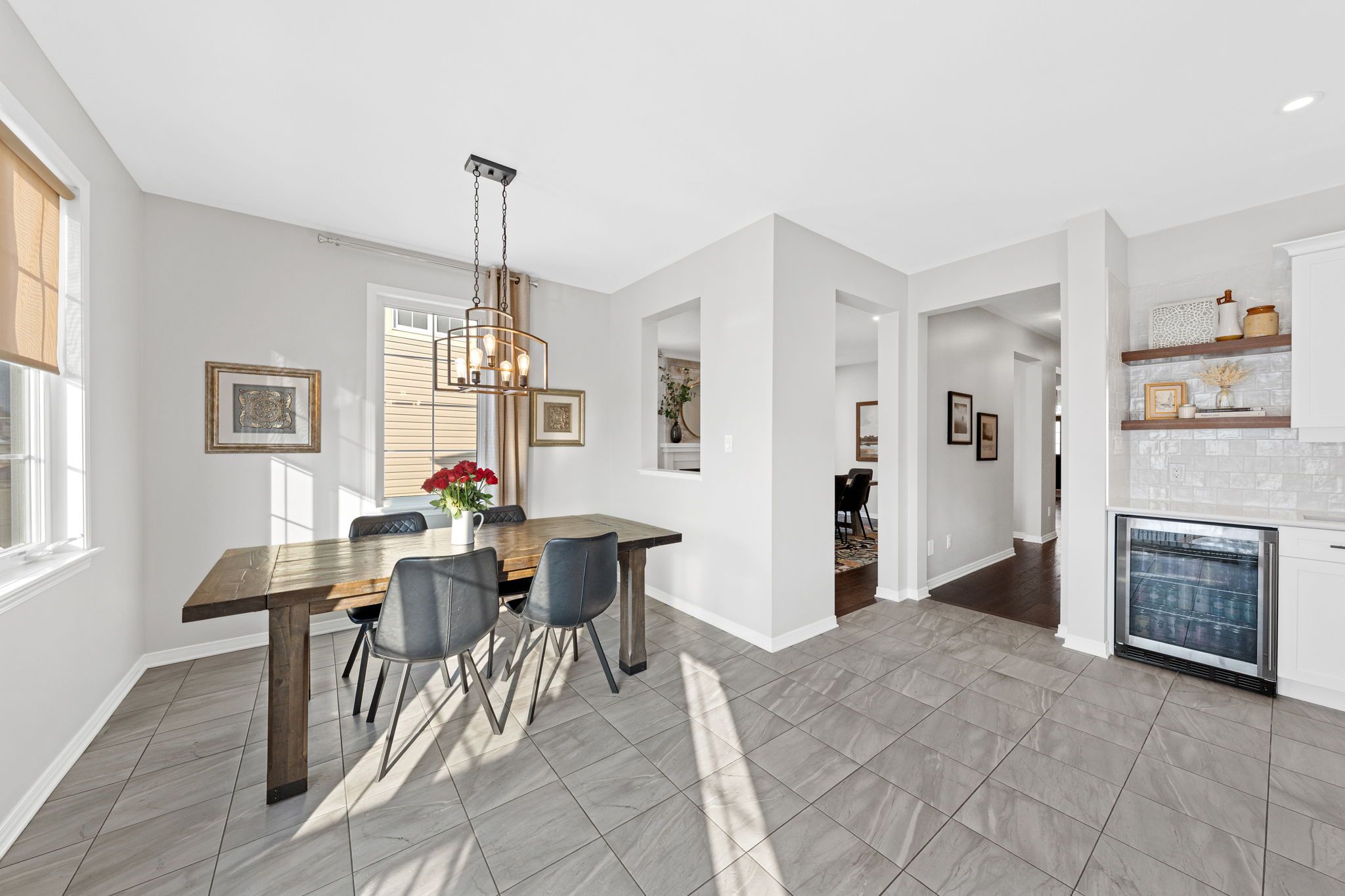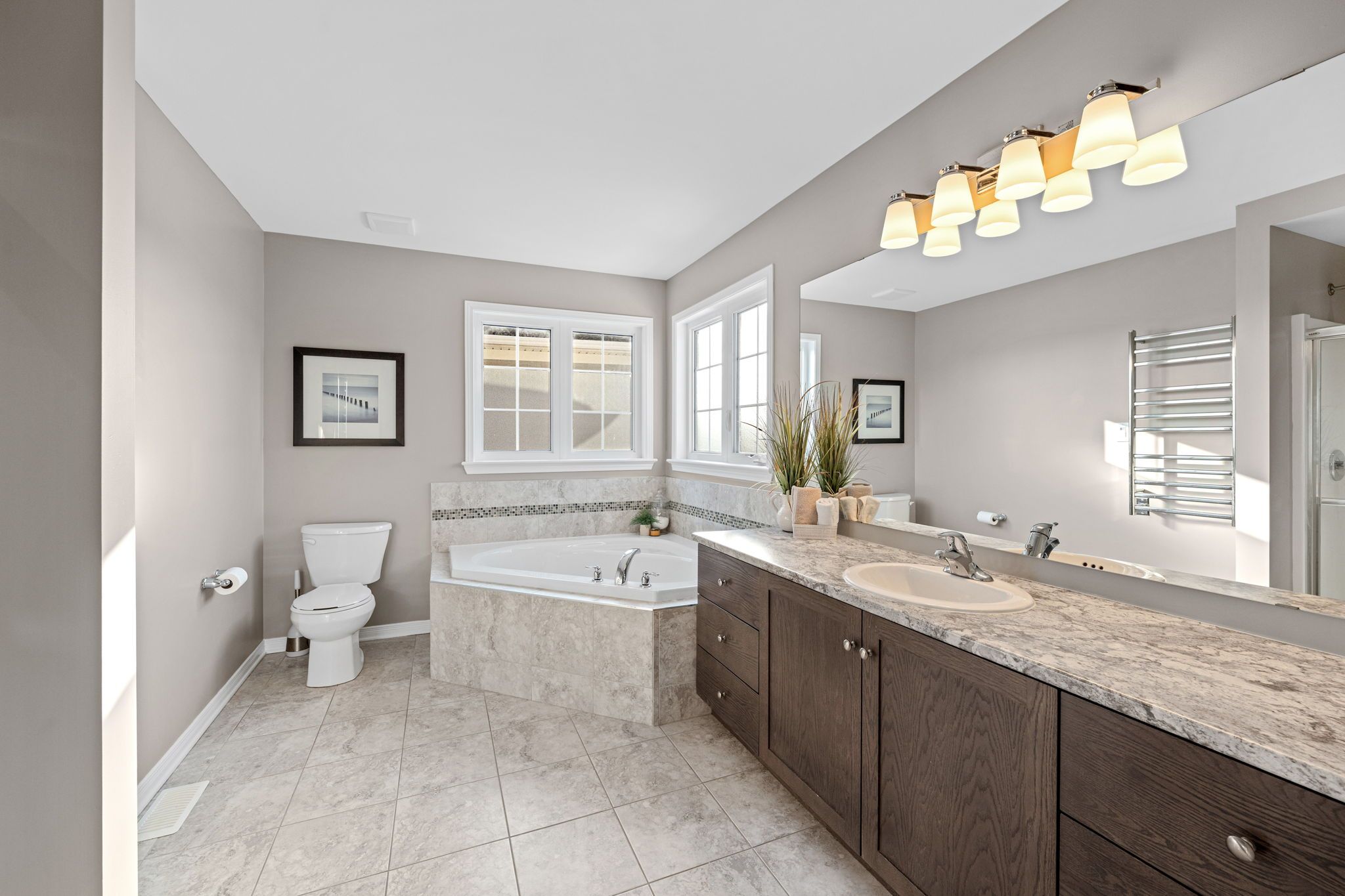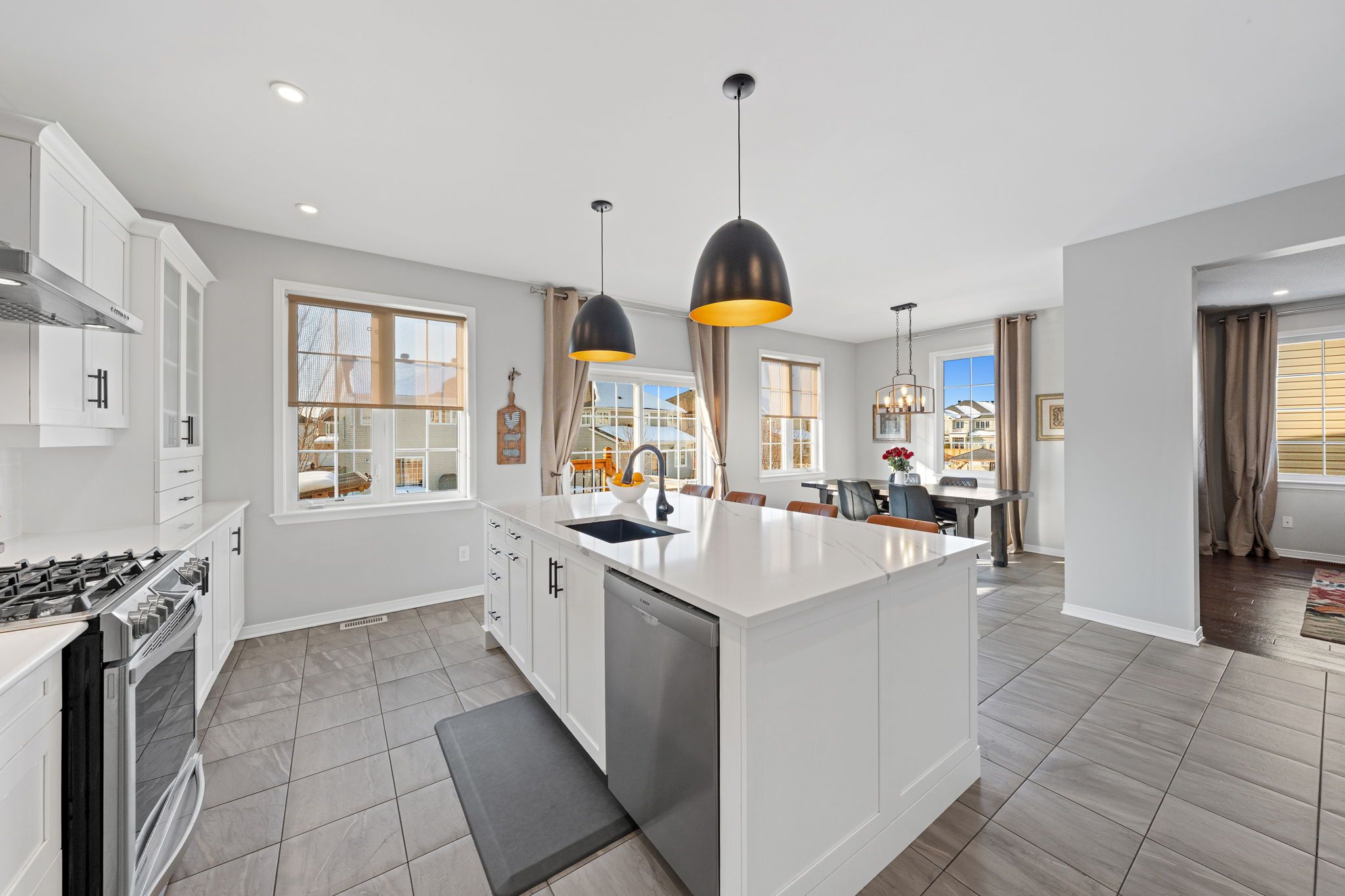 • Chef's kitchen features large island and upgraded cabinets for culinary creativity.