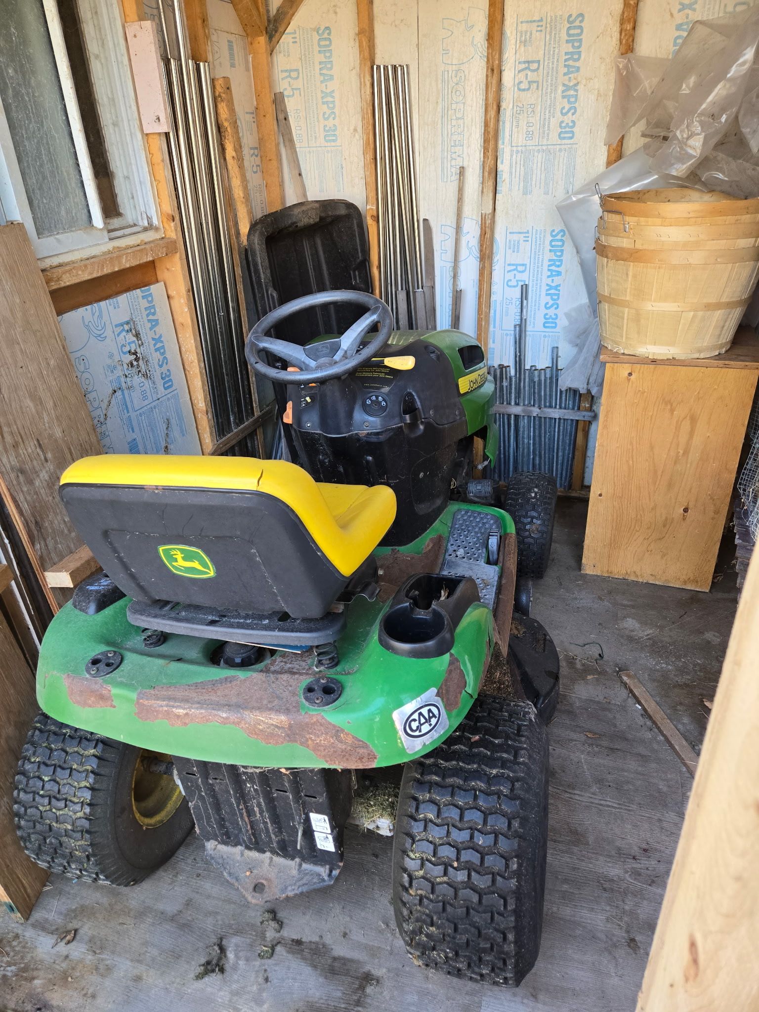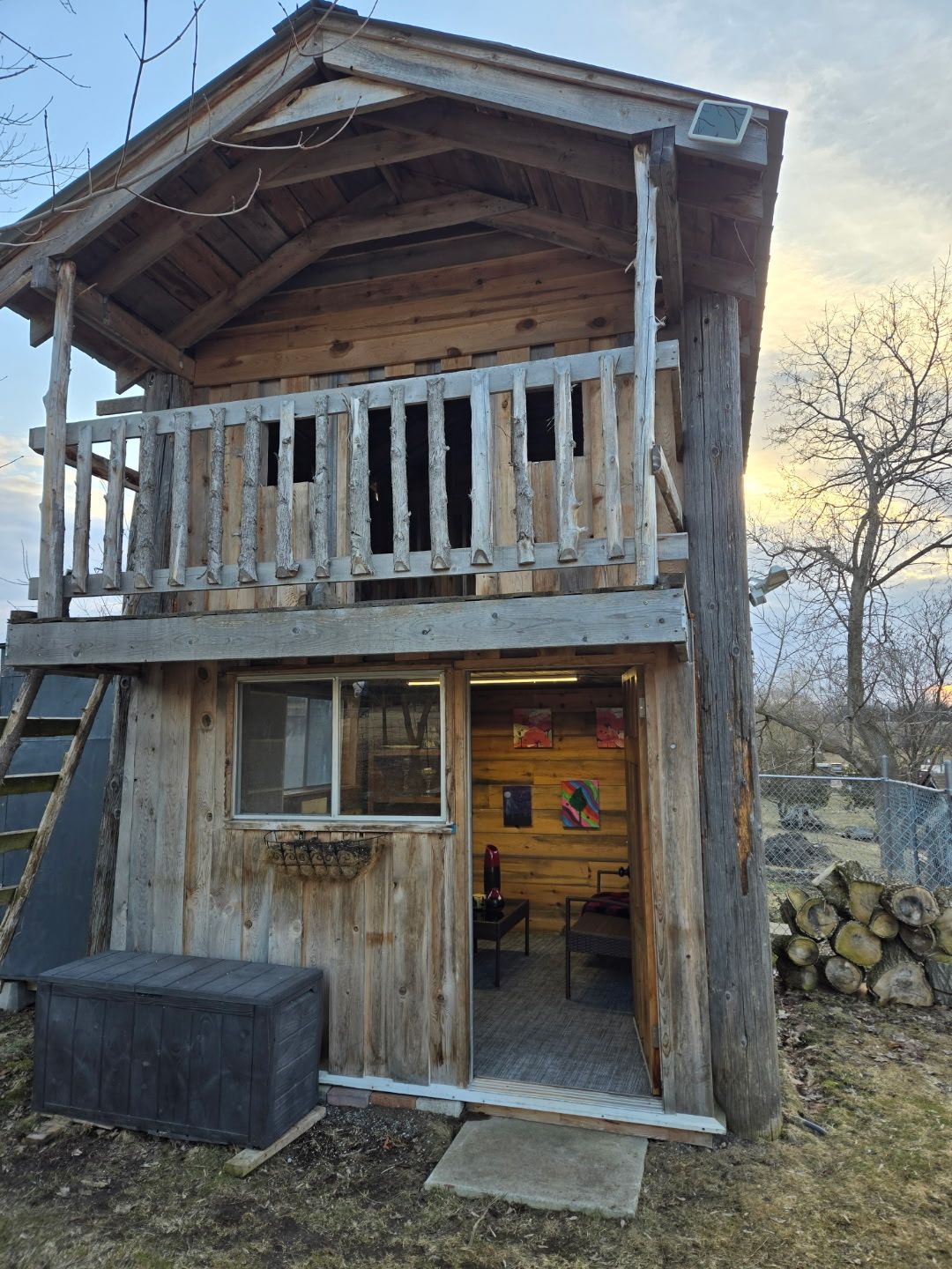 • Large vegetable garden, wood deck, treehouse, and storage sheds.