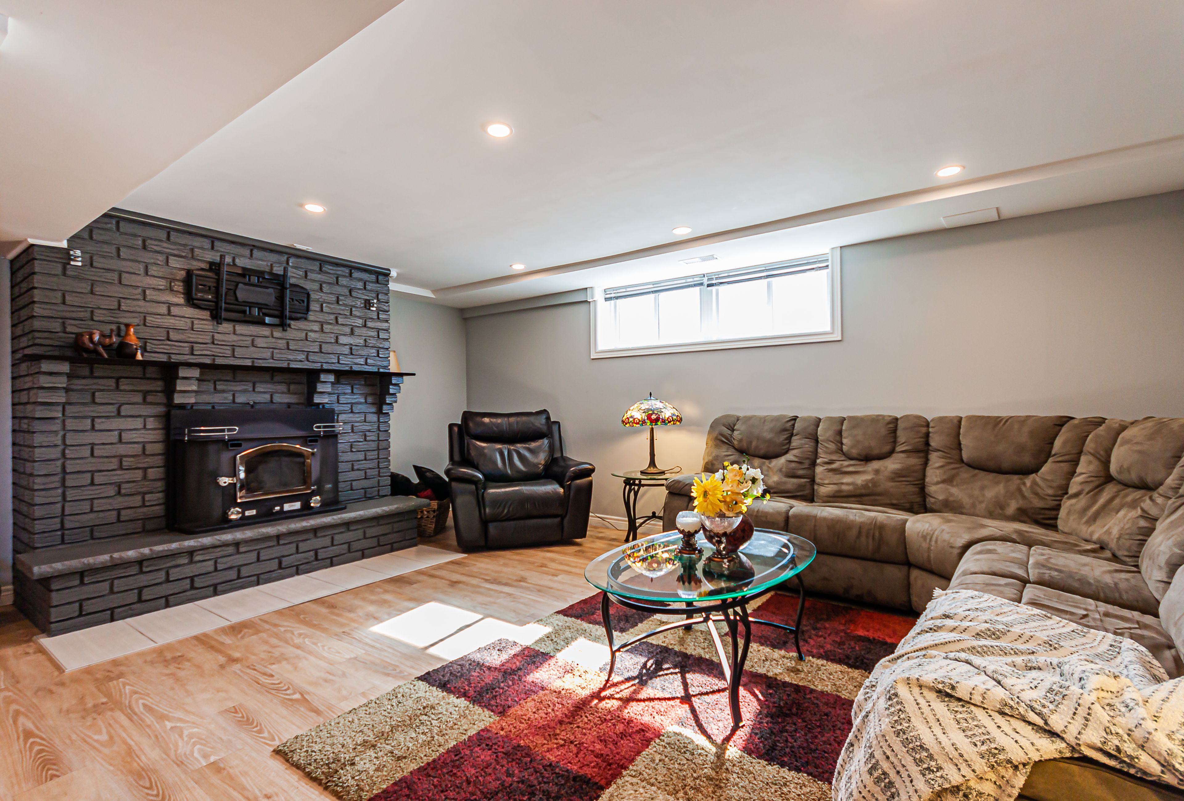 • Finished lower level features a bedroom, ensuite, and wood fireplace.