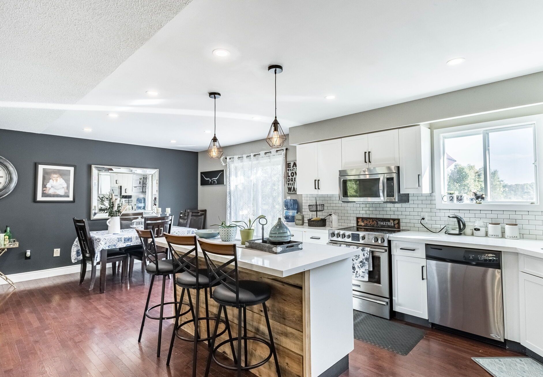 Enjoy privacy and peaceful living in this beautiful ranch-style bungalow situated on a scenic 1-acre lot. Welcome to 7093 concession 3 rd, a fully upgraded home offering 3+1 bedrooms and 2 bathrooms withbright open-concept living throughout. The eat-in kitchen features quartz countertops, stainless steelappliances, custom cabinetry, and a breakfast bar, with a walk-out to a large back deck where you can takein stunning views of the surrounding nature. Hardwood floors, pot lights, vaulted ceilings, and abundant natural light enhance the spacious main level. The fully finished basement offers a large recreation area perfect for entertaining, a generous bedroom, afull bathroom, and additional space ideal for a home office or gym. Outside, enjoy a double car garage, a separate 40' x 26' workshop with 8' doors - perfect for hobbyists,storage, or a home business - plus a large driveway and garden area. Surrounded by greenery andconveniently located near ski resorts, camping, golfing, and outdoor recreation. A rare opportunity toenjoy space, comfort, and country living with modern upgrades.