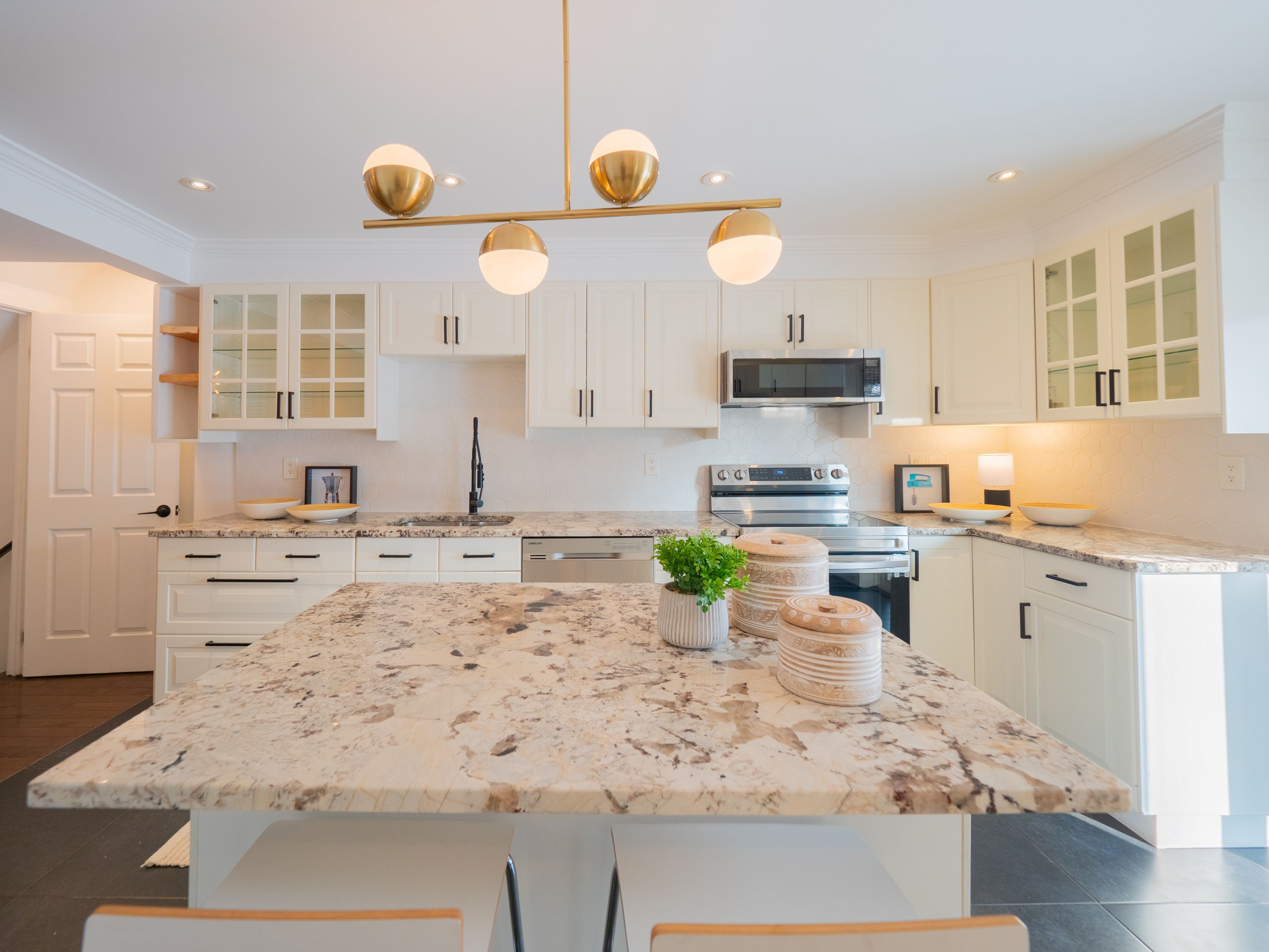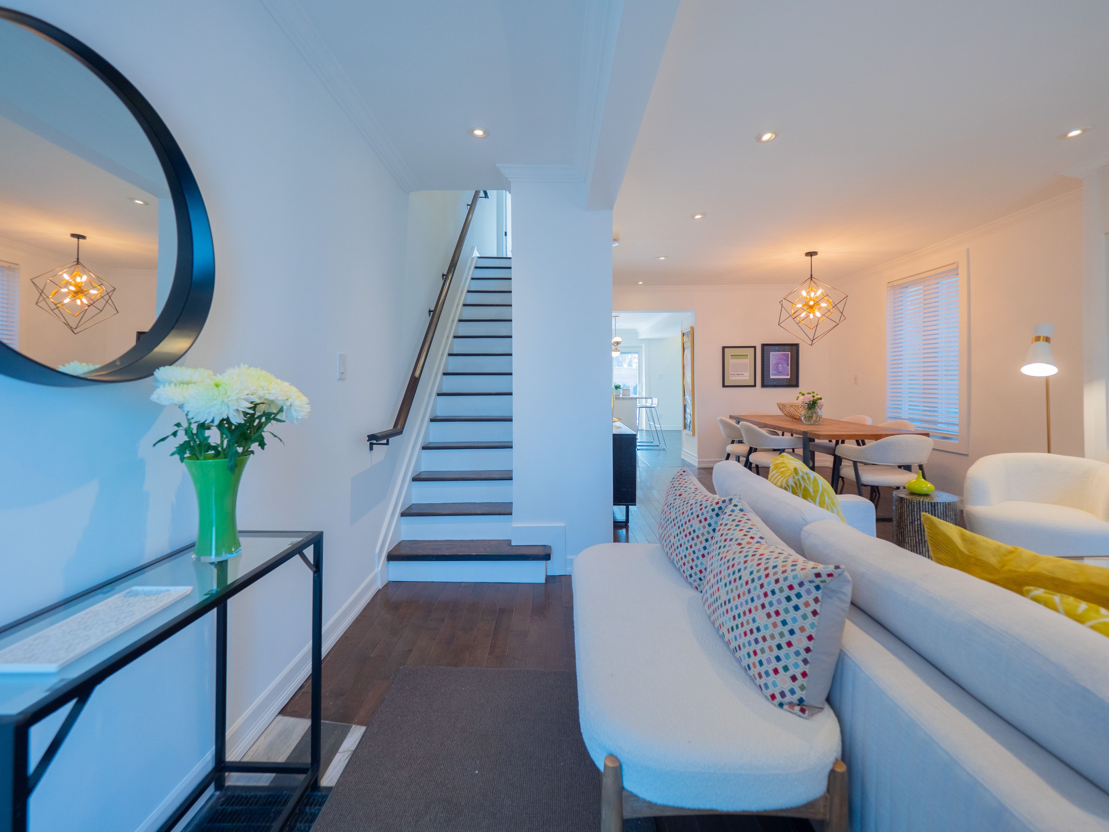 • Open concept main floor with hardwood floors and modern kitchen.