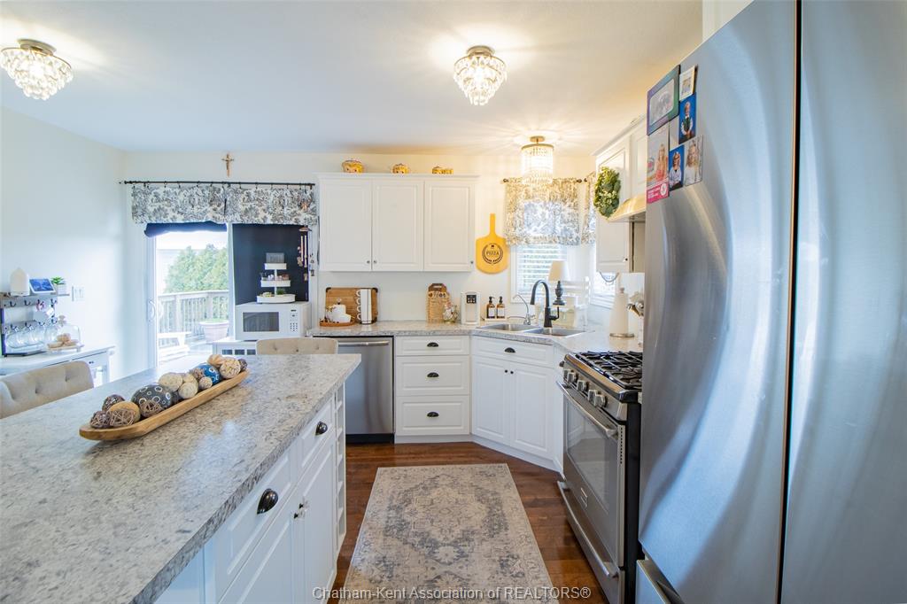 • Open concept main level with hardwood flooring and stainless steel appliances.