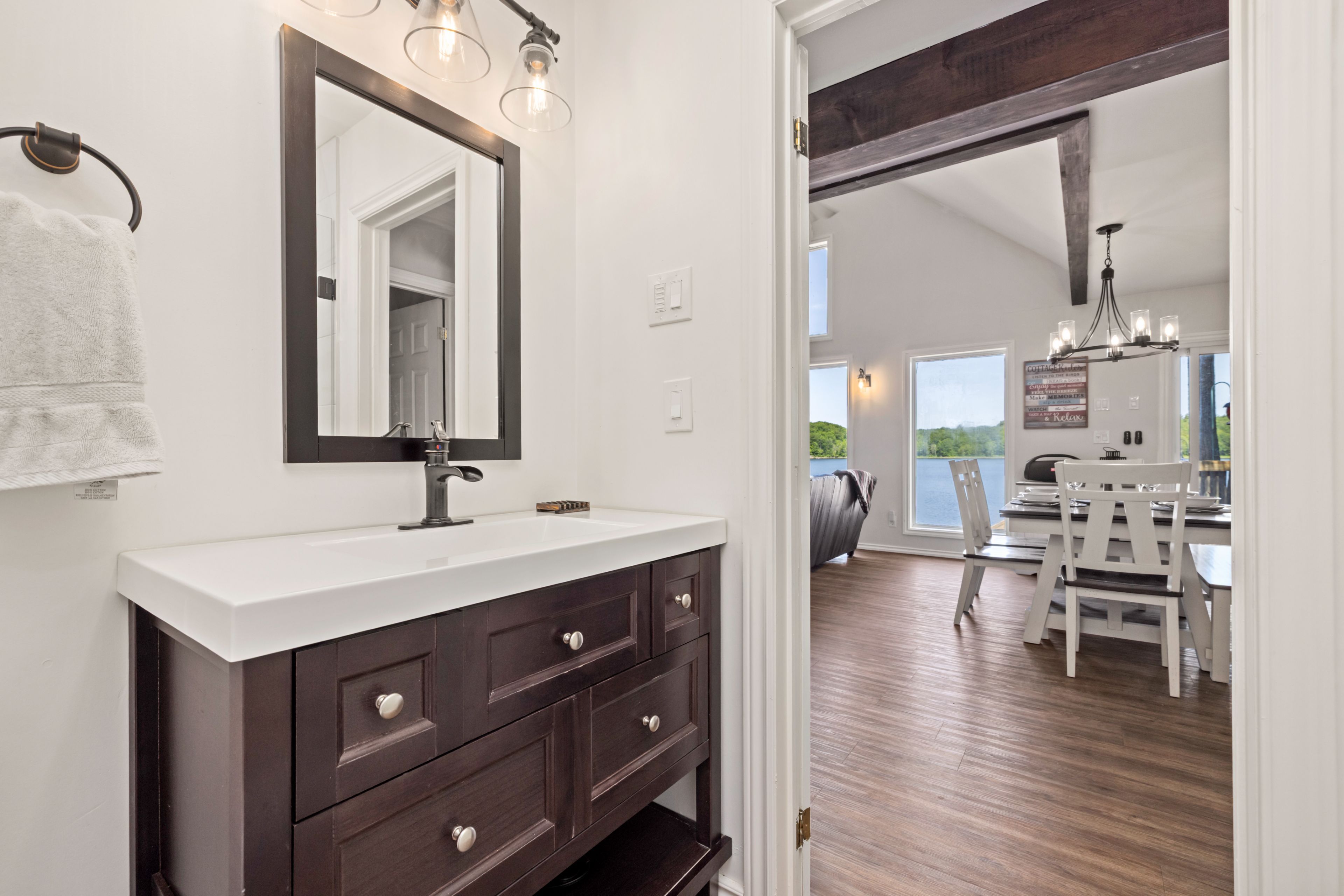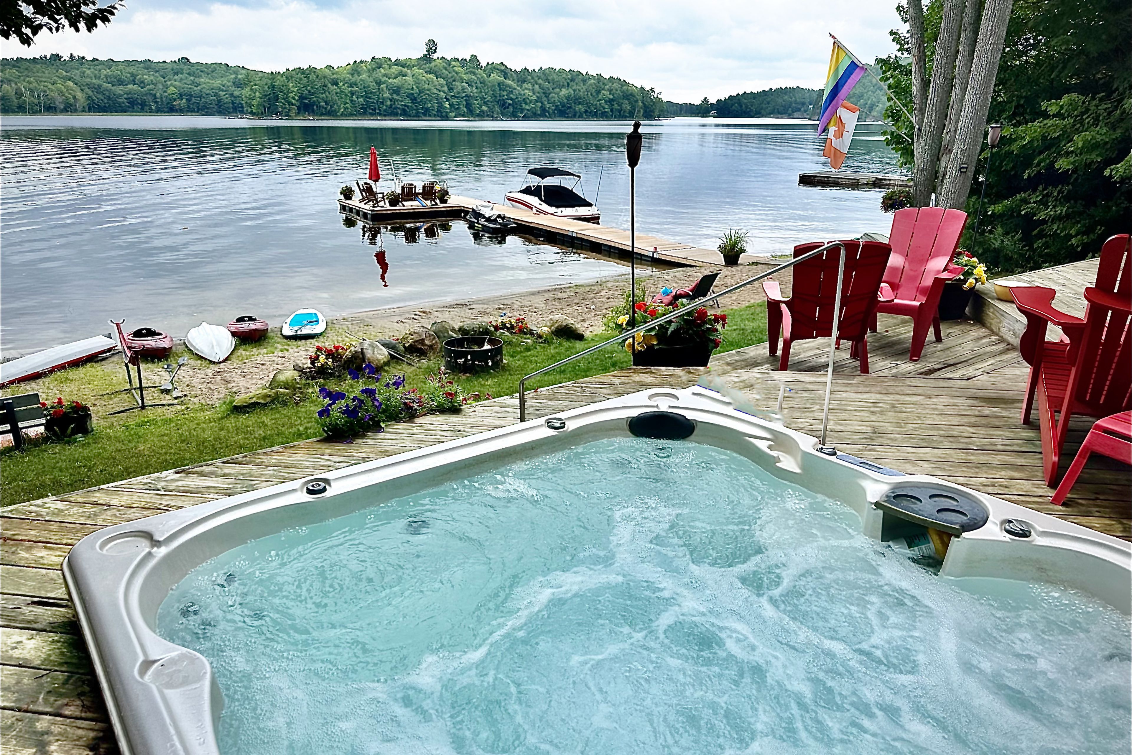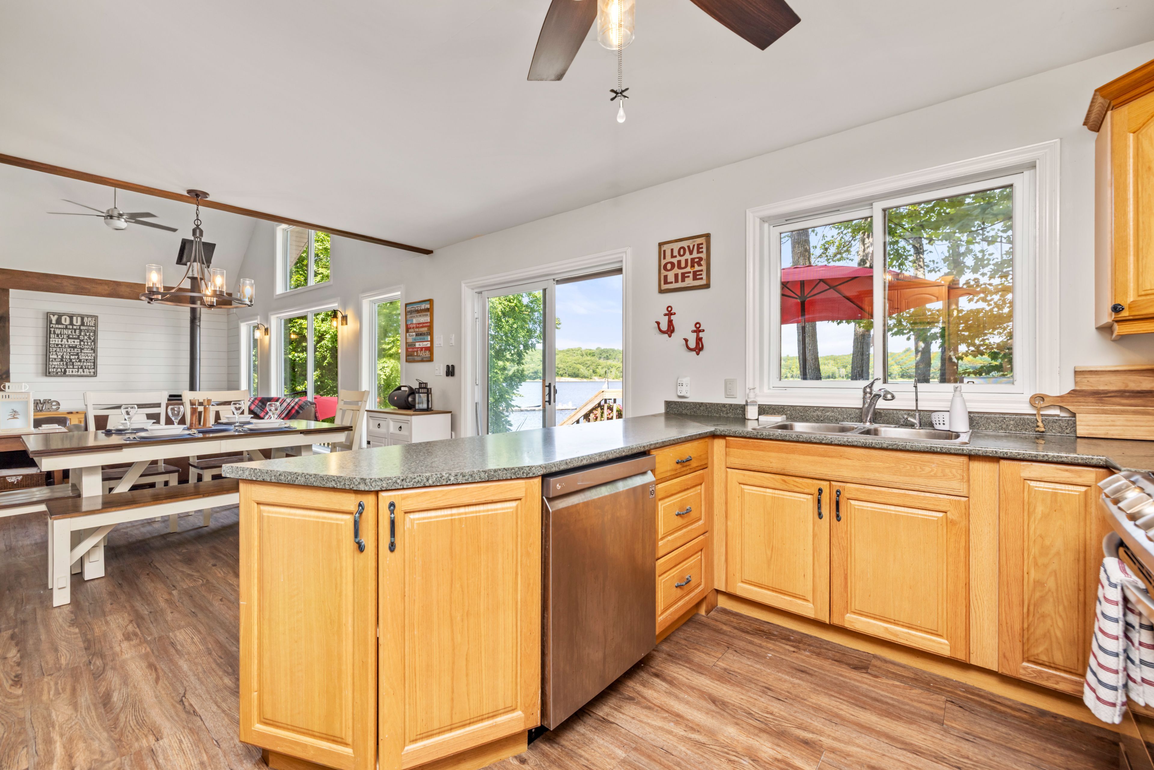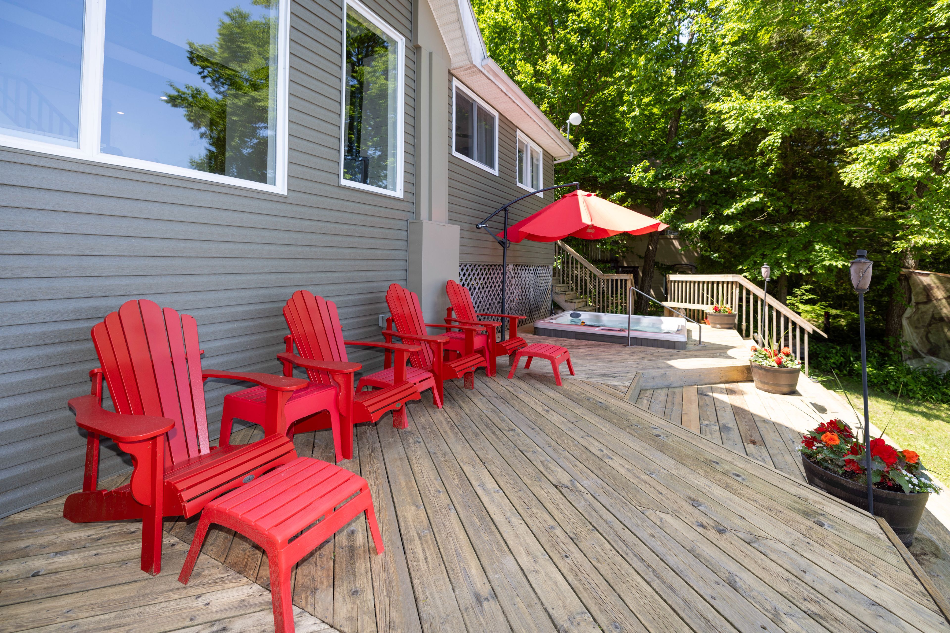 • Main cottage features bright open concept living and plenty of deck space.