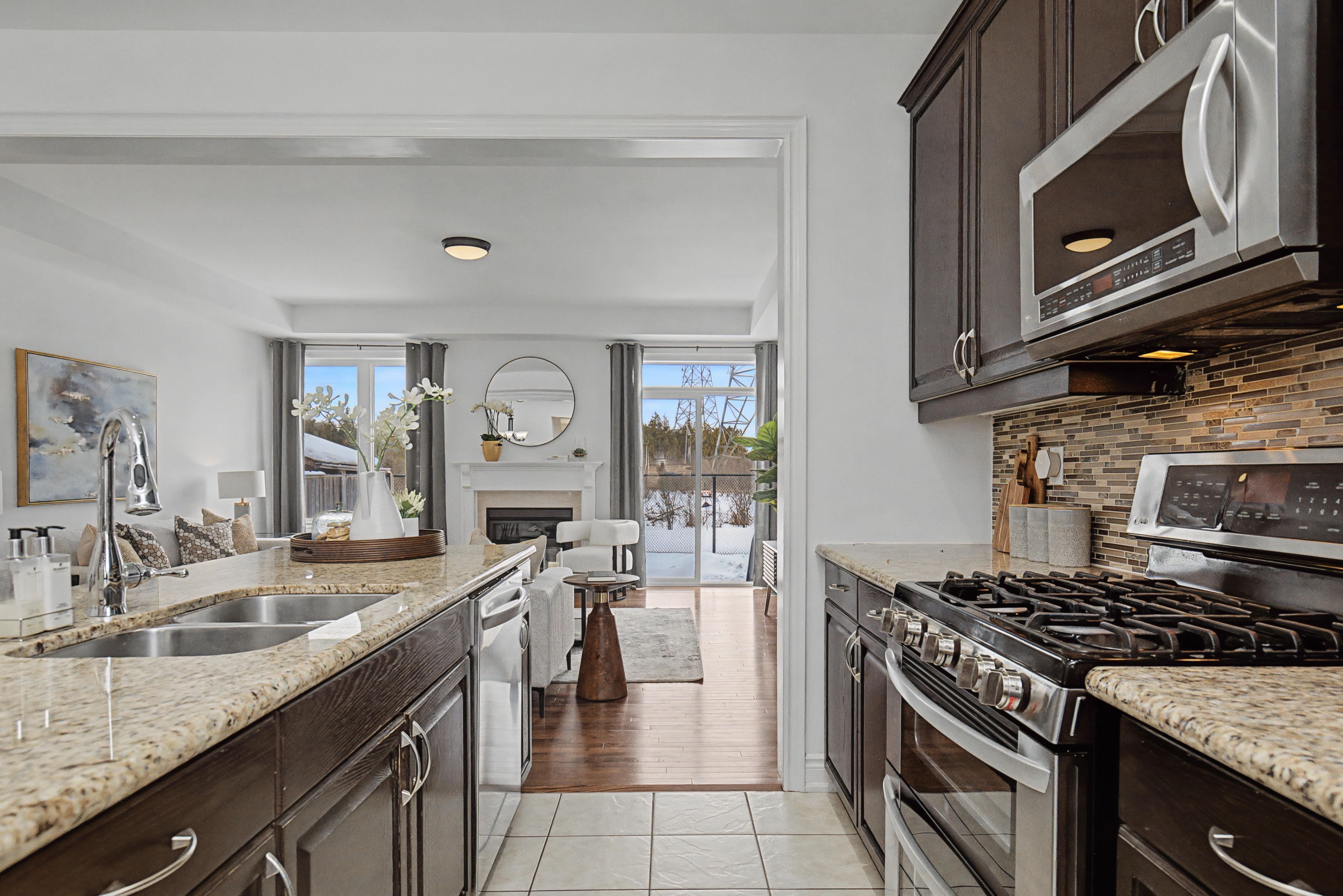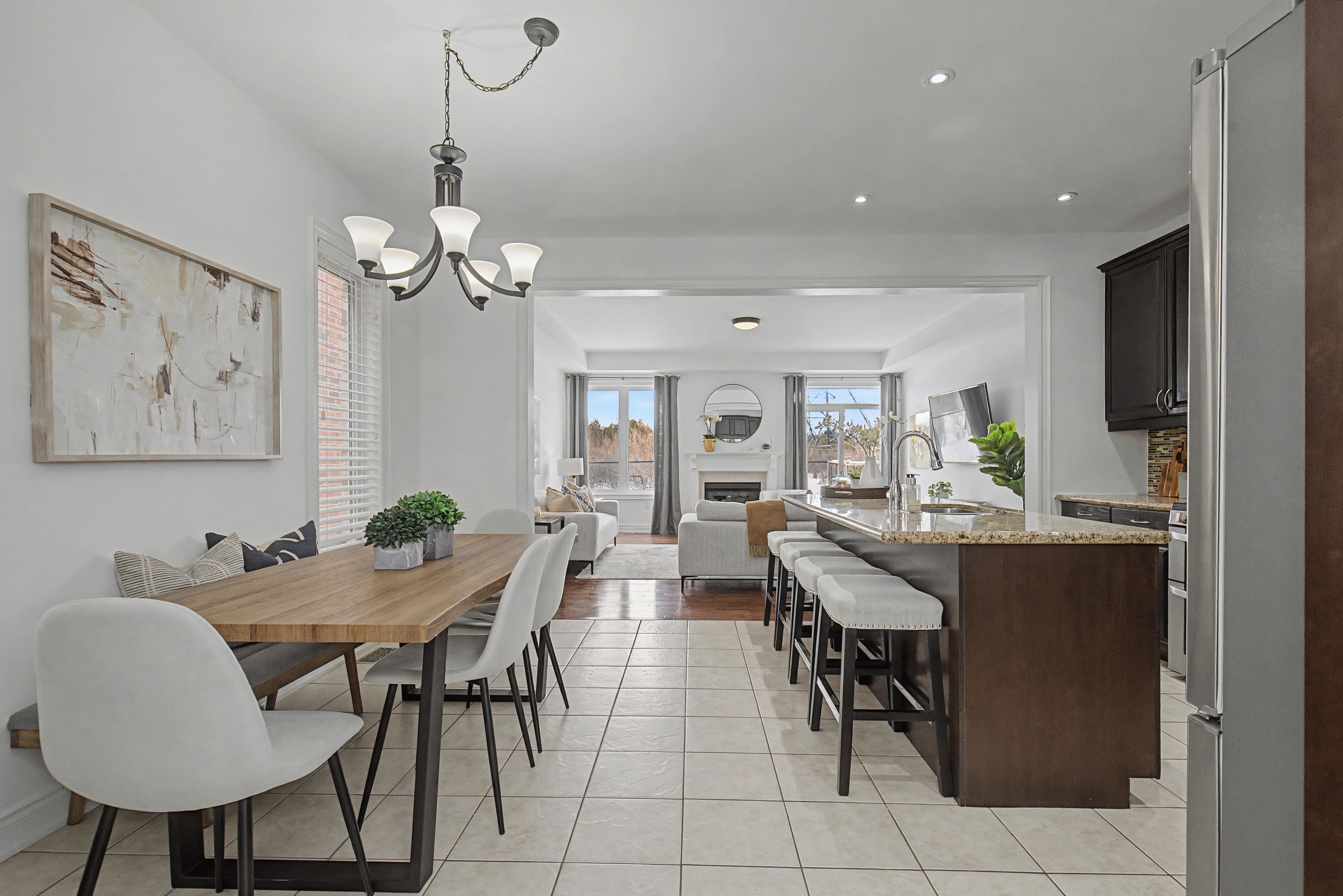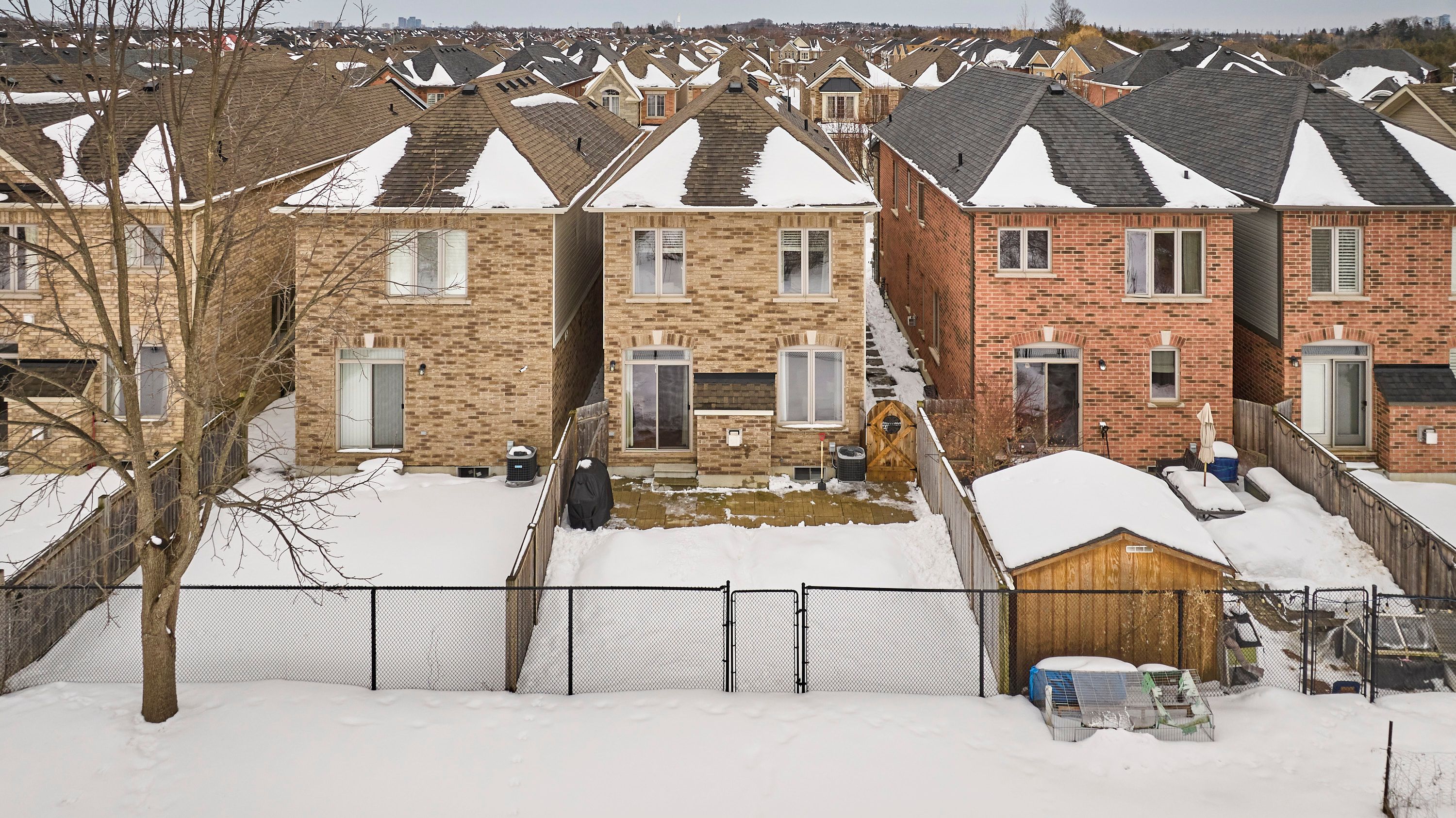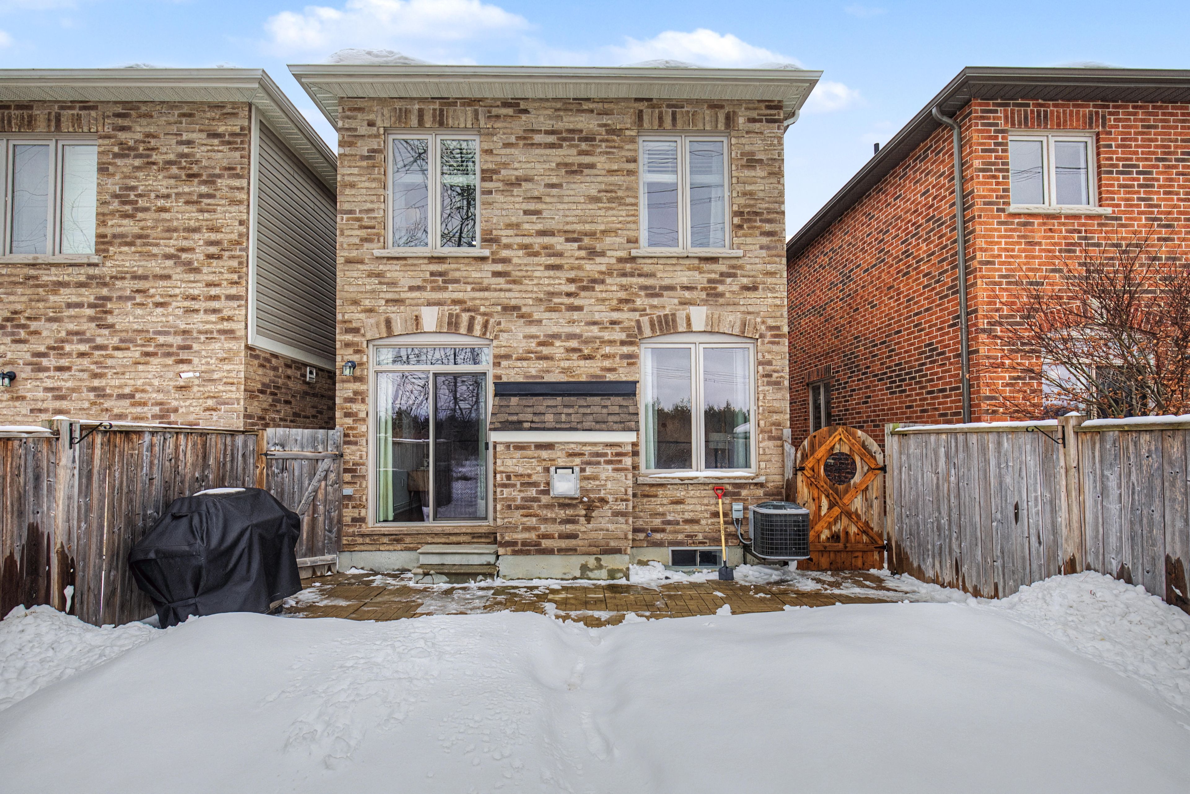 This fabulous home backs onto greenspace and is linked at the garage only providing all the privacy and benefits of living in a detached home. This stunning home boasts 1882 sq feet above grade and 830 sq feet of basement. Nicely upgraded & tucked away on a quiet crescent between the 401 & 407 & just a few minutes drive to major conveniences like costco, walmart, metro, cineplex, tons of restaurants, pickering casino, lots of walking trails, greenwood conservation, deer creek golf course. This house showcases an open concept layout great for large families & entertaining ... The unique layout for this model has the kitchen open to the dining area and living room. The main floor has tons of light with large windows & patio doors, 9 foot ceilings, crown moulding, pot lights, hardwood floors on main and upper, gas fireplace, direct access to garage, walk out to backyard with no neighbours behind. The expansive eat in kitchen offers a breakfast bar island, granite counters, gas stove, stainless appliances, under mount sink. Oak staircase welcomes you to the second floor with stunning hardwood and a great layout. Primary bedroom at the back of the house overlooking the backyard/ greenbelt for added privacy, with your own bath and walk in closet, set well away from the rest of the bedrooms on the second floor, other bedrooms are great sizes with large closets, all rooms have wooden blinds as well the basement is partially finished with a rec room at the rear with pot lights and large windows. The rest of the basement provides a great canvas to finish as you like. Front and rear yards have been landscaped with stone and interlock, also rough in for bathroom in basement near gym set up.