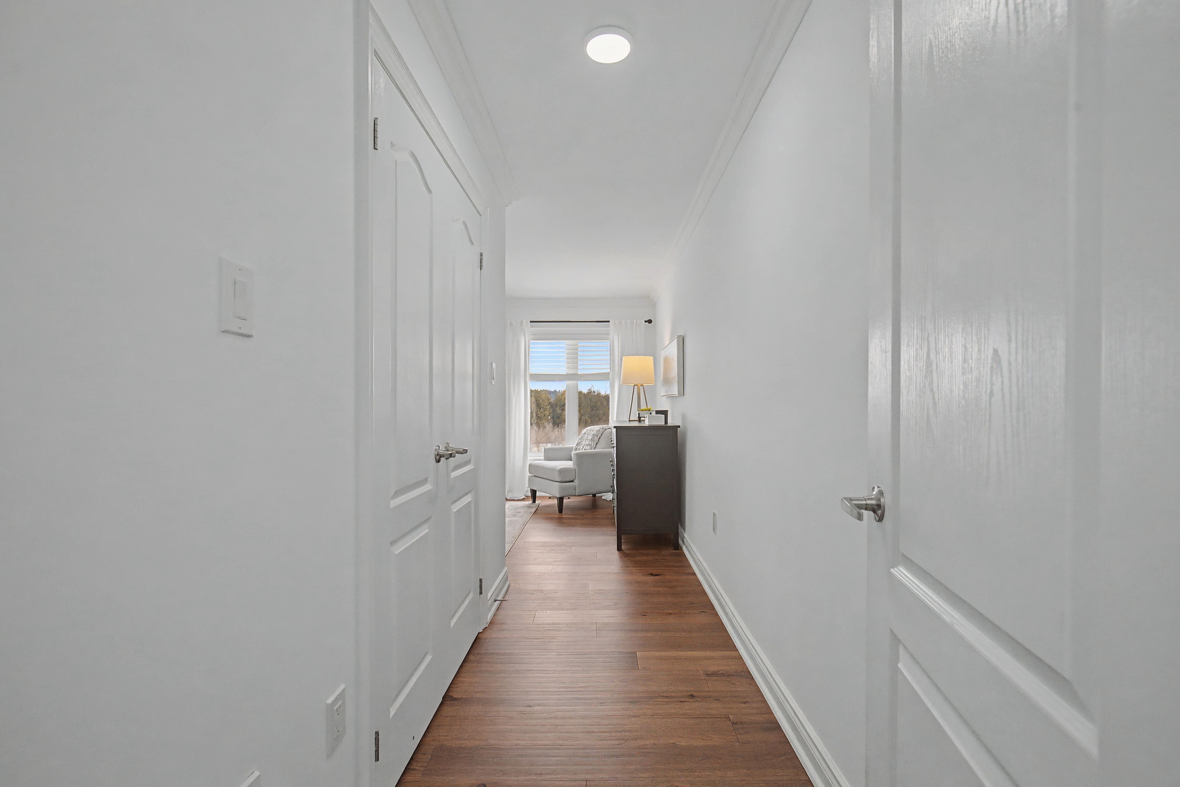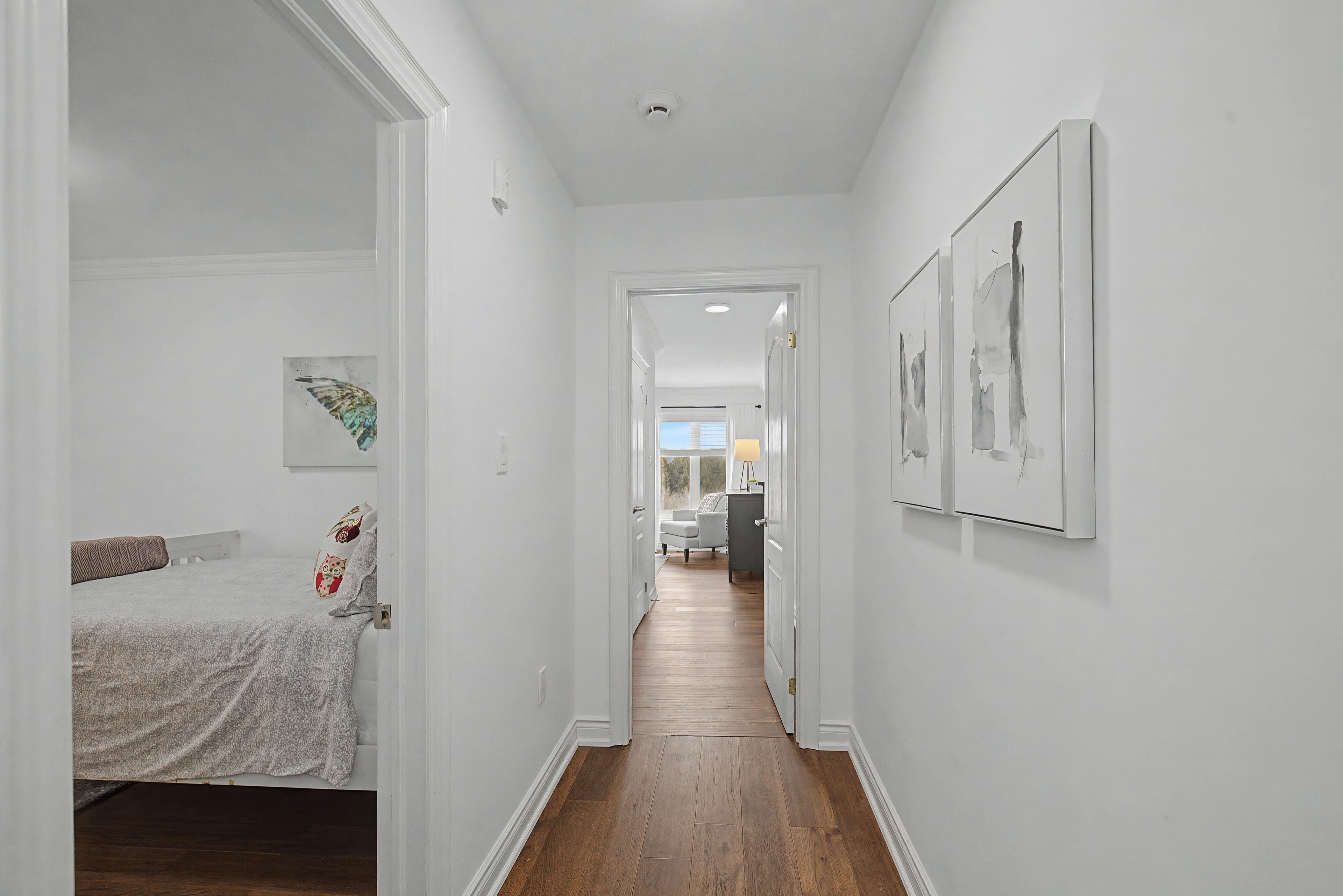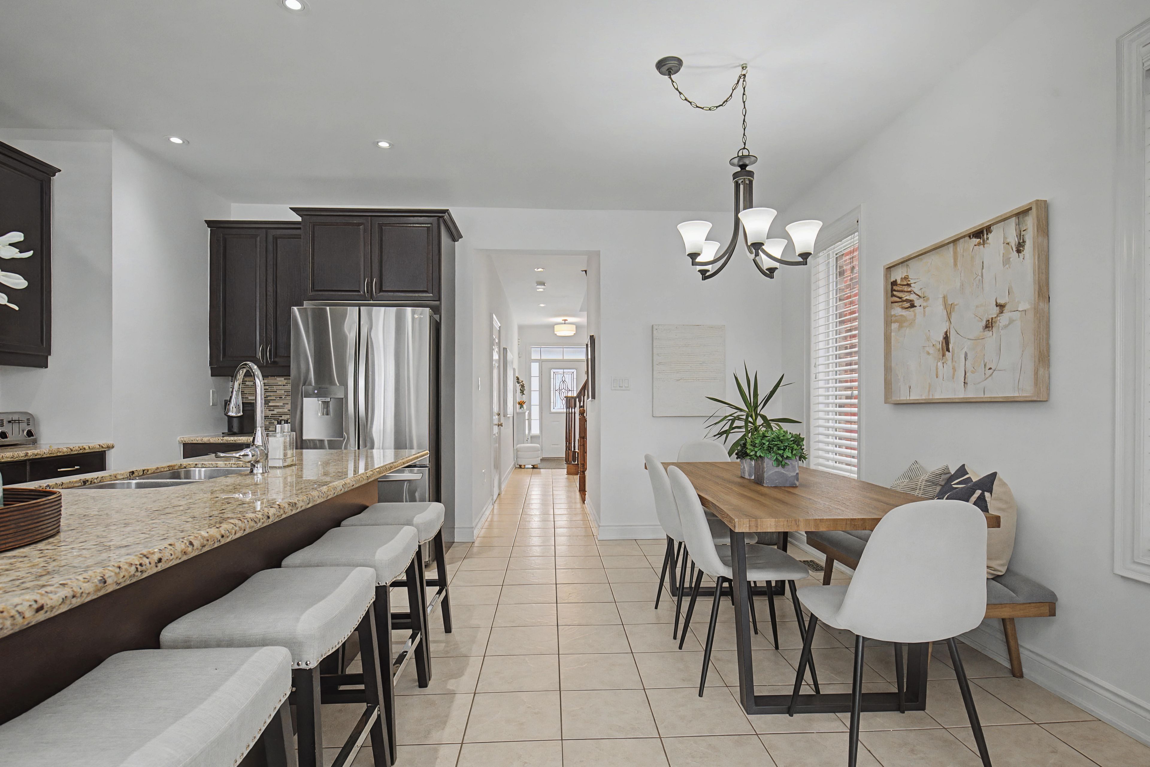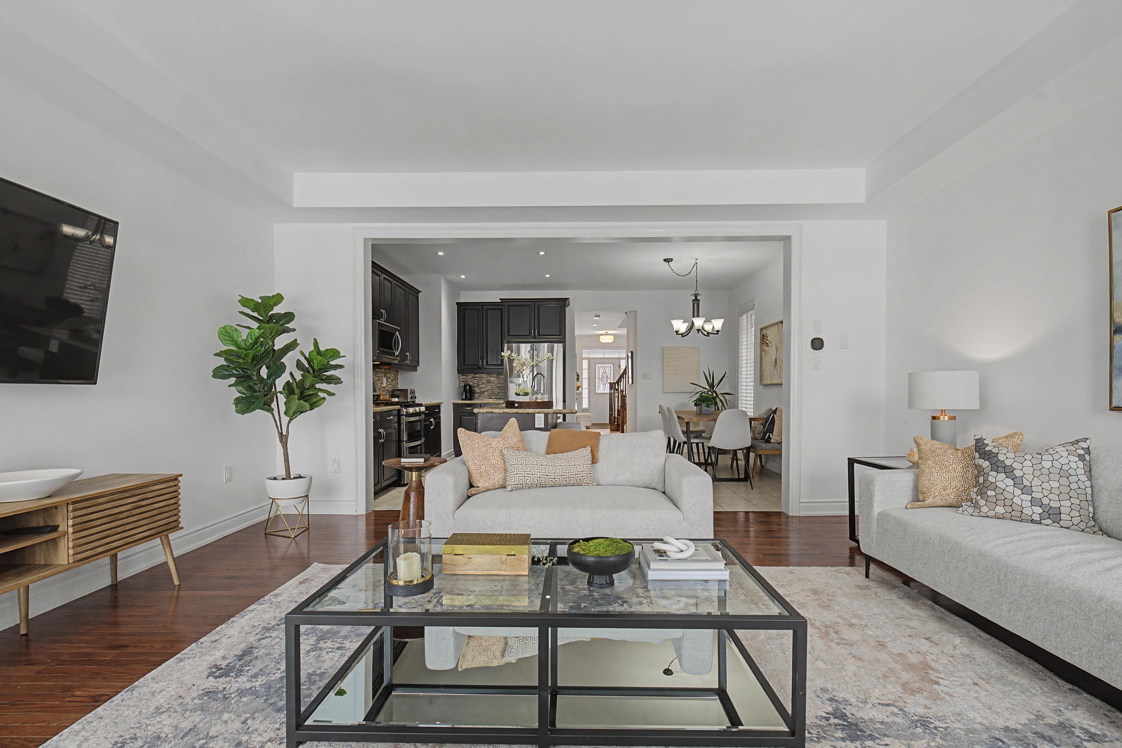 This fabulous home backs onto greenspace and is linked at the garage only providing all the privacy and benefits of living in a detached home. This stunning home boasts 1882 sq feet above grade and 830 sq feet of basement. Nicely upgraded & tucked away on a quiet crescent between the 401 & 407 & just a few minutes drive to major conveniences like costco, walmart, metro, cineplex, tons of restaurants, pickering casino, lots of walking trails, greenwood conservation, deer creek golf course. This house showcases an open concept layout great for large families & entertaining ... The unique layout for this model has the kitchen open to the dining area and living room. The main floor has tons of light with large windows & patio doors, 9 foot ceilings, crown moulding, pot lights, hardwood floors on main and upper, gas fireplace, direct access to garage, walk out to backyard with no neighbours behind. The expansive eat in kitchen offers a breakfast bar island, granite counters, gas stove, stainless appliances, under mount sink. Oak staircase welcomes you to the second floor with stunning hardwood and a great layout. Primary bedroom at the back of the house overlooking the backyard/ greenbelt for added privacy, with your own bath and walk in closet, set well away from the rest of the bedrooms on the second floor, other bedrooms are great sizes with large closets, all rooms have wooden blinds as well the basement is partially finished with a rec room at the rear with pot lights and large windows. The rest of the basement provides a great canvas to finish as you like. Front and rear yards have been landscaped with stone and interlock, also rough in for bathroom in basement near gym set up.