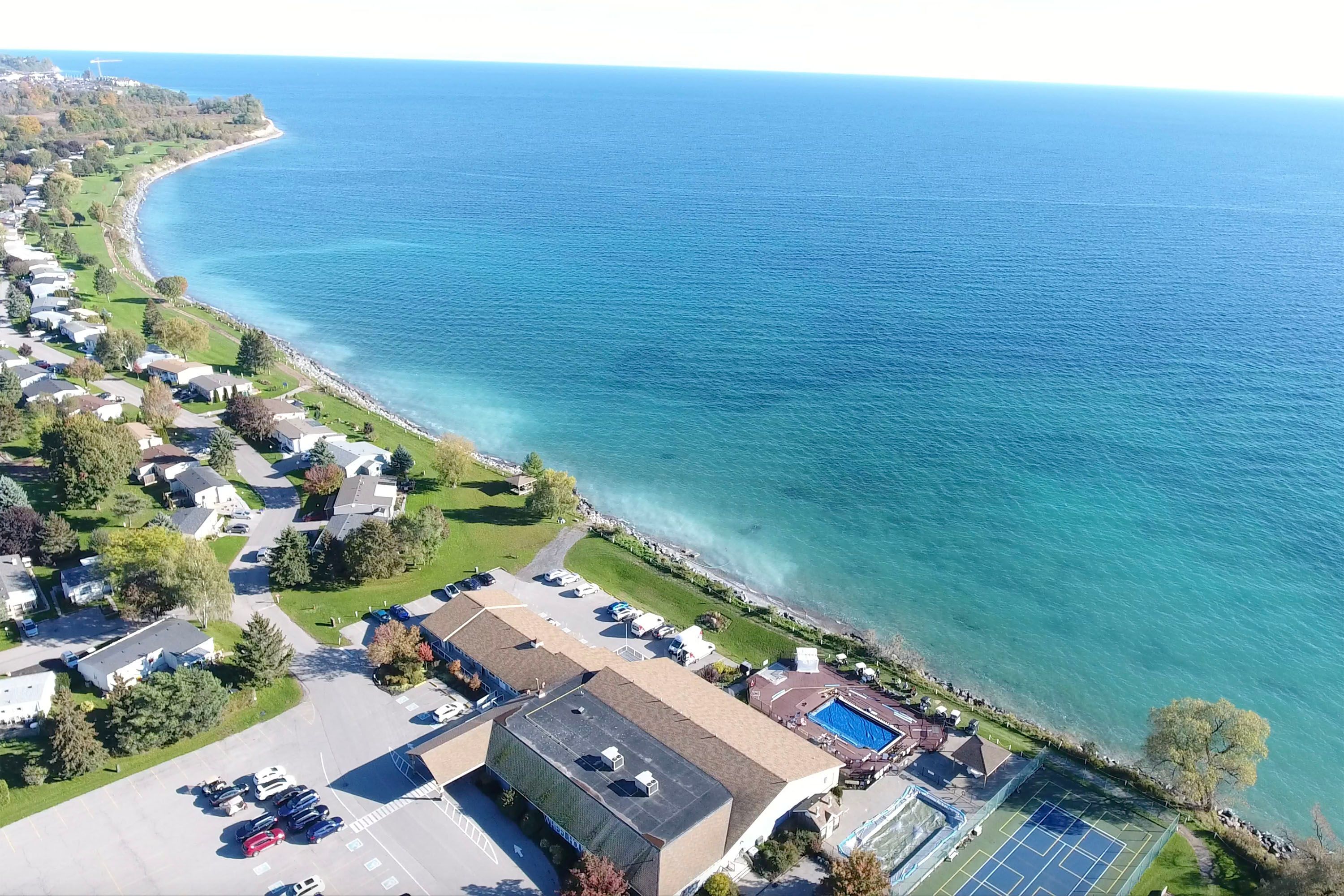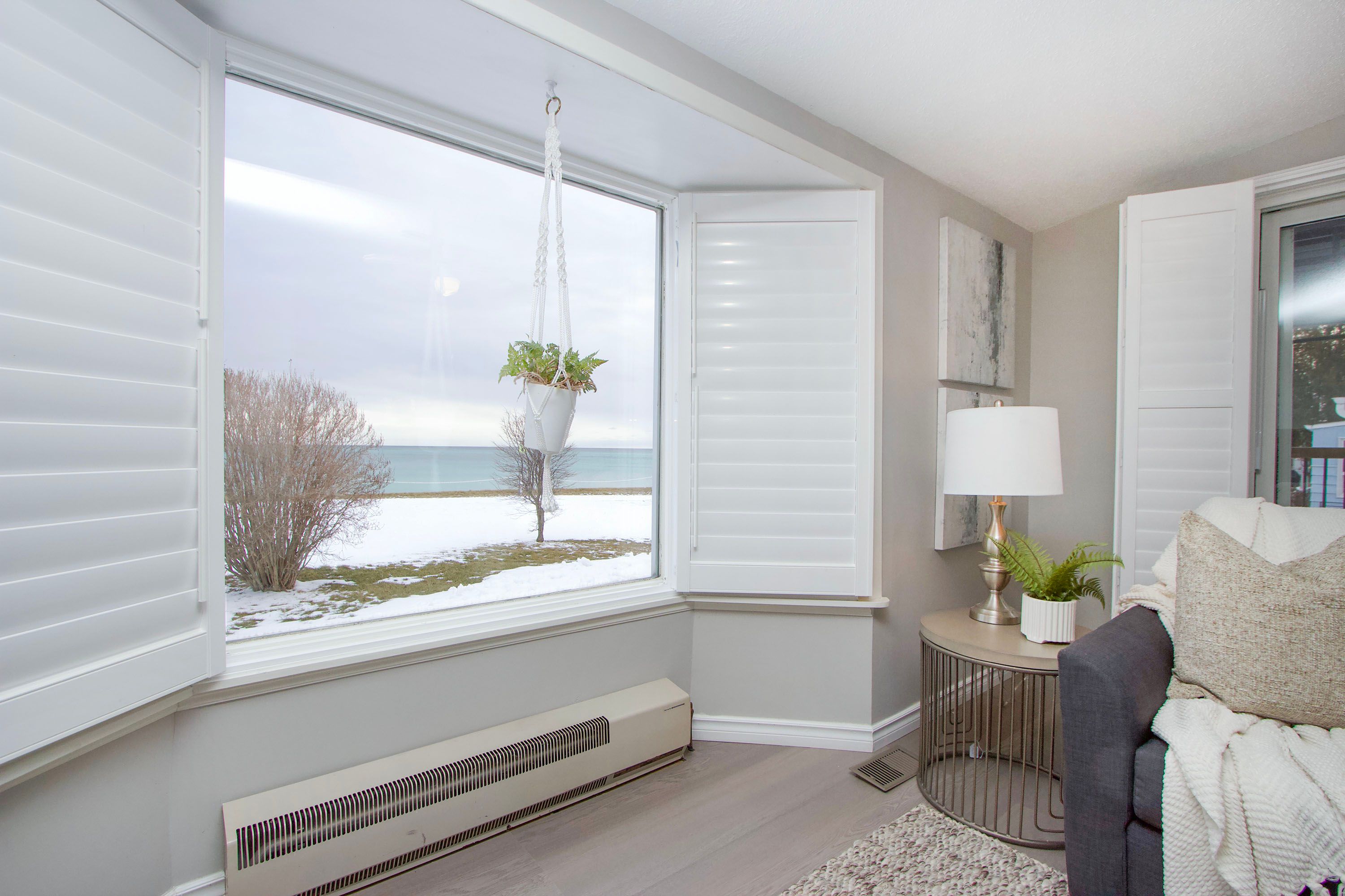 Welcome to life by the lake in the highly sought-after wilmot creek gated community, nestled along the picturesque shoreline of lake ontario. This charming 2-bedroom bungalow offers a rare opportunity to enjoy waterfront living in a peaceful, resort-style setting. Designed with an open layout, the home welcomes you into a spacious living room featuring a large picture window and cozy gas fireplace-perfect for relaxing and entertaining. The bright galley kitchen showcases granite countertops, crisp white cabinetry, and stainless steel appliances, along with a convenient side door providing easy access to the yard. The kitchen flows seamlessly into the open dining area, creating an inviting space for everyday living. A stunning sitting room captures breathtaking lake views and offers a walk-out to your private deck-an ideal spot to enjoy your morning coffee or unwind while taking in the serene waterfront backdrop. The primary bedroom features a generous double closet and large window, while the second bedroom includes its own closet and picturesque views of the lake. Residents of wilmot creek enjoy an exceptional adult lifestyle with an impressive array of amenities, including a community pool, tennis courts, golf course, pickle ball, sauna, hot tub, woodworking shop, billiards room, and more. With total monthly fees of $1,407. 74-including property taxes-this is an opportunity to experience low-maintenance, resort-style living in a tranquil lakeside community. A rare chance to own your own waterfront retreat in one of wilmot creek's most desirable settings.