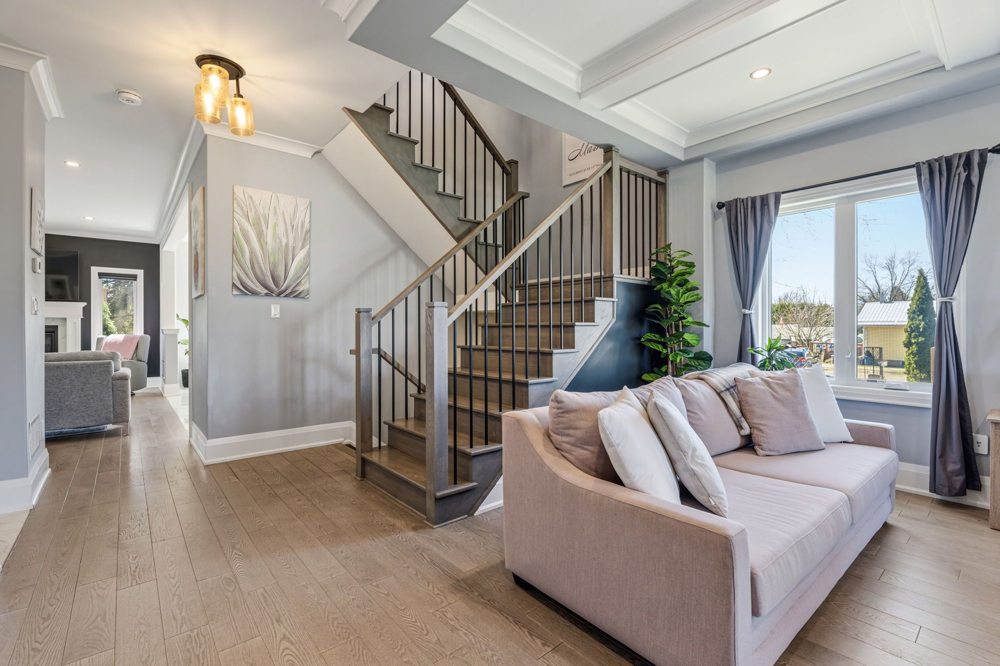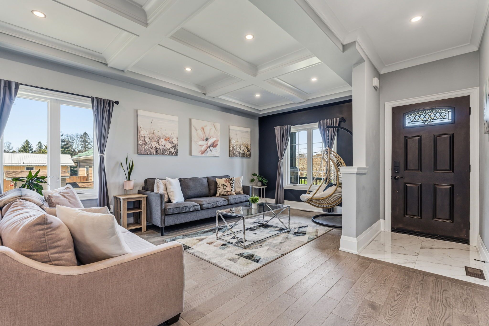 Tucked within the heart of sutton west, this beautifully crafted semi-detached resides on a quarter acre deep lot. Thoughtfully designed from the ground up, this is not simply a home - it is a masterclass in intelligent, elegant living. From the moment you step inside, the distinction is immediate. The formal front living room welcomes you with soaring coffered ceilings and an air of quiet sophistication - a space that sets the tone for everything that follows. The main living area opens into a generous sun-filled sanctuary anchored by a stunning culinary kitchen, a breakfast bar for casual conversation, and a spacious dining area that extends effortlessly to a private sun deck - perfect for al fresco entertaining. The living room is centred around an anchoring gas fireplace - the undeniable heart of the home. A well-appointed powder room completes the main floor. With over 2,100 square feet of above grade living space, three generously proportioned bedrooms await. The principal suite is nothing short of a private retreat complete with a 5 star hotel -inspired five-piece ensuite featuring a deep soaker tub and separate shower. Two additional well sized bedrooms and an elevated laundry room with custom cabinetry, a dedicated sink, stone counters and thoughtful details woven into every corner complete the upper level. The unfinished lower level is roughed in for a bathroom with soaring ceiling heights and endless potential for a recreation room, additional bedroom or the ultimate entertaining space. Your vision, your masterpiece. Outside, a fully fenced backyard offers a safe and private retreat - perfect for little ones, pets, summer gatherings and simply unwinding at the end of the day. Walking distance to sutton west's charming main street, green spaces, schools and every convenience the community has to offer - this is the address young families dream of finding and never want to leave. This is the home you grow into, and the home you simply never outgrow.