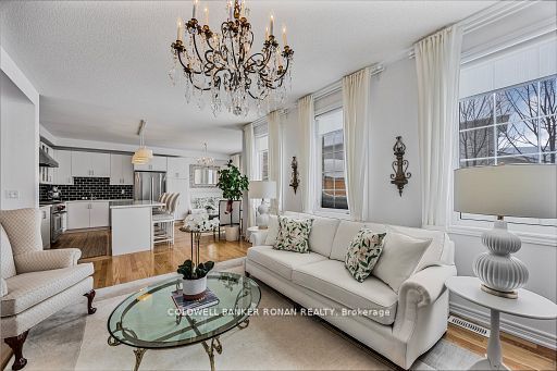 • Open concept living space with high ceilings and hardwood floors.