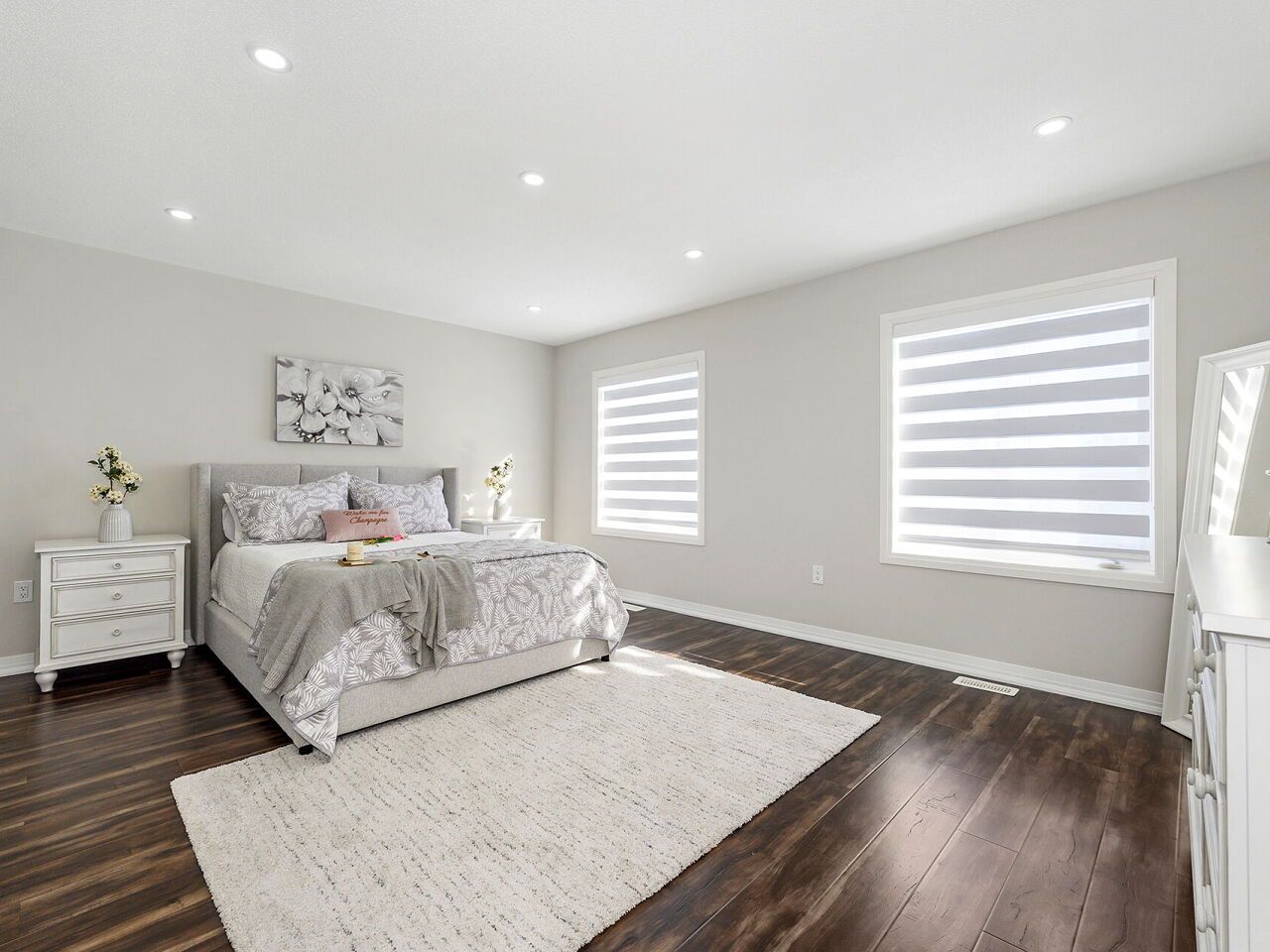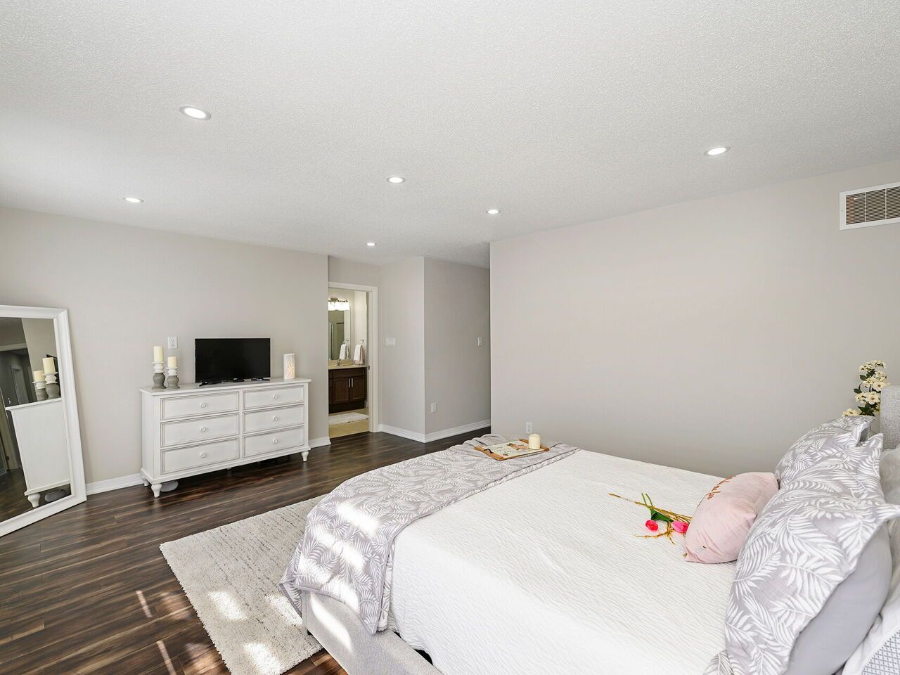 • Spacious primary suite with custom walk-in closet and ensuite.