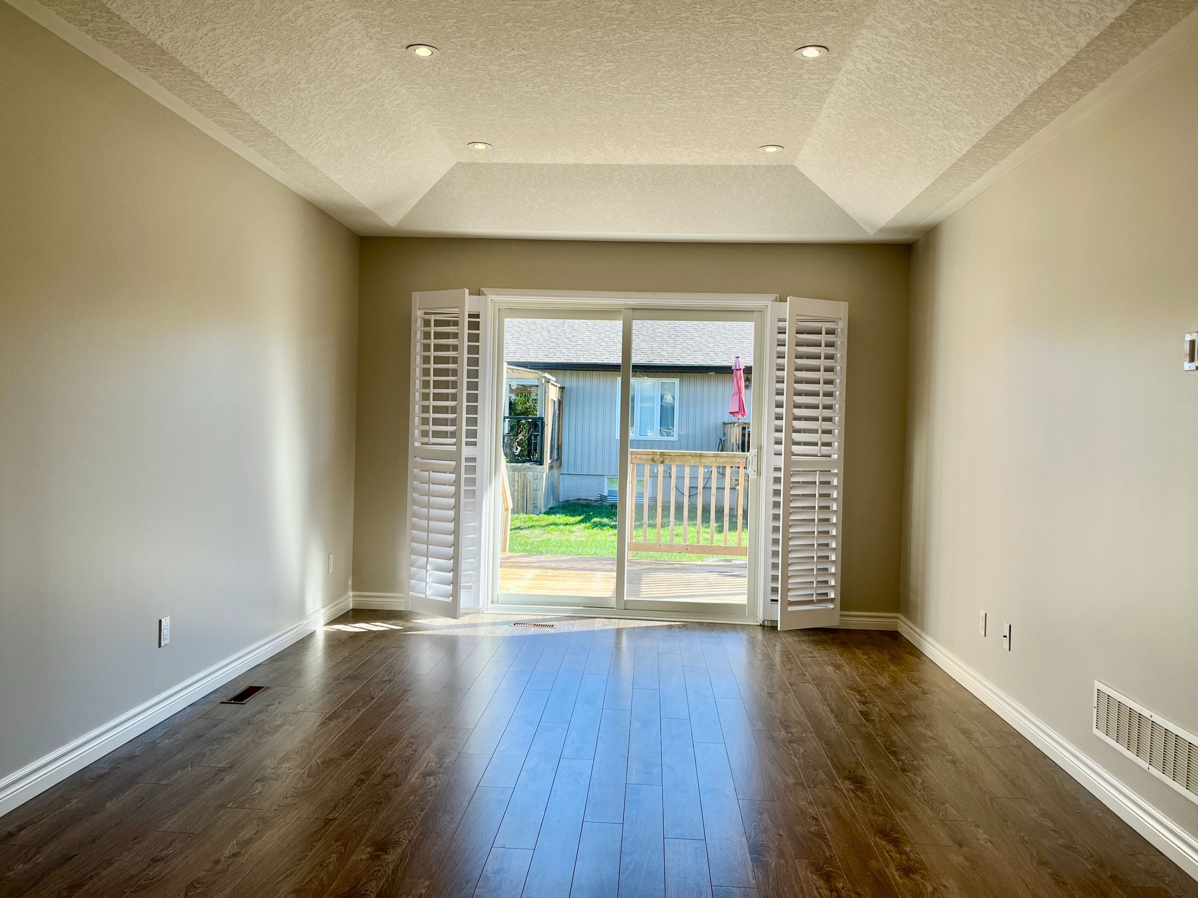 • Private two-tier back deck for relaxation and gatherings.