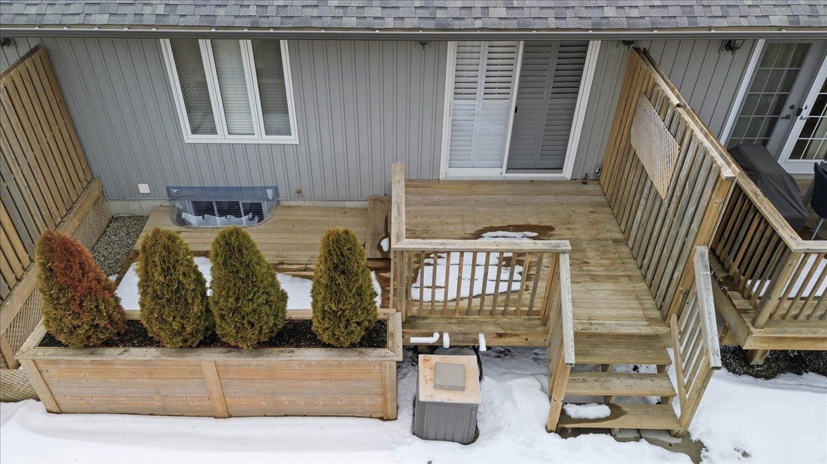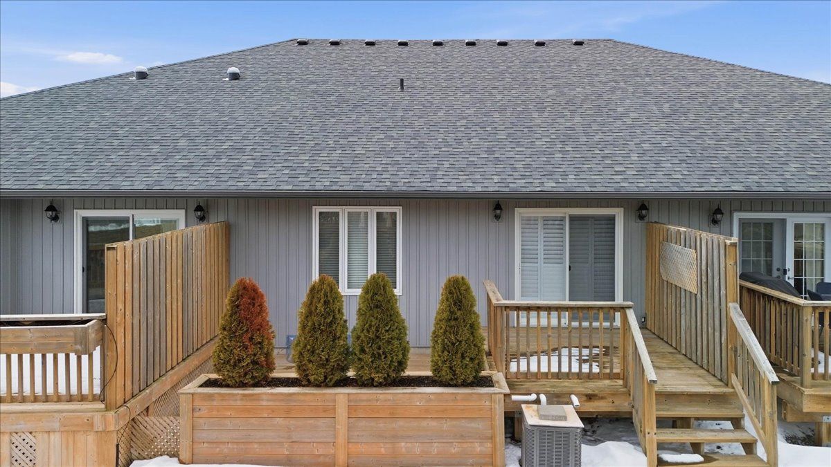 Well maintained villa at wellington on the lake featuring 1375 finished area with 2 bedrooms, 2 bathrooms and a partially finished basement. This home offers new front steps in 2025, a 2 tier back deck offering privacy, freshly painted, new microwave in 2025, upgraded lvp flooring in 2025, upgraded shower heads, danze kitchen pulldown faucet, lr california shutters and stainless steel appliances. Move in ready for you to enjoy the lifestyle that this active adult community offers. Featuring a community rec centre, in-ground pool, tennis and pickle ball court, gym, wood working shop, billards, a gym and soo much more. Located only minutes away from downtown wellington featuring a beach, park, the millennium trail, shopping, fine dining just to name a few. Short drive to numerous wineries, breweries and only 20+ minutes to belleville. Don't miss out on this beautiful home. Common fee is $357. 77 including hst paid monthly and includes garbage removal, snow removal on roads and common areas, recycling, grass cutting, rec centre and more.