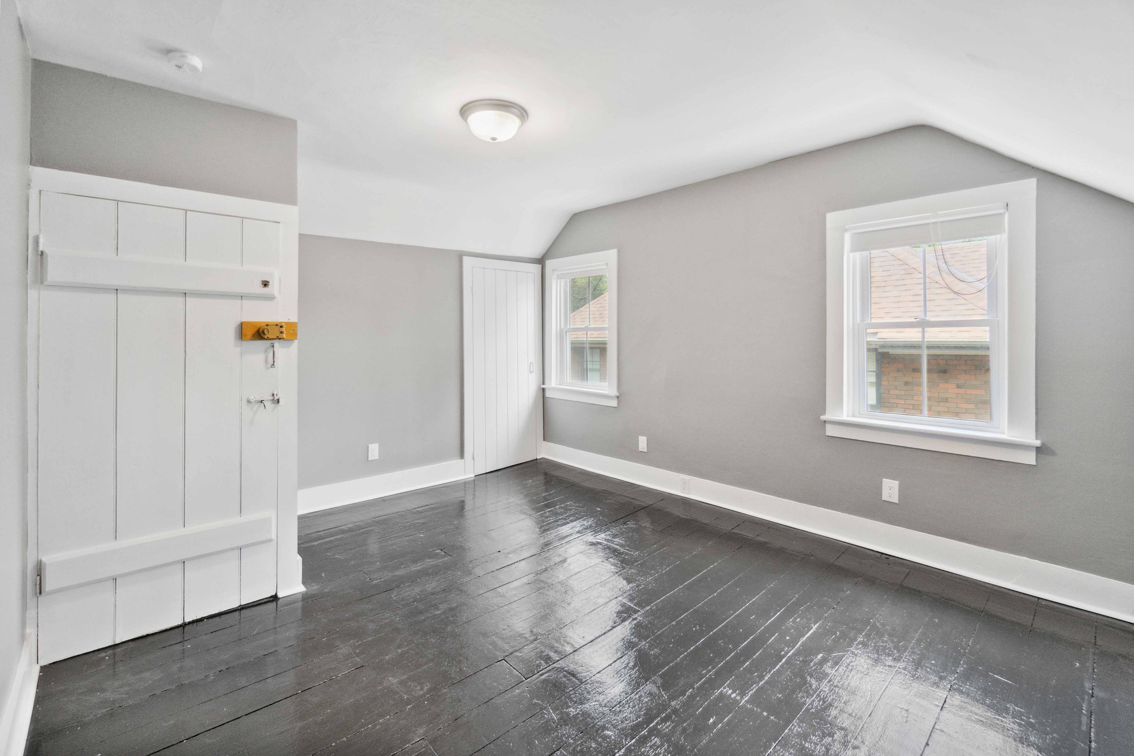 • Main level features wood plank floors, a bedroom, and a study/library.