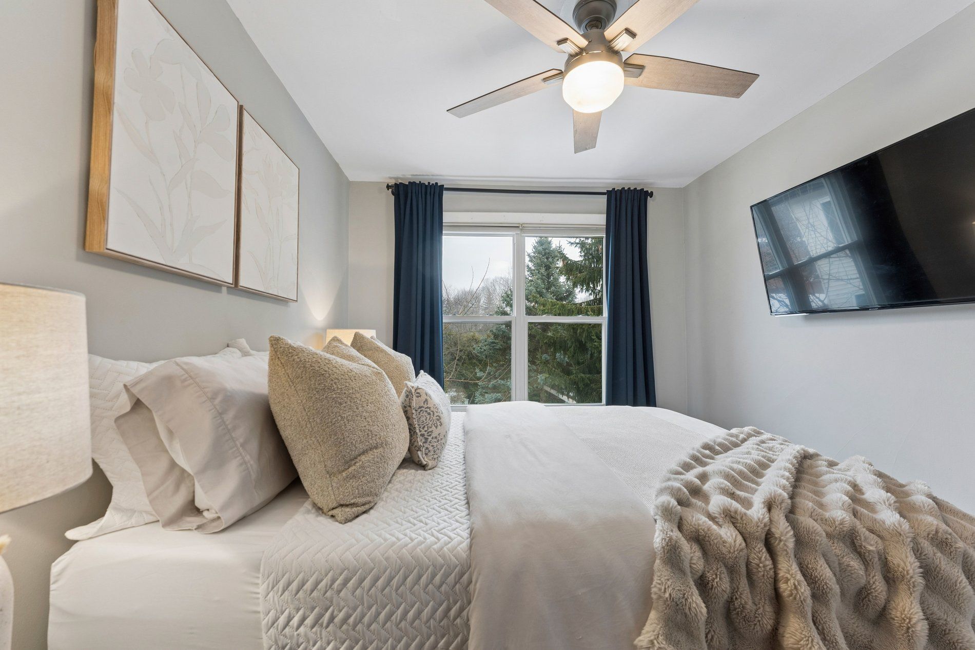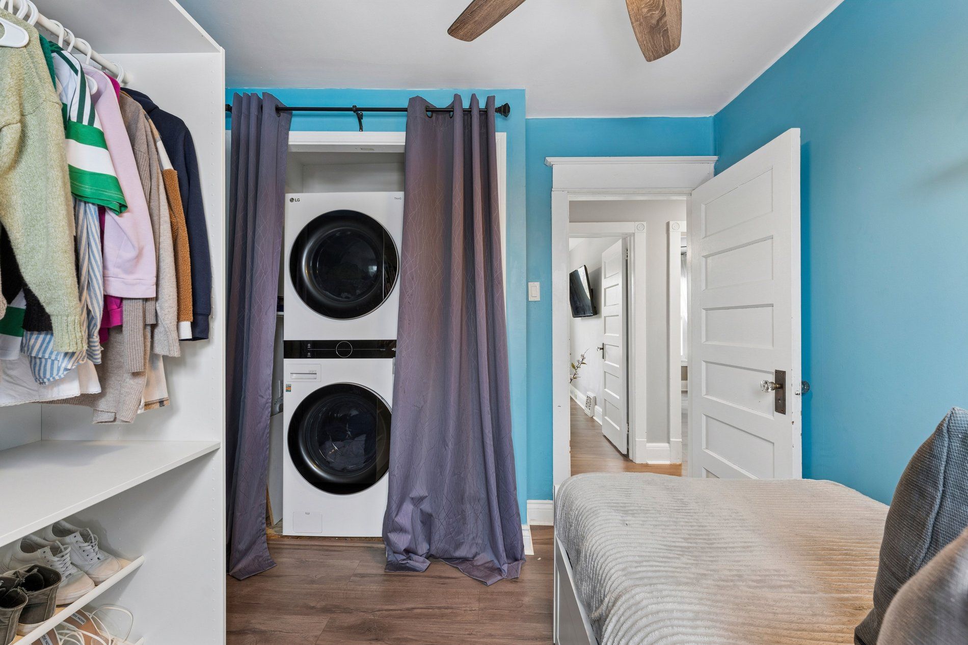 • Modern kitchen with stainless steel appliances and quartz counters.
