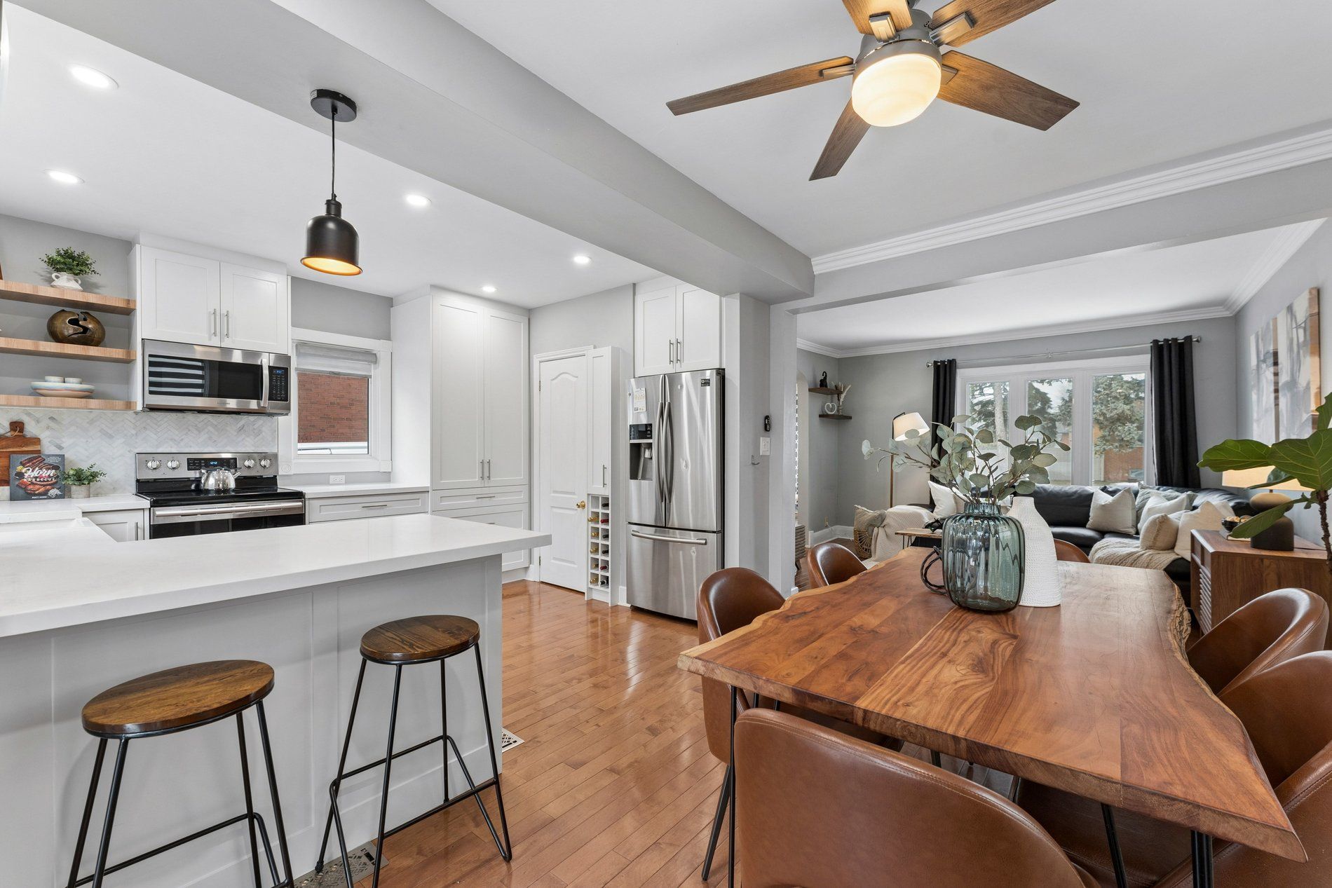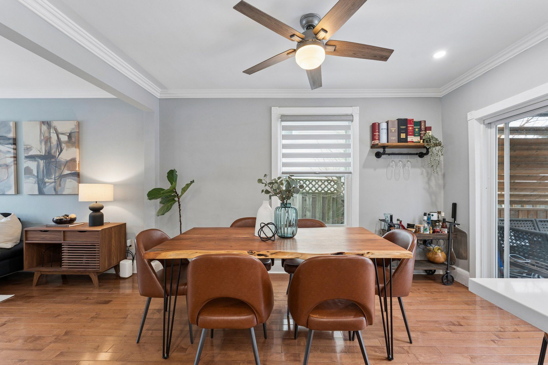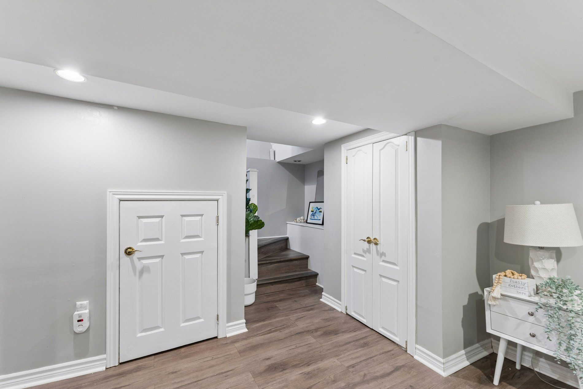 Charming and beautifully updated 2-storey 3+1 bedroom family home offering exceptional space and income potential. Featuring a separate entrance to a finished basement with its own kitchen and 4-piece bathroom - ideal for an in-law or nanny suite and ready to make legal for future rental potential. The main level offers bright open-concept living and dining with large windows and hardwood flooring, along with a modern kitchen featuring stainless steel appliances, custom cabinetry, quartz counters, backsplash and breakfast bar. The dining area provides convenient walk-out access to the private backyard, making it perfect for indoor-outdoor entertaining. Upstairs offers three generously sized bedrooms, updated laminate flooring, convenient upper-level laundry with stacked washer & dryer, and a bright 4-piece bathroom with window and plenty of natural light. Bedrooms also include custom wardrobe closets and additional storage space available in the attic with staircase access. Enjoy a private, fully fenced and landscaped backyard designed for entertaining with a spacious built-in deck, custom wood seating, privacy screening, outdoor tv area, fire pit and tranquil garden pond water feature. The property also includes an 8 x 16 backyard shed for additional storage. Located close to schools, parks, shopping, go transit and the new recreation trail (2023), this home offers the perfect combination of comfort, flexibility and convenience.