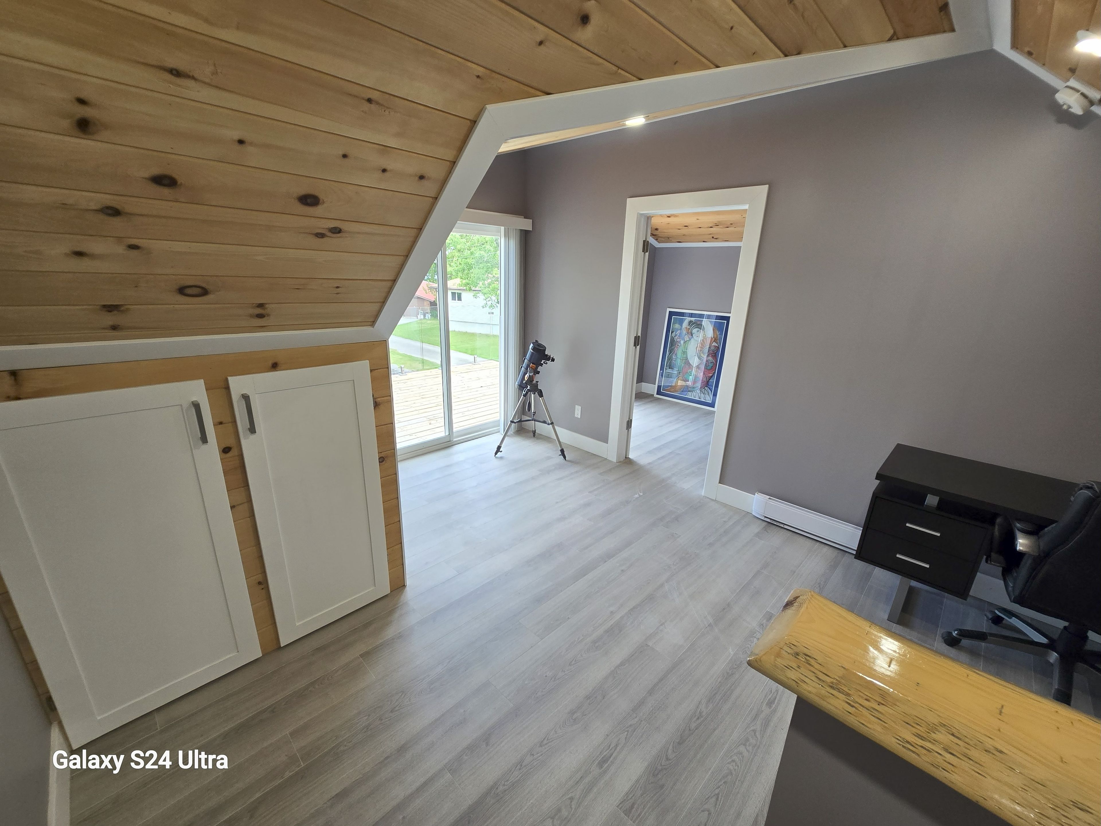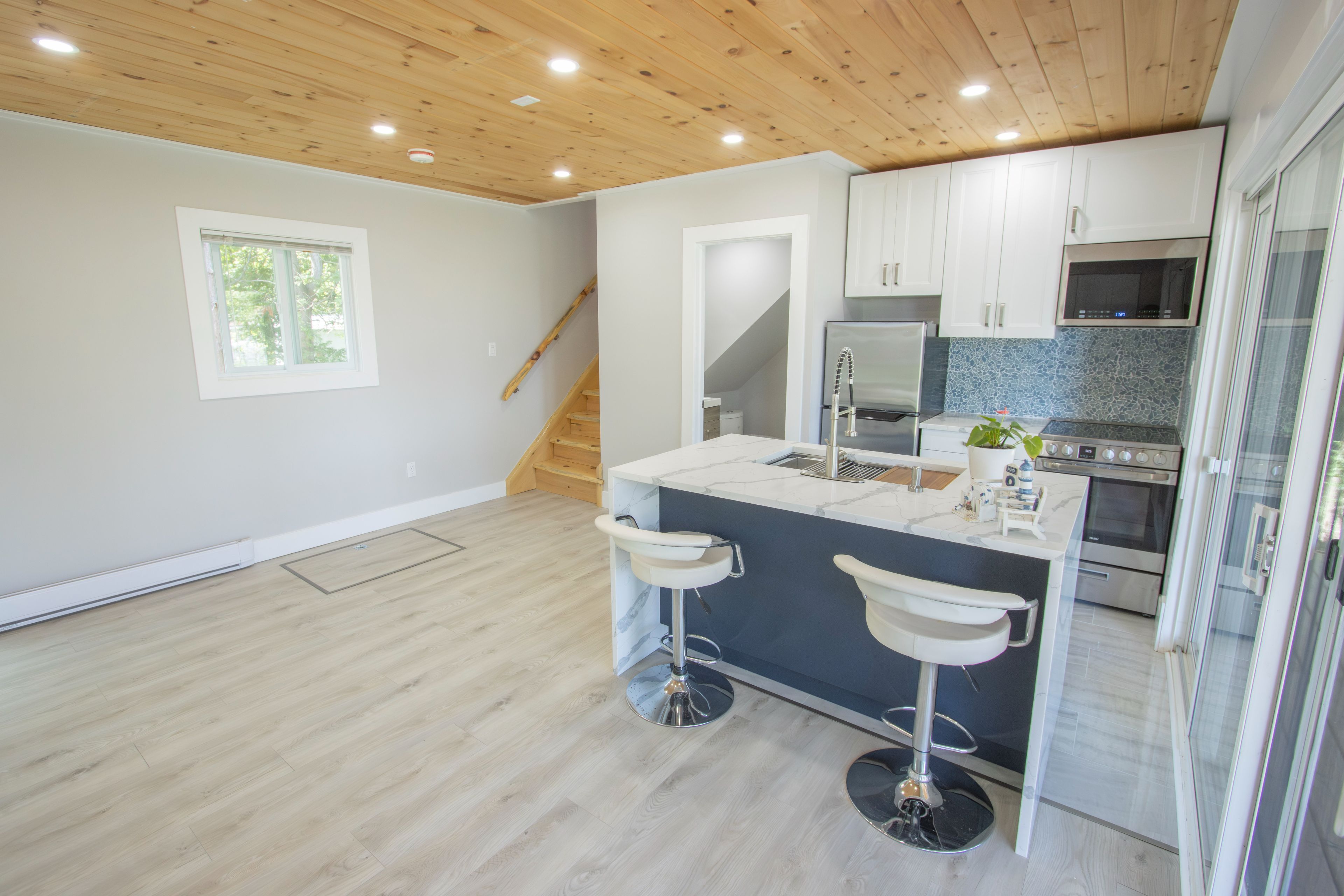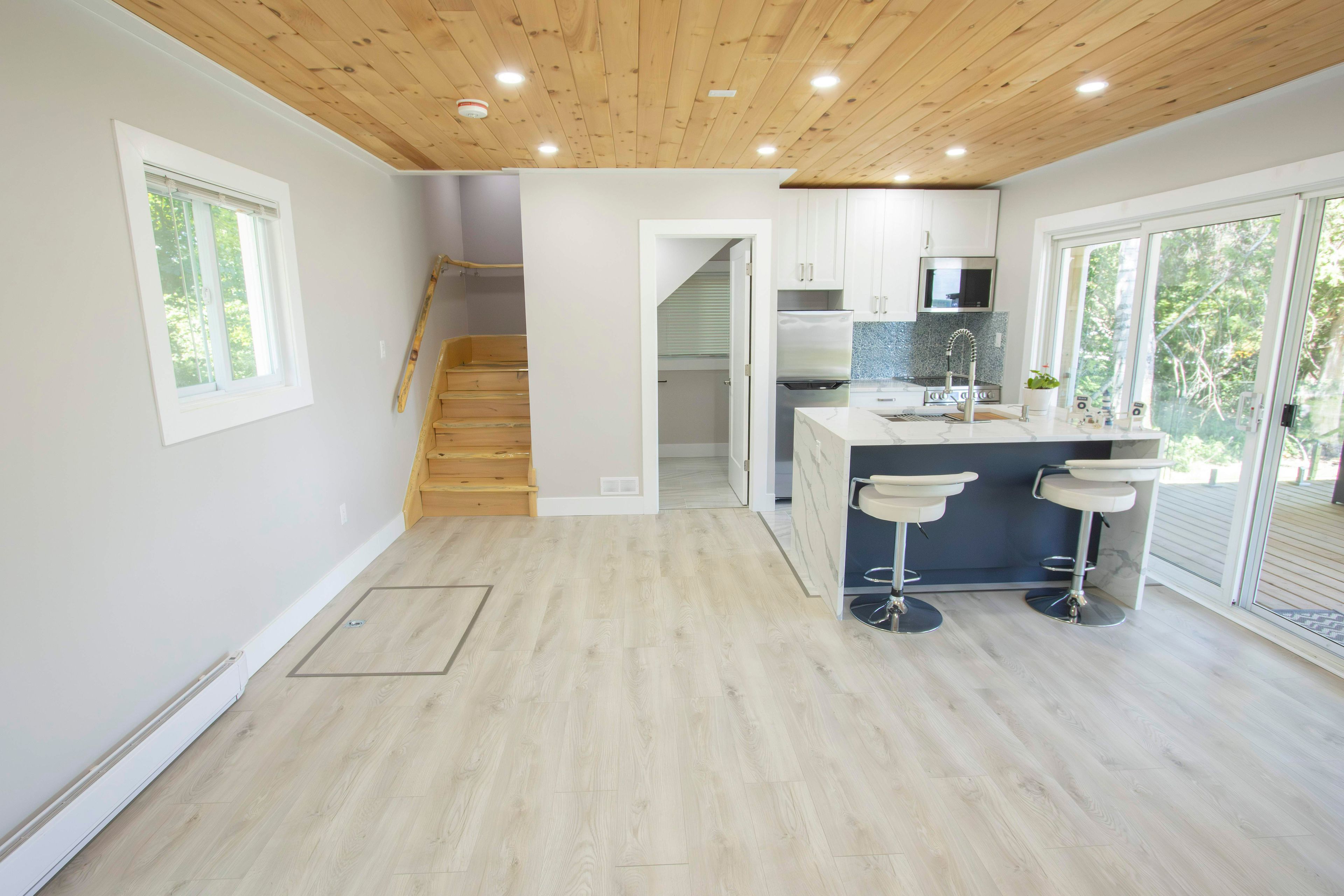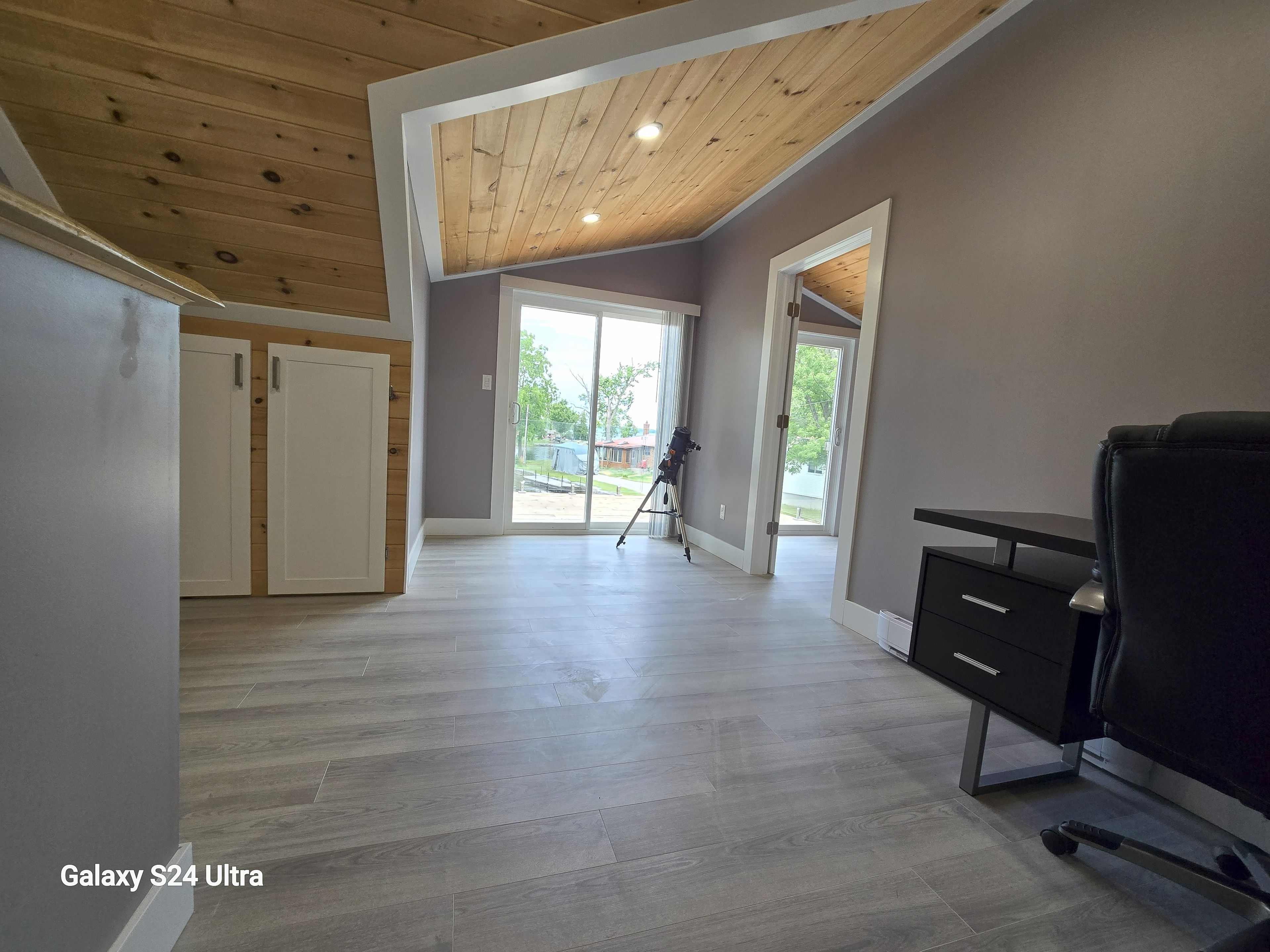 Welcome to your new four-season waterfront oasis, perfectly situated just minutes from the sandbar on pigeon lake! This stunning 1. 5 bedroom & 1 bathroom, newly built conversion home boasts an unbeatable location at the end of a four-season municipal road. The bay acts as a natural marina, providing excellent protection for your water toys from wind and waves. This property offers an array of impressive features, including an armor stone shoreline, a new drilled well, and an oversized 11,000l holding tank. You'll love the massive upper and lower decks with frameless glass railings, ideal for enjoying the breathtaking views. Inside, the bathroom, a live-edge staircase with a resin landing, and live-edge handrails. The final inspection for this home was granted in january 2025. This one-bedroom plus den home sits on a 44ft x 88ft north-west facing lot, offering protection from the elements while providing stunning views of the bay, lake, and unforgettable sunsets. The manageable lot size is perfect for those who prefer not to spend hours on yard work. This property is ideal for a small family or as a low-maintenance cottage. You can enjoy fishing for bass, musky, walleye, or panfish right from your own property. You'll be surrounded by multi-million dollar homes and benefit from a convenient location, just 1. 5 hours from the 401/dvp, with the 407 extending to highway 115, ensuring a smooth commute. Experience the luxury of living on your own land in a brand new waterfront home for the price of a local condo!
