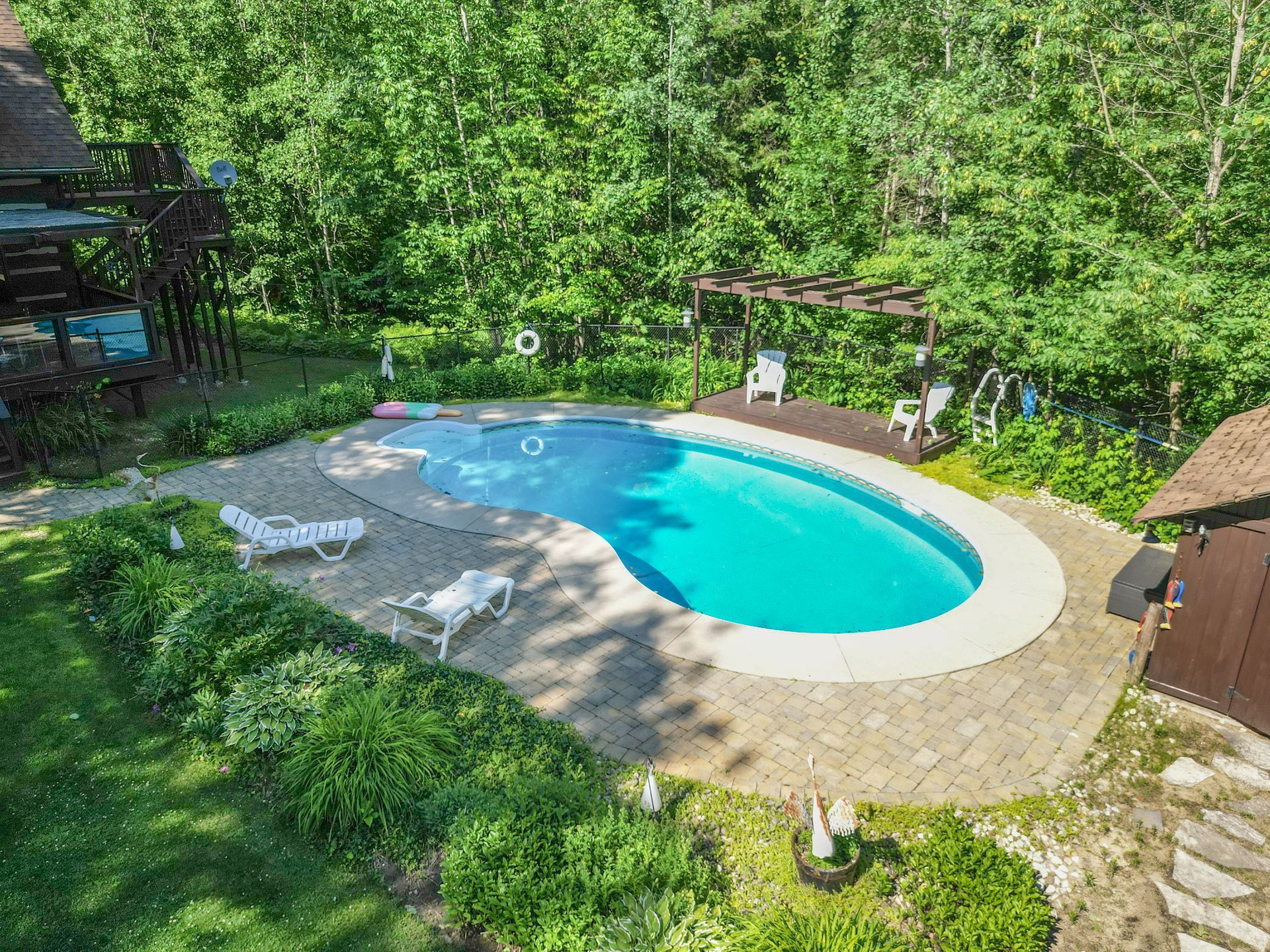 Storybook retreat in pine river estates. Tucked away on a picturesque 2. 32-acre private lot, this gorgeous log home is the perfect blend of rustic charm and modern comfort. Steps away from simcoe county forests, where you can enjoy hiking, biking, and atv trails. Imagine waking up to the peaceful sounds of nature, sipping coffee on your romantic balcony, and cozying up by the fire as the seasons change around you. Step inside to discover a warm and inviting main level, where the rustic open-concept design welcomes you with the crackling of the wood-burning fireplace. The spacious kitchen and dining area create the perfect gathering space, while main-floor laundry and interior garage access add to the convenience of the home. Upstairs, you'll find 4 spacious bedrooms, including a primary retreat with its own private balcony and semi-ensuite bathroom, the perfect escape for quiet mornings and starlit evenings. A bonus loft space offers endless possibilities, whether as a cozy reading nook, home office or play area for the kids. The finished basement is built for entertaining, featuring a games room, an electric fireplace and a pool table, setting the stage for endless family fun and relaxation. But the real magic unfolds in the backyard, a storybook setting with a large inground saltwater pool, a relaxing hot tub and a spacious deck designed for unforgettable summer nights. The perfectly manicured yard and firepit area completes this dreamy outdoor retreat, making it feel like your very own private resort. This home truly has everything you need and more, a serene escape with all the comforts of modern living. Don't miss your chance - book a showing today.