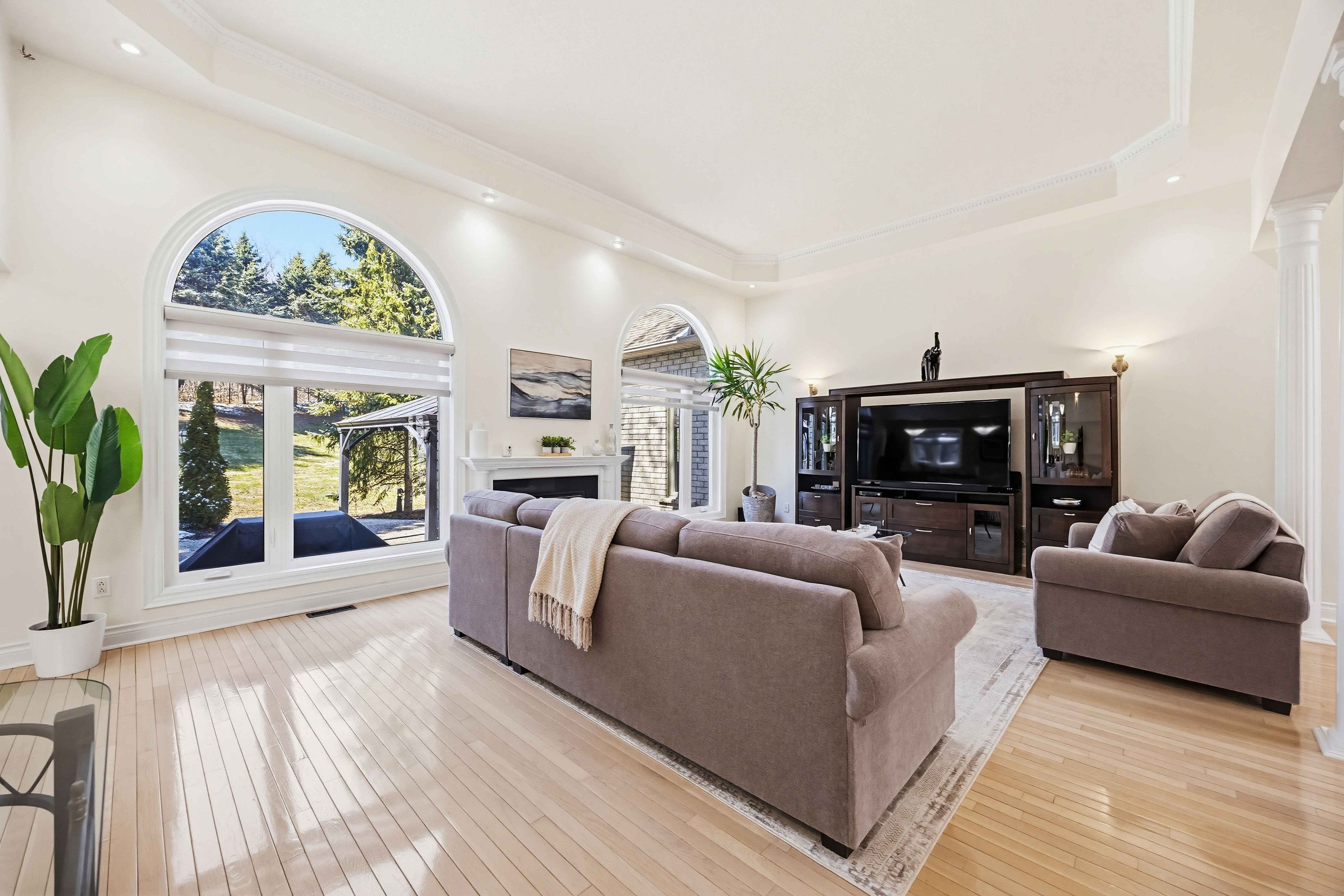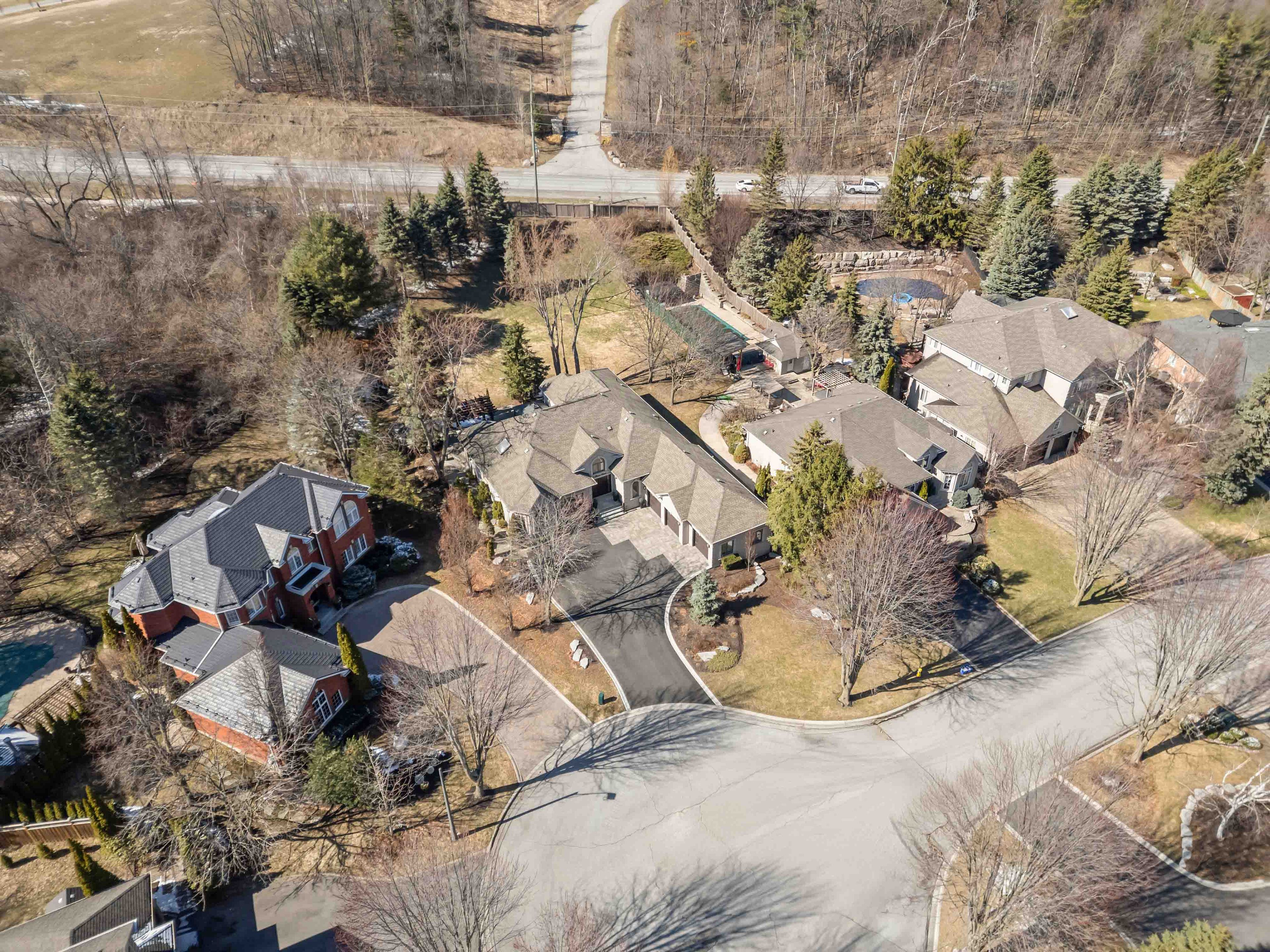 Welcome to 71 glacier court, an expansive luxury bungalow perfectly situated at the top end of one of maple downs' most coveted cul-de-sacs. Surrounded by natural beauty and just steps from protected trails and parks, this exceptional residence offers over 4,500 sq. Ft. Of refined living space where elegance and tranquility seamlessly converge. Step inside to experience the grand open-concept layout, highlighted by a soaring 14-foot ceiling in the expansive great room, overlooking the spectacular backyard. Every detail reflects exceptional craftsmanship and thoughtful design. At the heart of the home is a chef-inspired kitchen, complete with a large centre island, high-end built-in appliances, and a spacious breakfast area-ideal for both everyday living and entertaining. Garden doors open to a private backyard oasis featuring a custom covered pergola, expansive patio, gas bbq line, and lush greenery and mature trees. The primary suite offers a luxurious retreat, complete with a sitting area and a spa-like, fully updated 5-piece ensuite featuring double vanities, a soaker tub, and a large glass shower. A beautifully renovated jack-and-jill bathroom serves the additional bedrooms, showcasing a double vanity and a walk-in shower with a built-in niche. The fully finished basement extends the living space with a complete kitchen and dining area, a recreation room with custom built-ins, a mirrored gym wall, games area, and a stylish built-in bar-perfect for entertaining. Basement can be accessed from both the main floor and garage. 71 glacier is ideally located just minutes from elite schools such as the country day school and villanova college, and near world-renowned golf courses including eagles nest and maple downs, with convenient access to north maple regional park via scenic walking trails.