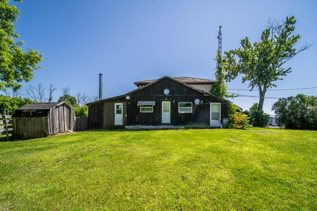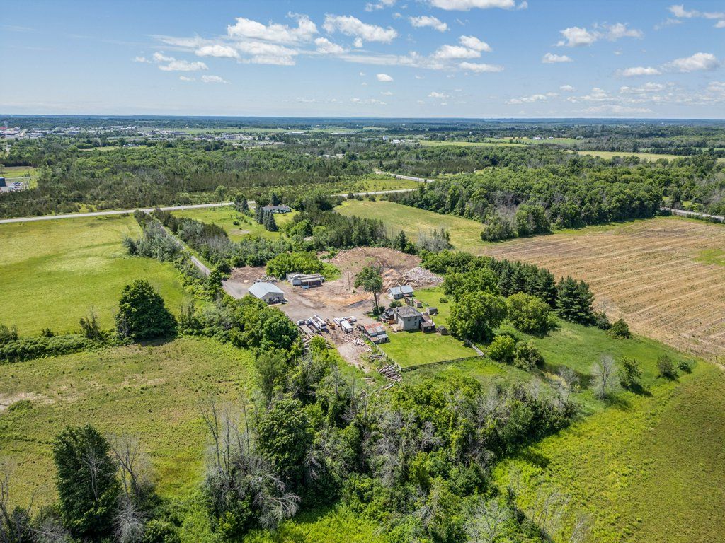 This two-storey house, originally built in 1860, sits on approximately 10 acres on goodyear rd just outside of napanee with convenient access to highway 401. The property offers a unique opportunity for those seeking a mixed-use or investment property with strong business potential. The main dwelling includes three bedrooms, four bathrooms, and two kitchens, providing flexibility for multi-unit living or staff accommodation, while offering practical functionality for both residential and business use. In addition to the main house, the property features a self-contained guest house with its own bedroom, bathroom, and kitchen, adding further income or accommodation potential. A large detached garage/workshop and additional outbuildings provide ample space for equipment, storage, or shop use. The property is currently set up as a functional triplex with separate meters, supporting multiple living or working spaces. Located on a road with year-round full weight access for transport vehicles and offering generous space for transport trucks, trailers, and equipment to maneuver and turn around, this property is well suited for contractors, trades, or businesses looking for a home base with excellent highway access. With its combination of housing, shop space, office potential, and proximity to the 401, this property presents a rare opportunity for someone to have a highly versatile property.