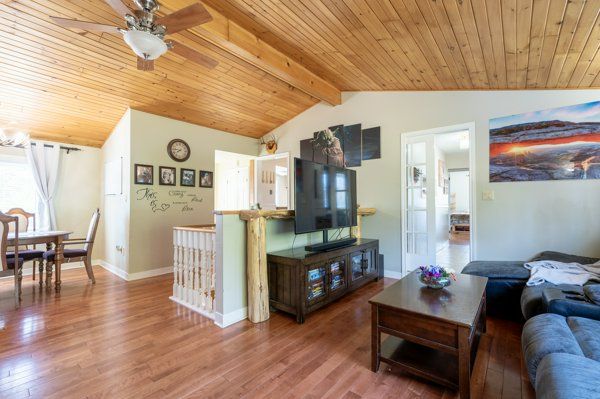 • Vaulted ceilings and large front window create a bright atmosphere.