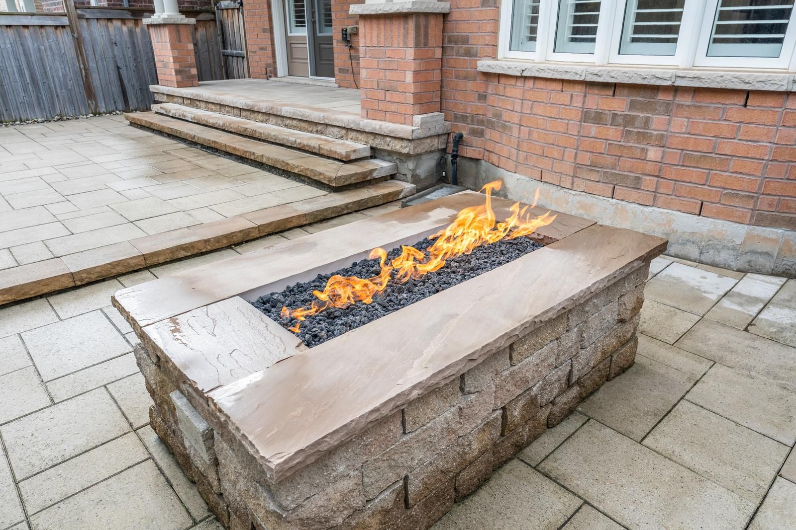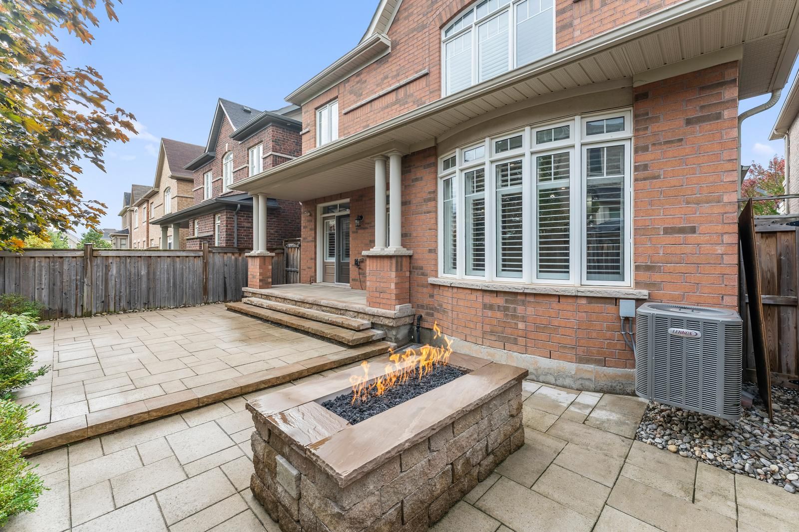 • Low-maintenance backyard with interlock and firepit for outdoor enjoyment.