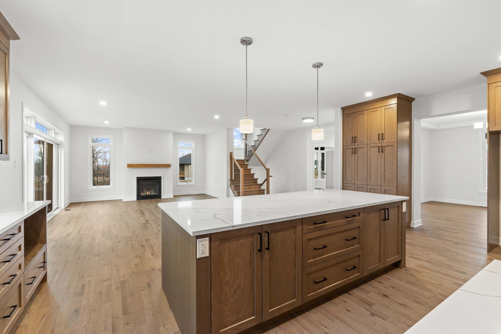 Located in the second phase of hogan heights, this thoughtfully designed two-storey home offers the perfect blend of country charm and modern convenience. Situated near the algonquin trail, the property provides easy access to recreation, shopping, and schools. The featherston model by mackie homes boasts approximately 2,973 square feet of living space, featuring a bright and inviting layout that combines formal rooms with an open-concept design. With four bedrooms, three bathrooms, and a dedicated home office, the residence offers generous space throughout. Inside, the layout unfolds with both elegance and function. A formal dining room provides a distinct area for hosting gatherings. The kitchen is well-appointed, with granite countertops, abundant cabinetry, a walk-in pantry, and a large centre island that extends the prep space. The great room centres around a natural gas fireplace, creating a warm focal point. Patio doors open onto the back deck, extending the living space outdoors for effortless indoor-outdoor living. A convenient family entrance leads to the powder room, laundry area, and provides interior access to the three-car garage. Upstairs, the primary bedroom features a walk-in closet and a luxurious ensuite complete with a freestanding tub, a shower, and a dual-sink vanity. The upper level is completed by a sitting room, three additional bedrooms, and a full bathroom. This property is currently under construction.