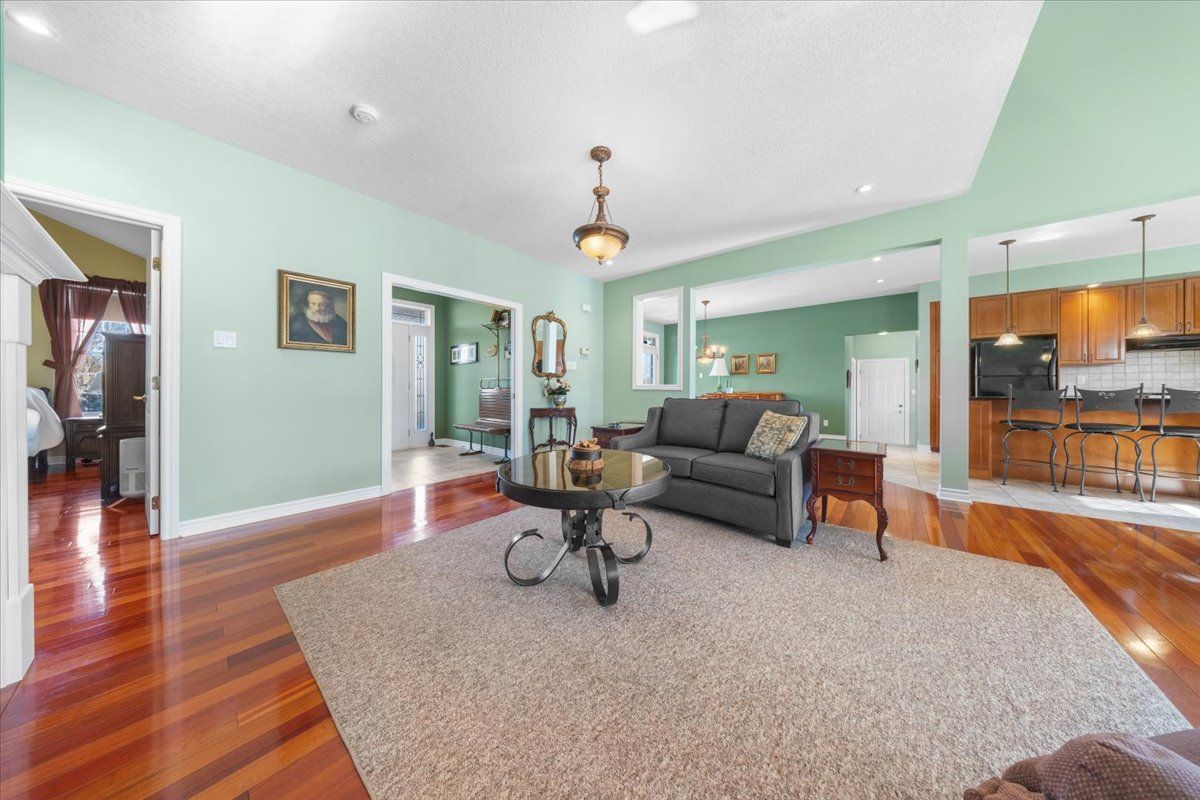 Sheldons landing estates on the big rideau. Positioned on a private 2. 187 acre lot w/water views, this 4 bedroom bungalow loft is defined by its scale, proportion, & connection to the surrounding landscape, w/access to a private sandy beach, dedicated dock space, & boat launch. A covered front veranda w/lake view introduces a composed façade & leads to a tiled foyer w/french pocket doors. The main level is organized under 9 foot ceilings w/hardwood flooring & a balanced, open-concept plan. The centre island kitchen is appointed w/granite surfaces, tile backsplash, recessed sink beneath an overhead window, gas range, & extensive cabinetry, flowing directly into the dining area w/walk-in pantry & exterior access. Principal living spaces are anchored by a gas fireplace w/custom hearth, while the adjoining family room is distinguished by vaulted ceilings & a full wall of west-facing glazing, creating strong visual continuity w/the exterior & access to the rear deck w/pergola. The main floor primary suite is defined by cathedral ceilings, walk-in closet, & a private ensuite. A secondary bedroom or den, powder room, laundry, & direct access to the finished three car garage complete the main level. An open stair rises to a loft-style landing overlooking the lower level, leading to two additional bedrooms & a full bath. The lower level remains unspoiled, offering flexible future development. Site features include a paved driveway, interlock walkway, year-round road access, & high-speed internet. Located minutes to portland amenities and the rideau lakes system. Annual water front lot fee of $250 includes beach access, insurance, & maintenance. 24 hour irrevocable on all offers.
