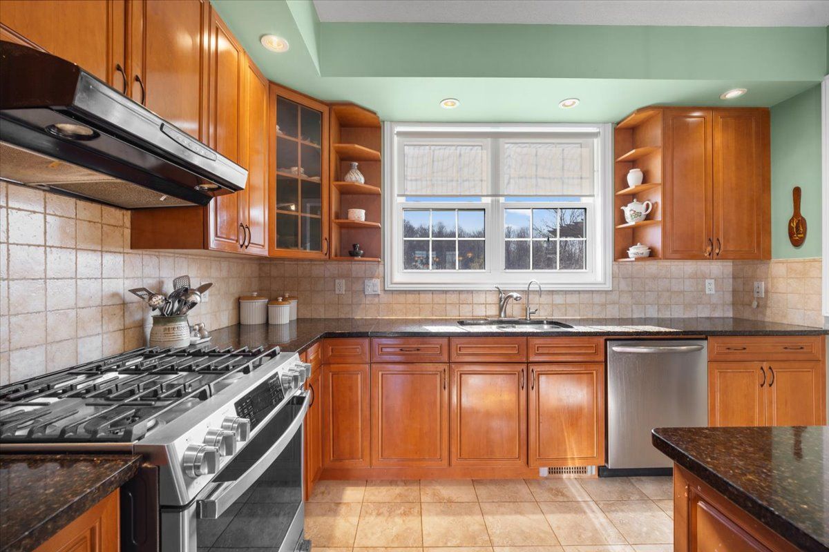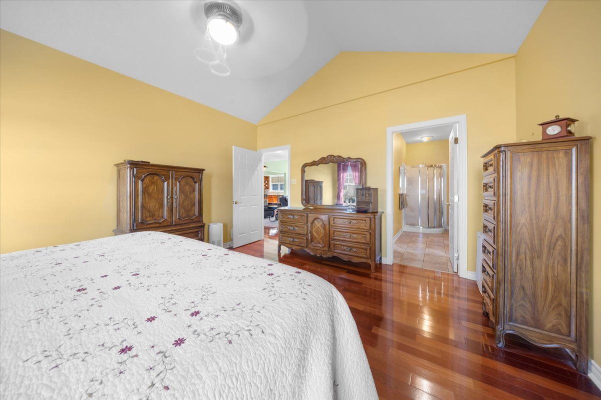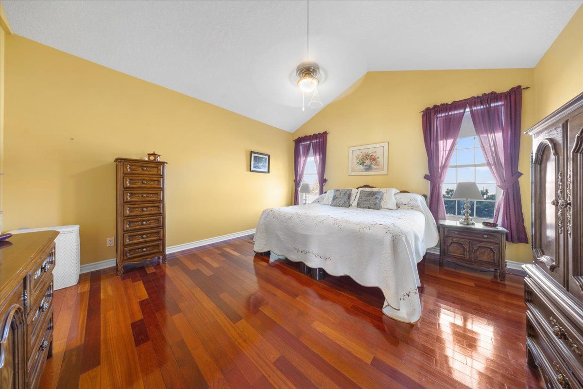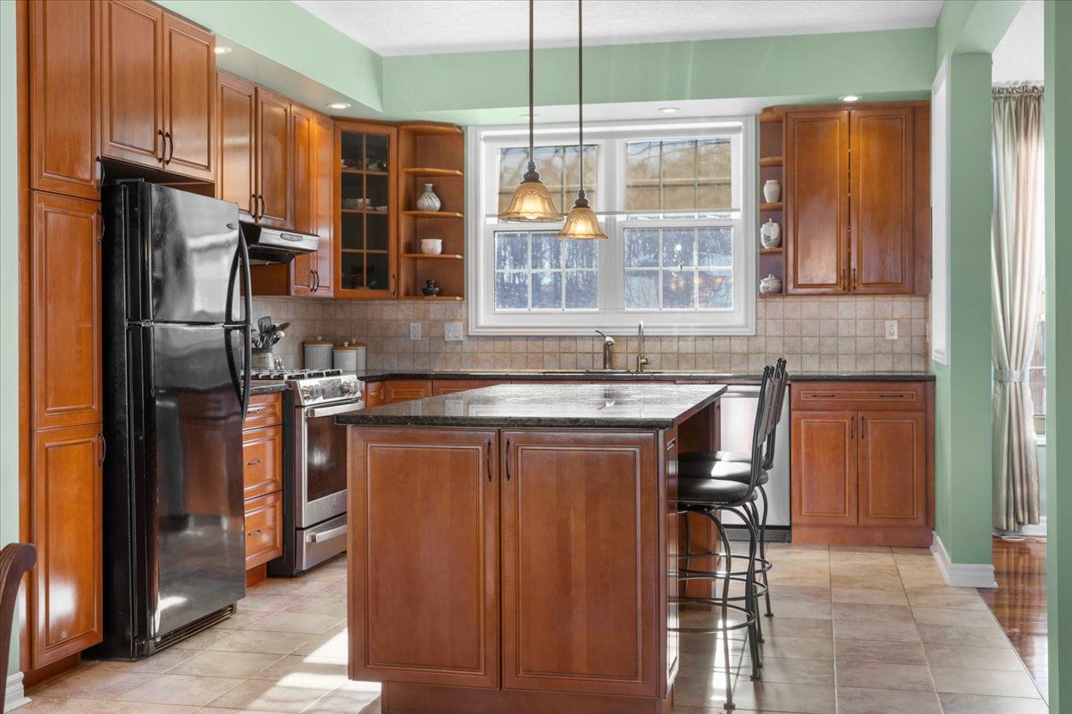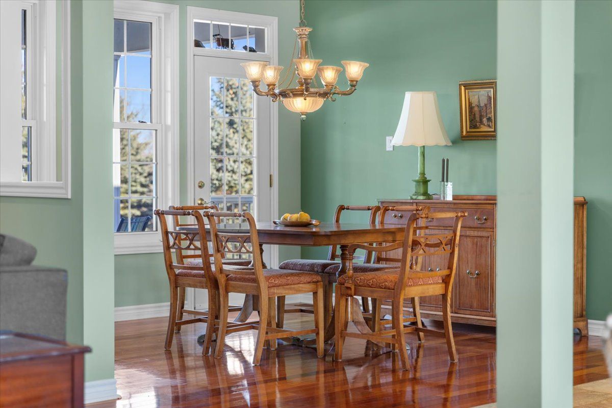 • Family room boasts vaulted ceilings and large windows for natural light.