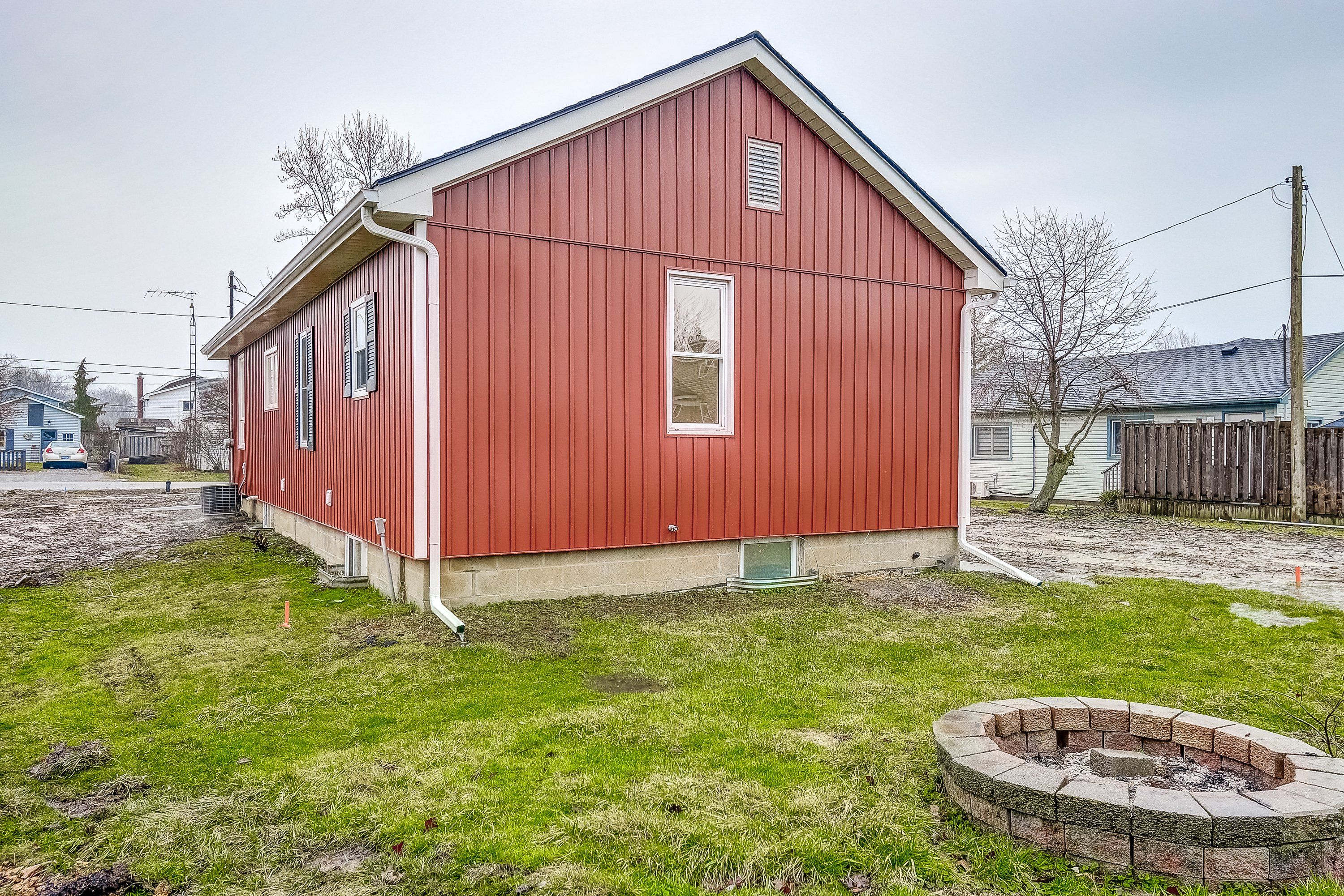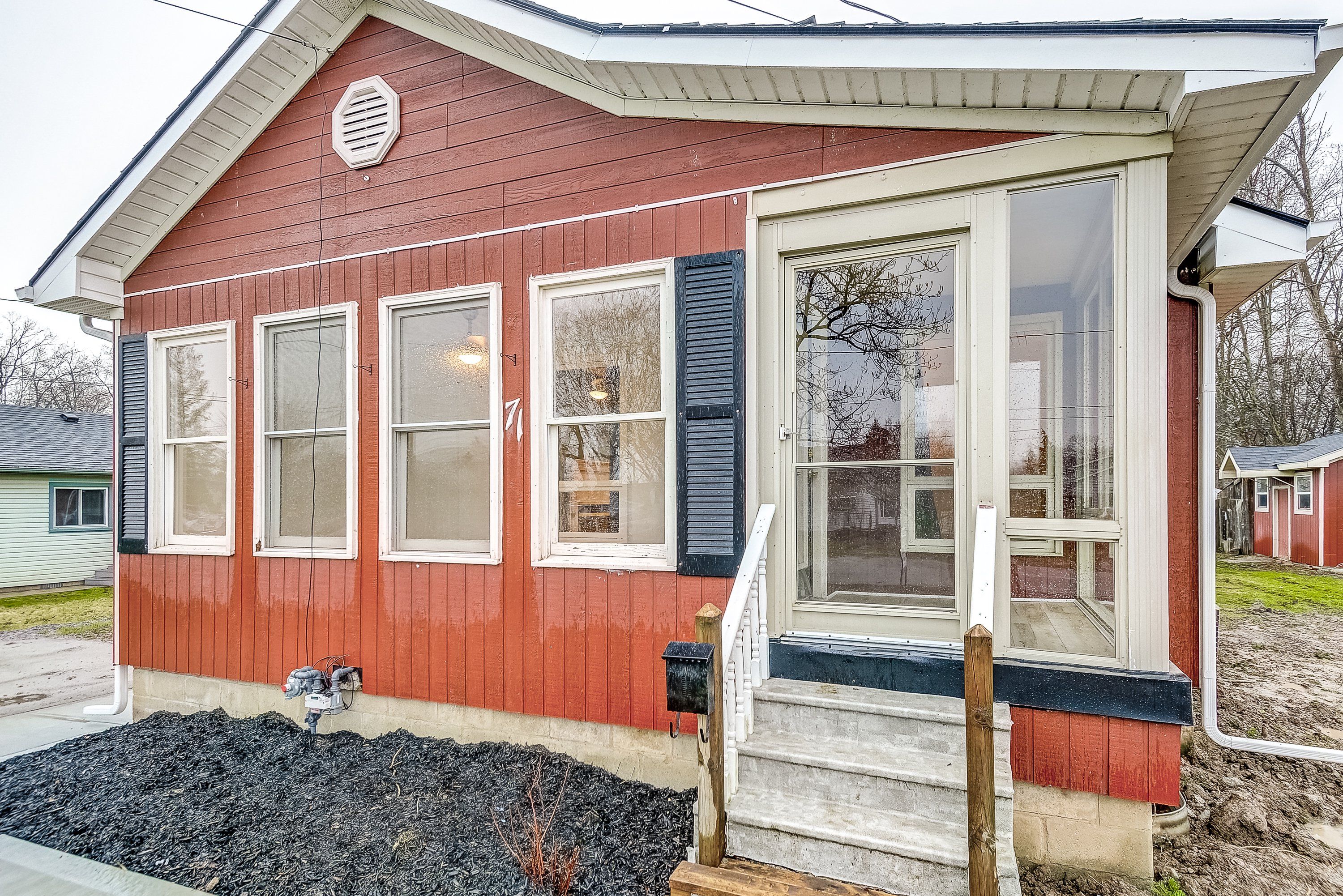 Welcome to this charming and versatile bungalow, within walking distance to lake, beach and beautiful parks, offers the perfect blend of comfort, space, and functionality. Featuring 2+3 bedrooms and 2 bathrooms, this home is ideal for families, down-sizers, first time buyers orthose seeking additional space for a home office or guests. The main level boasts a bright and inviting layout with two bedrooms, a full bathroom, and a cozy living area with natural gas fireplace perfect for everyday living. The main-floor primary bedroom includes the convenience of a private 2-piece ensuite. A sun-filled sunroom provides the perfect spot to relax with your morning coffee or unwind at the end of the day, while the practical mudroom adds everyday convenience with direct access and extra storage. Downstairs, the partially finished full basement expands your living space with three additional bedrooms, offering flexibility for growing families, visitors, or hobby rooms. There is also a bonusfree standing shower downstairs! Recent upgrades include concrete 2 car driveway with concrete walkways(2025), new vinyl siding(2025), new roof shingles(2025), new fascia and trough/downspouts(2025), updated main bathroom(2026), new butcher-block kitchen countertop(2026),some new flooring(2026), nearly all new drainage plumbing(2026) and more!