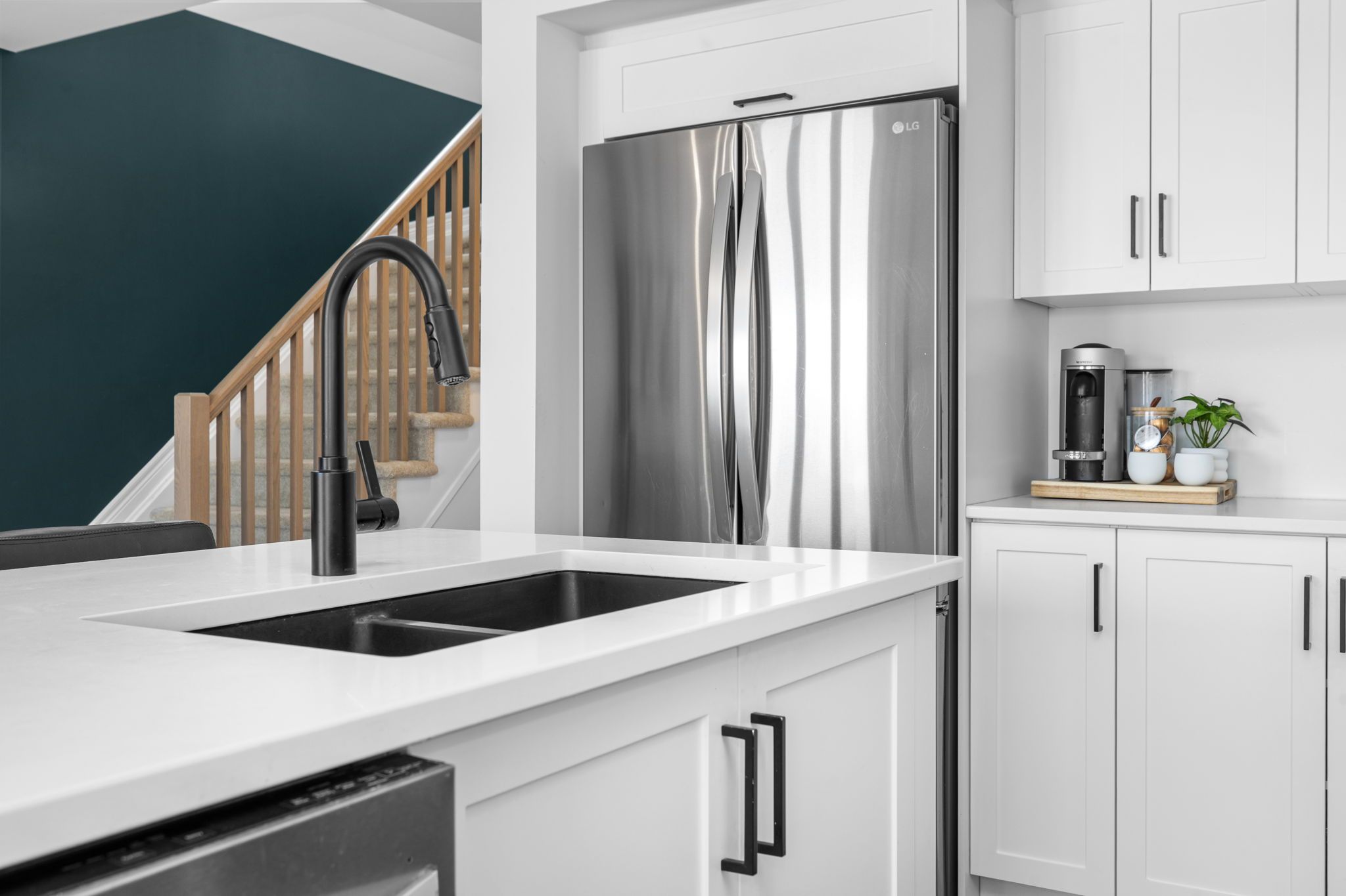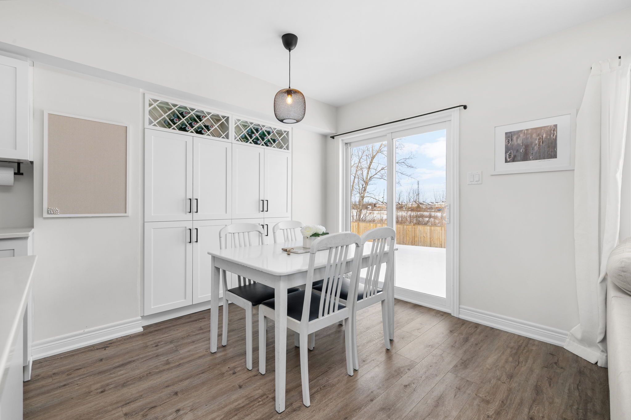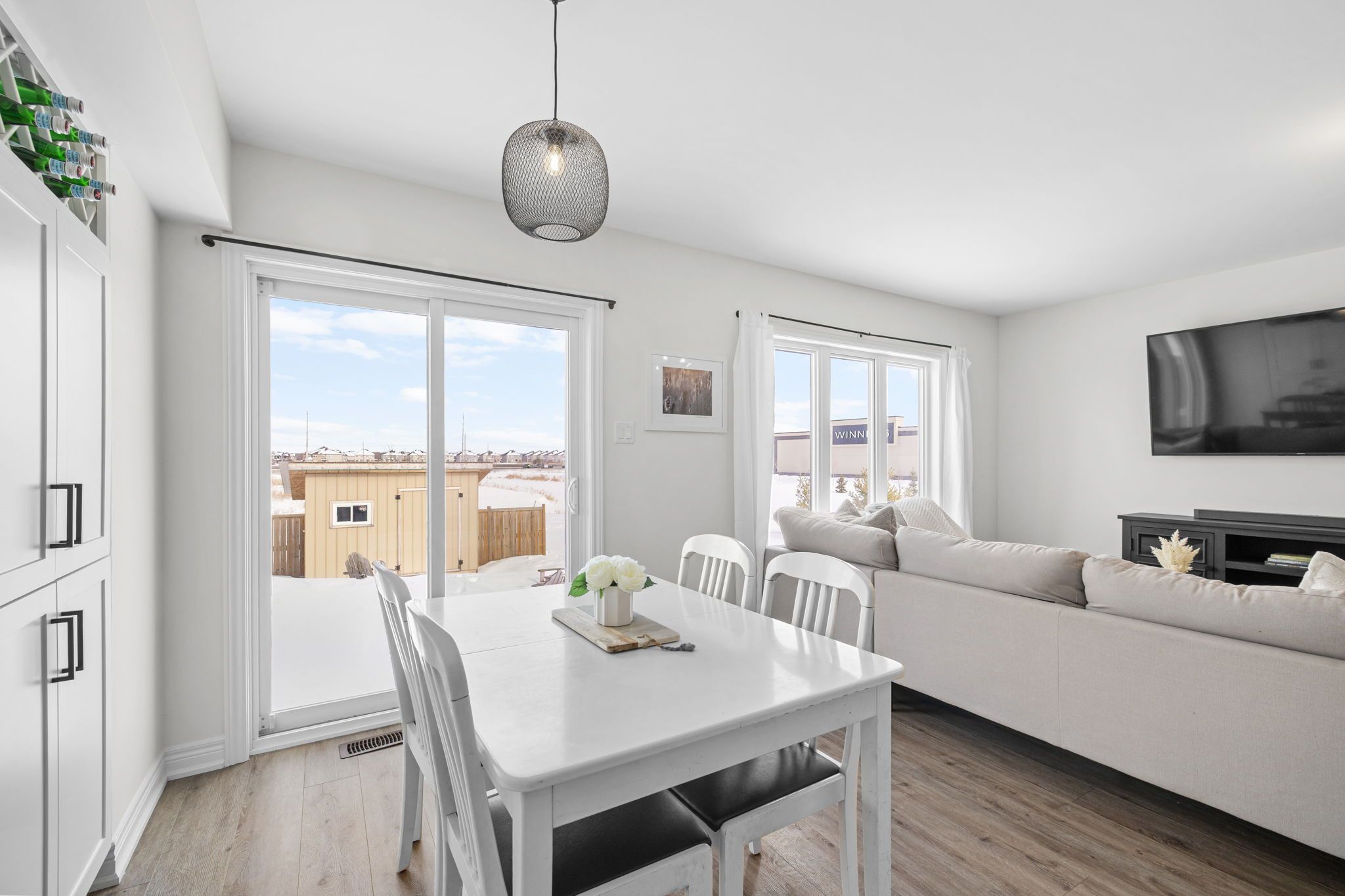 Welcome to this beautifully maintained 2022-built end-unit townhome offering exceptional privacy with no rear neighbours and no direct side neighbour. With 3 bedrooms, 2. 5 bathrooms, and a finished basement, this home blends modern style with everyday functionality. The thoughtfully designed main level features an open-concept layout ideal for both entertaining and family living. The classic white kitchen is complemented by quartz countertops, black hardware, a spacious island with breakfast bar, and custom built-in pantry cabinetry for added storage and organization. Luxury vinyl flooring runs throughout the main level and continues into the finished basement for a cohesive and contemporary feel. Upstairs, the primary suite offers a relaxing retreat complete with a beautifully designed ensuite featuring a double sink vanity and a custom built-in walk-in closet. Two additional bedrooms, a full main bathroom, and convenient second-floor laundry complete the upper level. The finished basement expands your living space with a comfortable family room and a newly added wet bar-perfect for hosting guests or creating the ultimate movie-night setup. Located within walking distance to shops and restaurants, this home offers the perfect balance of privacy, style, and convenience-simply move in and enjoy.