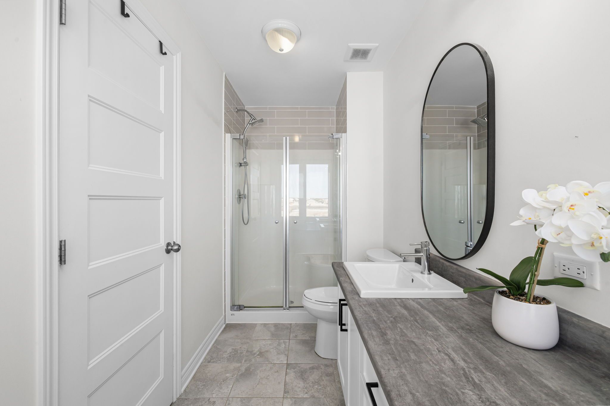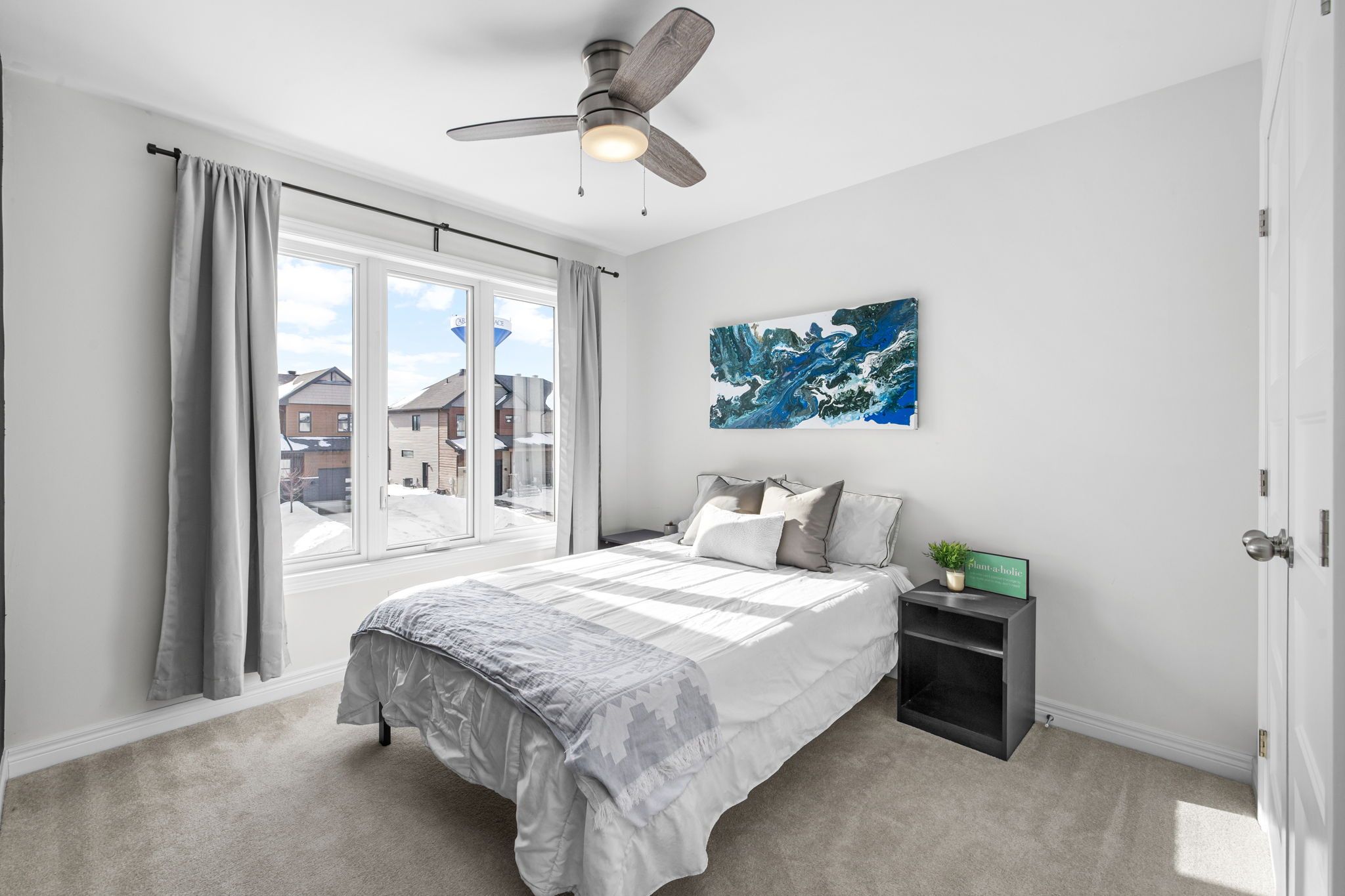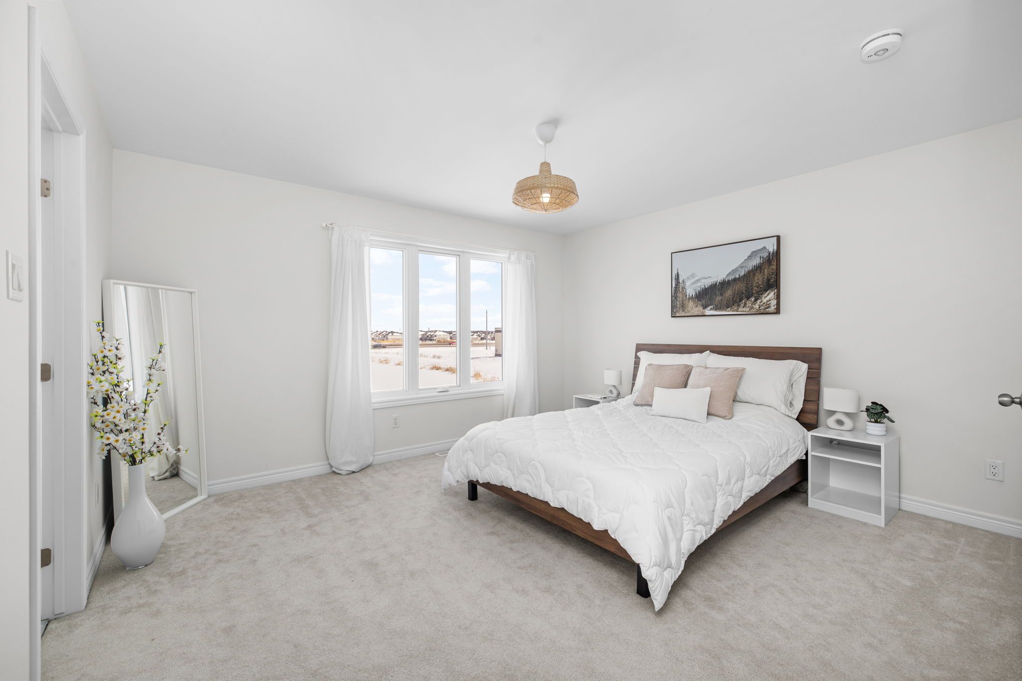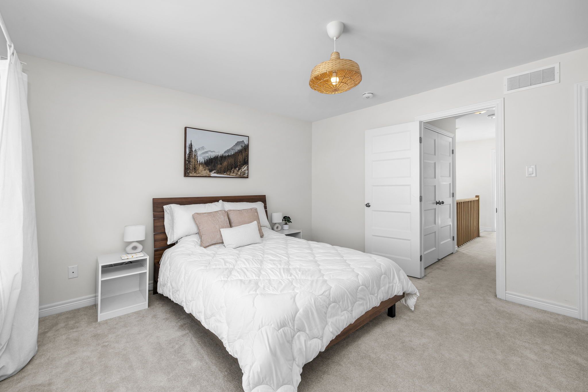 Welcome to this beautifully maintained 2022-built end-unit townhome offering exceptional privacy with no rear neighbours and no direct side neighbour. With 3 bedrooms, 2. 5 bathrooms, and a finished basement, this home blends modern style with everyday functionality. The thoughtfully designed main level features an open-concept layout ideal for both entertaining and family living. The classic white kitchen is complemented by quartz countertops, black hardware, a spacious island with breakfast bar, and custom built-in pantry cabinetry for added storage and organization. Luxury vinyl flooring runs throughout the main level and continues into the finished basement for a cohesive and contemporary feel. Upstairs, the primary suite offers a relaxing retreat complete with a beautifully designed ensuite featuring a double sink vanity and a custom built-in walk-in closet. Two additional bedrooms, a full main bathroom, and convenient second-floor laundry complete the upper level. The finished basement expands your living space with a comfortable family room and a newly added wet bar-perfect for hosting guests or creating the ultimate movie-night setup. Located within walking distance to shops and restaurants, this home offers the perfect balance of privacy, style, and convenience-simply move in and enjoy.