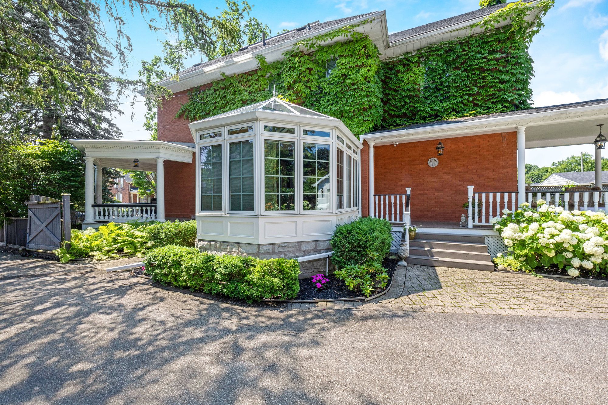 This. Is. Luxury. Welcome to this impeccably restored victorian home (circa 1905), where timeless charm meets elegance and modern comfort. From the moment you arrive, the home's striking curb appeal draws you in-featuring a welcoming front porch and beautifully landscaped perennial gardens, all set among milton's loveliest century homes. Inside, soaring 10-foot ceilings and exquisite craftsmanship set the tone. Gleaming hardwood, crown moulding and deep baseboards and trim create a warm, refined atmosphere throughout. The main level offers a living room with fireplace, dining room conveniently off the kitchen and a study/office with fireplace and rich built-in cabinetry and woodwork. At the heart of the home is the stunning gourmet eat-in kitchen, thoughtfully designed with abundant cabinetry, granite counters and island. The adjoining heated solarium/conservatory is a true showpiece-an inviting space to unwind while enjoying serene views of the gardens year-round. Upstairs, you'll find 4 well-appointed bedrooms and a spa-like 4-pc family bath with heated floor. The primary bedroom features a soaring architectural vaulted ceiling, his/her closets and a luxurious 3-pc ensuite, also with heated flooring. A bonus third-level loft is drywalled and ready for your personal touch. Enjoy the peaceful backyard that is so private and complete with lush perennial gardens and a charming verandah. There is a separate 2-car garage and ample parking in the paved driveway. Additional highlights: approximately 2,300 sq ft above grade, 3 wood-burning fireplaces, central air conditioning, forced air natural gas heating, a separate entrance directly to the lower-level and a full basement with abundant storage. Ideally located within walking distance to schools, rotary park, splash pad, public pool, outdoor ice rink, shops, restaurants, mill pond, and milton's vibrant downtown, this turn-key home offers a rare opportunity to own a piece of history-beautifully updated for modern living.