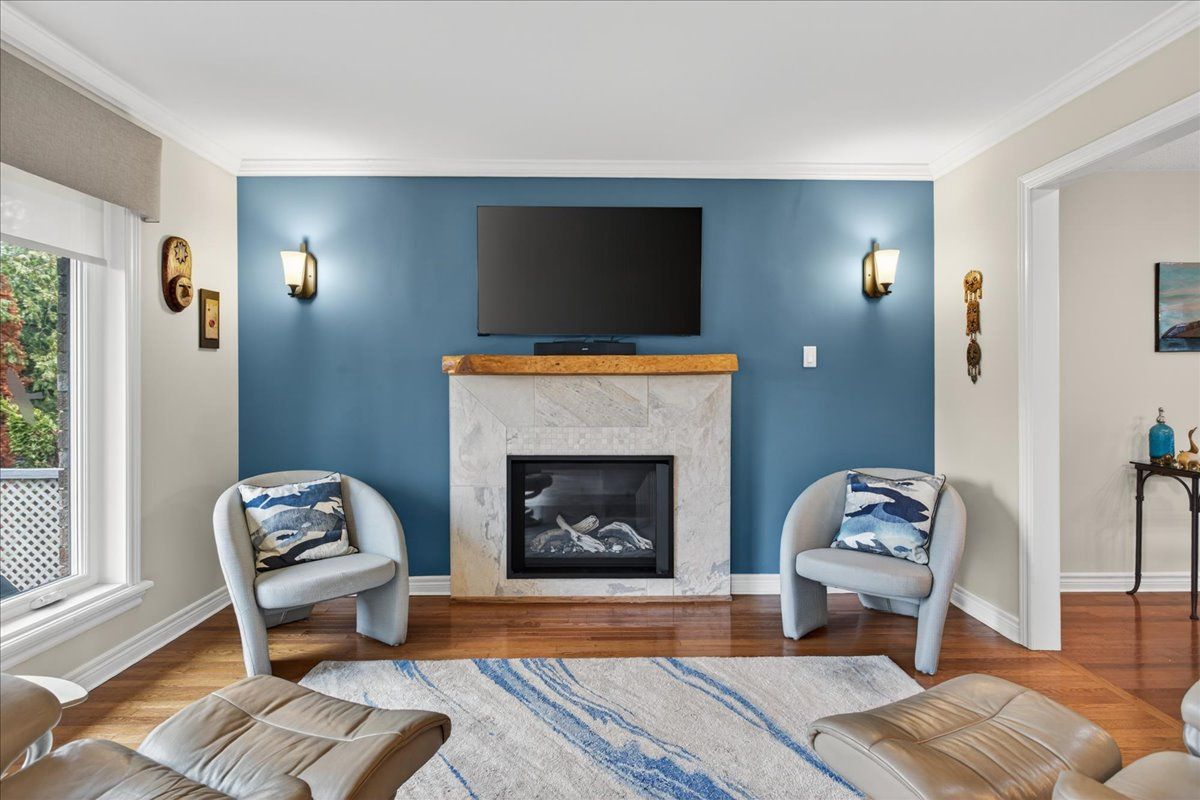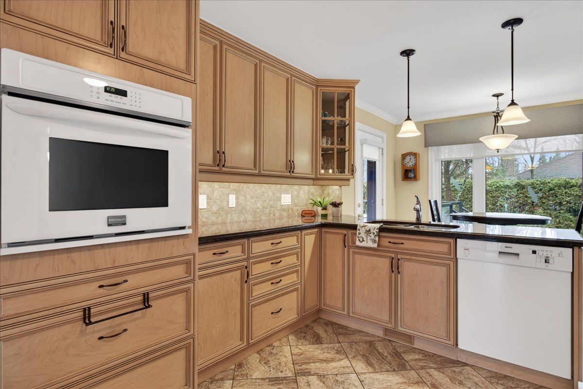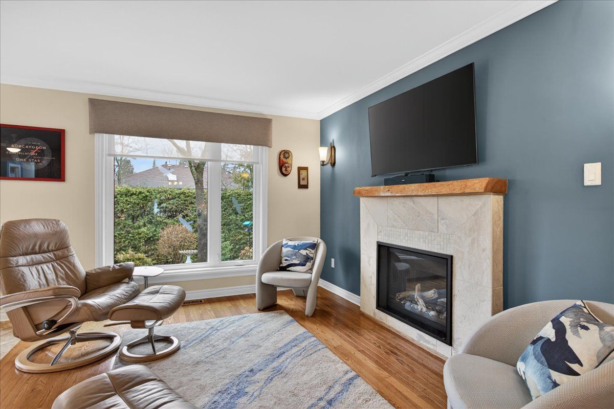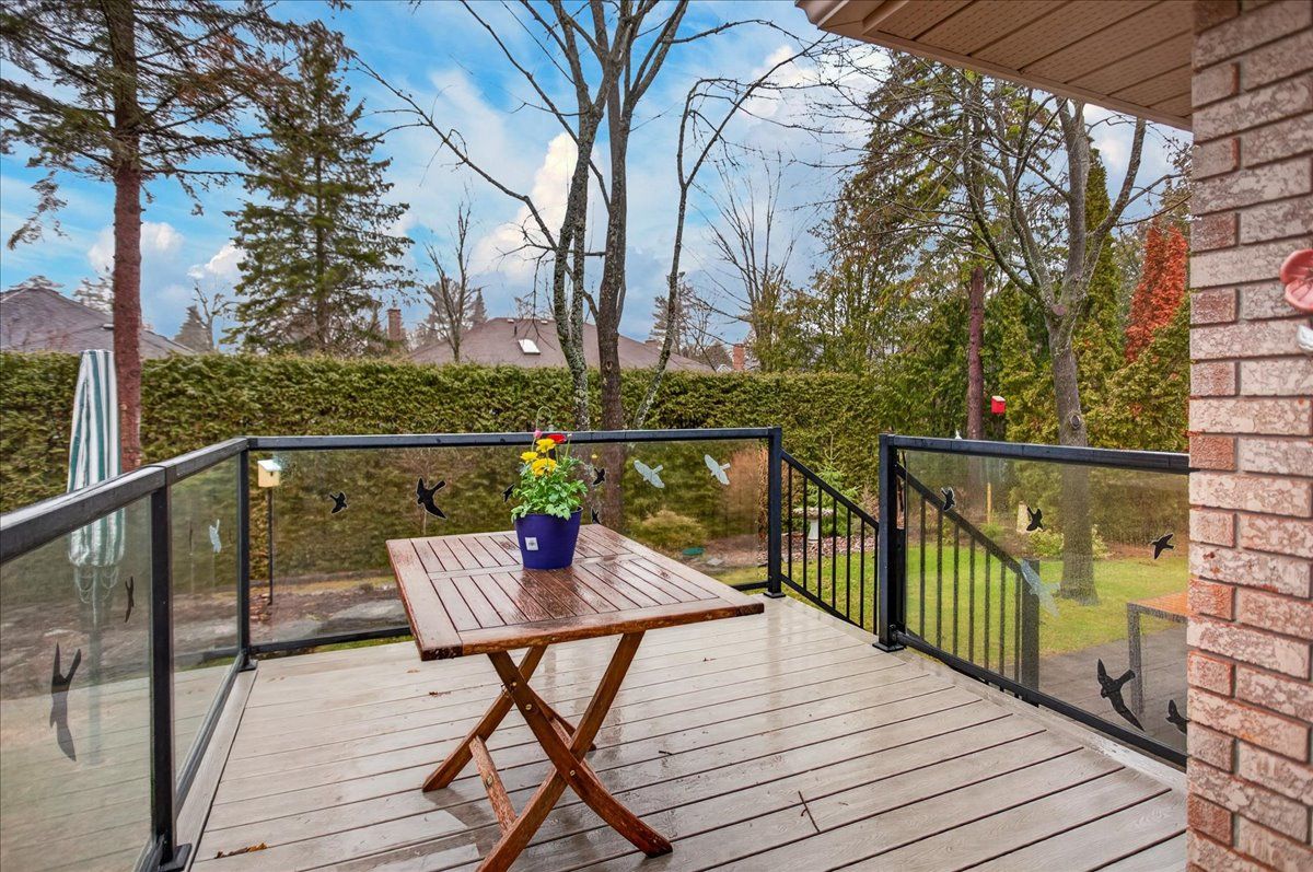 • Private backyard retreat with mature cedars and access to walking trails.