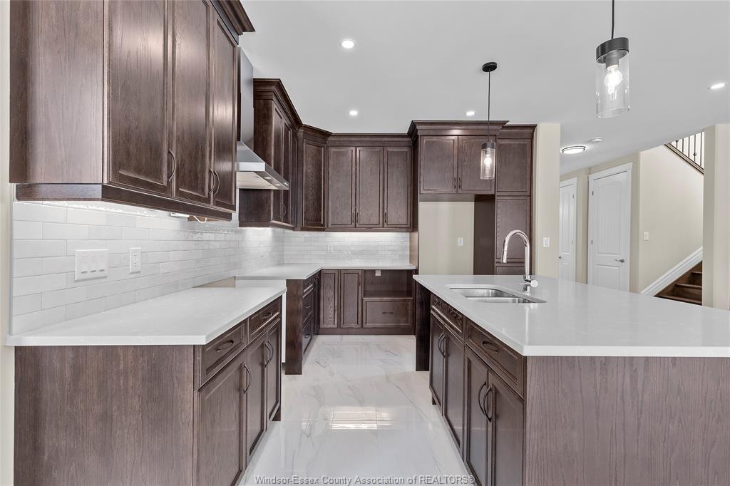 • Chef's kitchen featuring quartz counters and neutral tones.