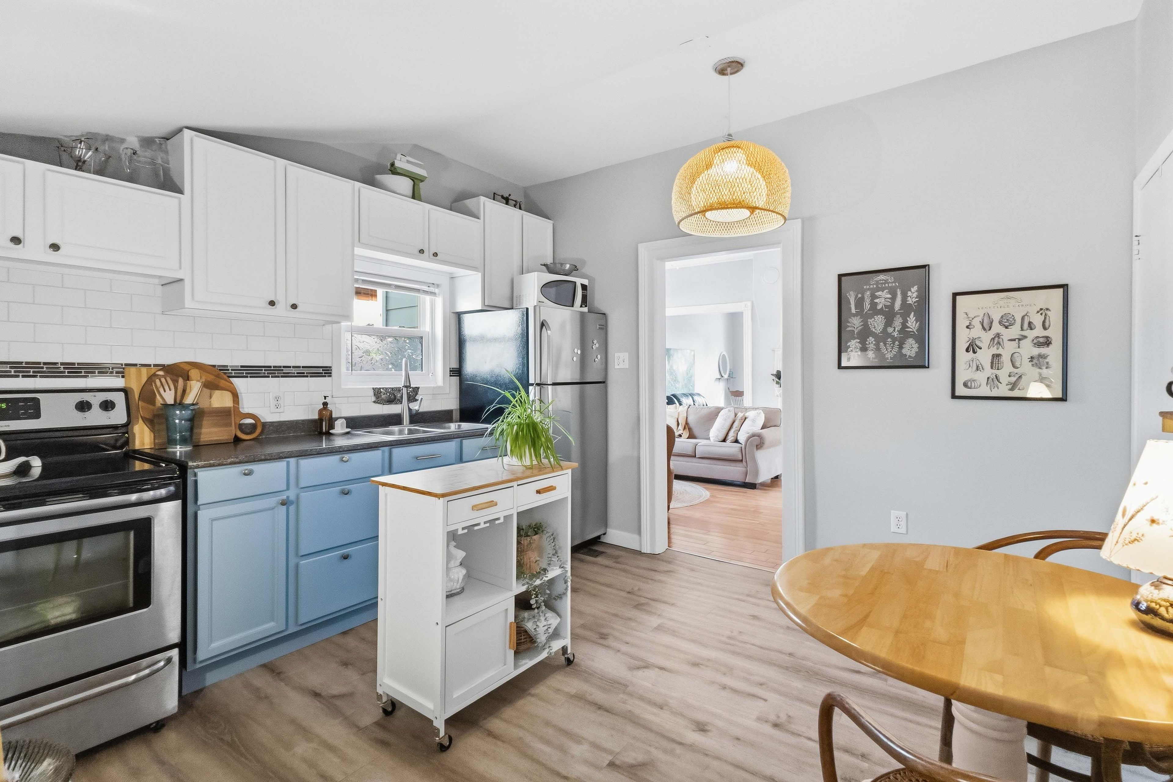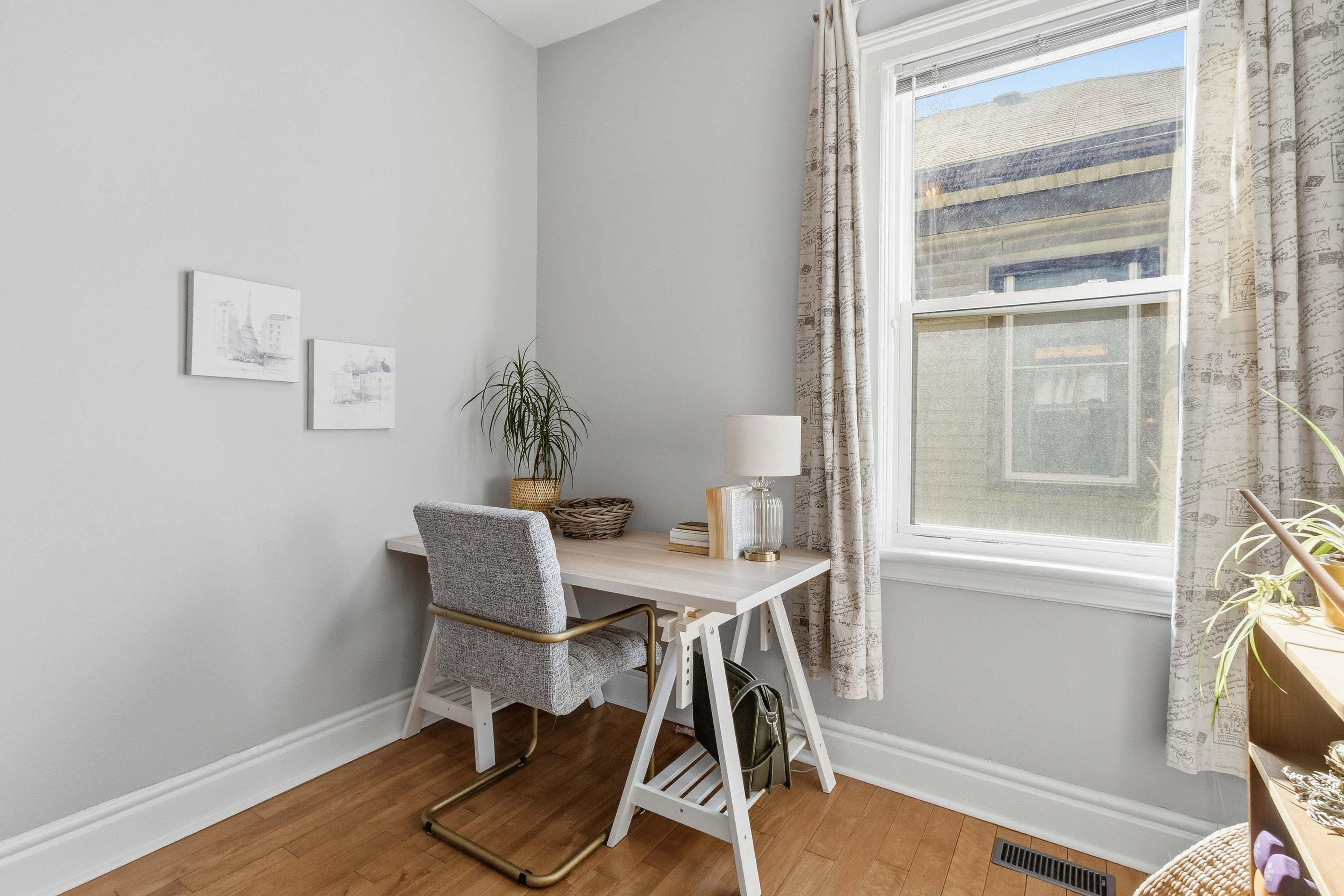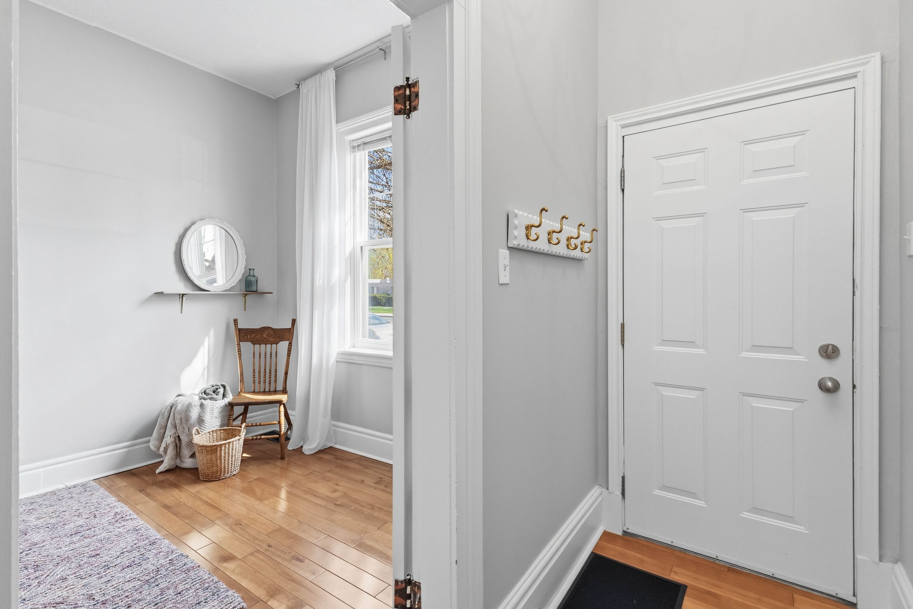 Cute, quaint, and close to the core! This sweetie is the perfect investment or new nest for the first time buyer, in move-in condition, with incredible access to your favourite downtown hotspots and a quick bus ride to campus. Hop on to public transport only strides from your door, with a direct route to the university gates within minutes, or stroll past harris park to discover london's entertainment scene seamlessly. Front door leads to first bedroom with hardwood flooring. Clever shared closet ensures storage isn't compromised, before continuing to front room for dining or den. This space could easily convert to a 4th bedroom, creating a lucrative rental scenario. The heart of this home is found in the charming living room, featuring 9 foot ceilings and plenty of natural light. Two additional bedrooms are accessed from this space, each with room for a queen-sized bed. Full bathroom includes modern finishes, a custom live edge vanity, and tiled shower. Chic kitchen includes some personality with updated painted cabinetry and cozy eating area. Bonus room ensures ultimate flexibility and optimal flow, whether you need a mudroom, reading nook, home office, or additional storage. With laundry conveniently tucked away and out of sight, this space will ensure your lifestyle will function with ease. Recent updates include replacement windows, ac unit, furnace, tankless water heater. Low maintenance crawlspace is well secured and hosts utilities comfortably. With an incredible walking score and an even better price tag, this is a home you'll be proud to call your own whether you're looking for an affordable first space or a fabulous investment proposition that your tenants will love!