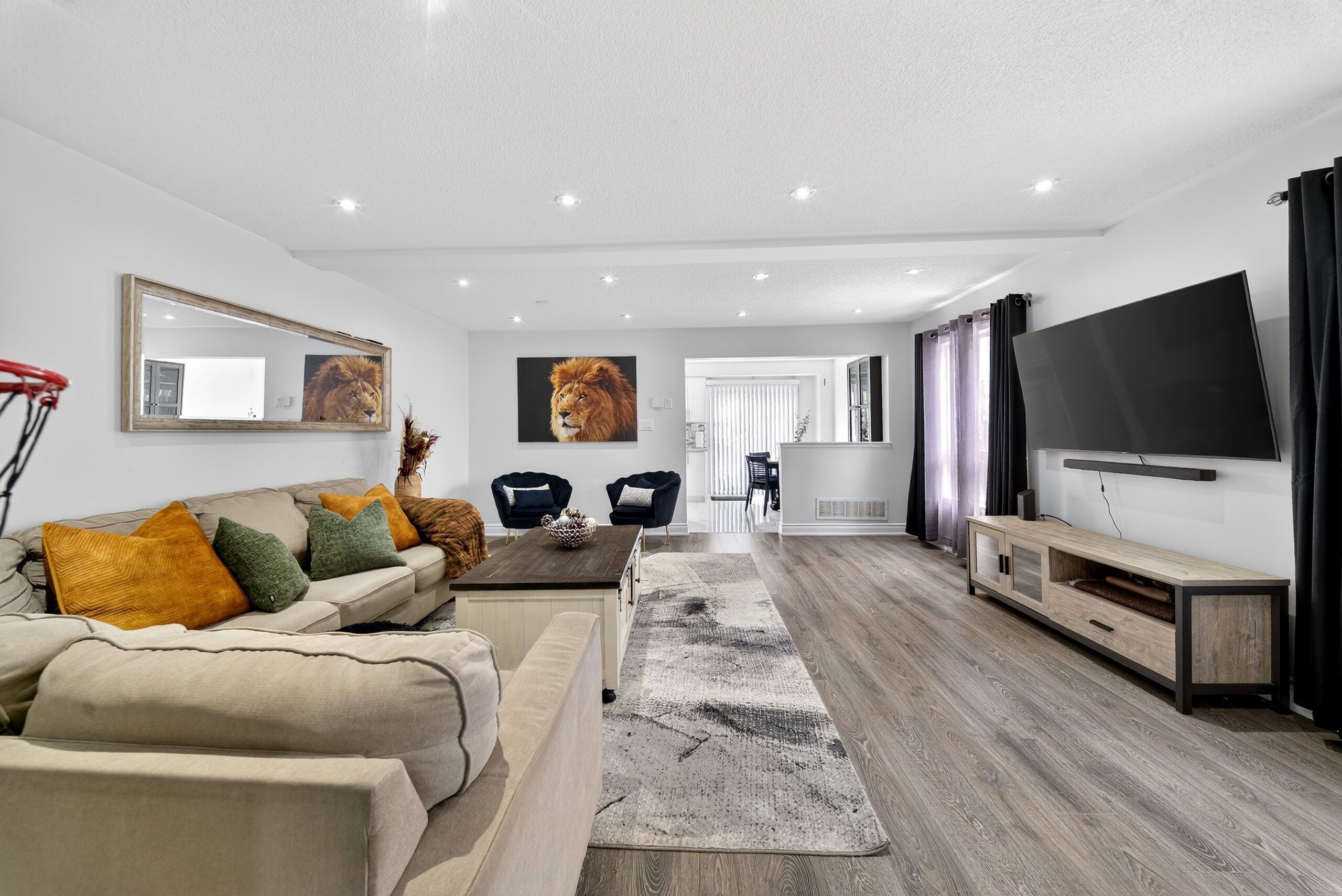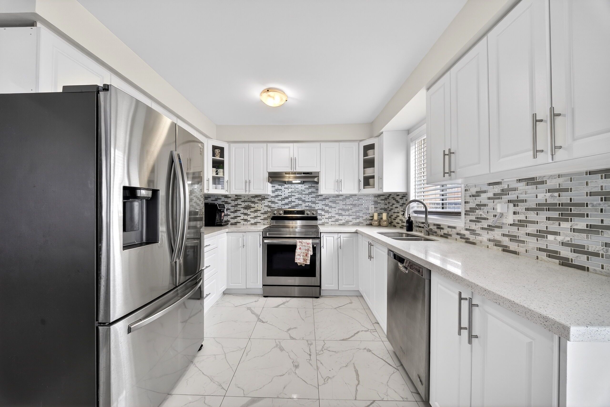 Beautiful semi-detached house for sale in brampton near mount pleasant go station. Located in the highly desirable fletcher's meadow community. This stunning and well-maintained home features 4 spacious bedrooms and 2. 5 bathrooms and has been newly renovated from top to bottom with modern finishes throughout. The bright and functional layout offers comfortable living spaces ideal for families. The upgraded kitchen features elegant quartz countertops, stainless steel appliances, ample cabinetry, and a practical layout perfect for everyday living and entertaining. The home is completely carpet-free and includes stylish pot lights in the family room, adding a modern touch. The second floor offers generously sized bedrooms along with the convenience of a laundry room. The finished basement includes a powder room and a versatile space currently set up as a home gym, with a separate entrance through the garage providing added flexibility. Additional highlights include an owned water heater tank, furnace replaced in 2023, one garage parking space, and two additional driveway parking spaces. Located in a highly desirable and family-friendly neighbourhood close to schools, parks, shopping, transit, and just minutes from mount pleasant go station.