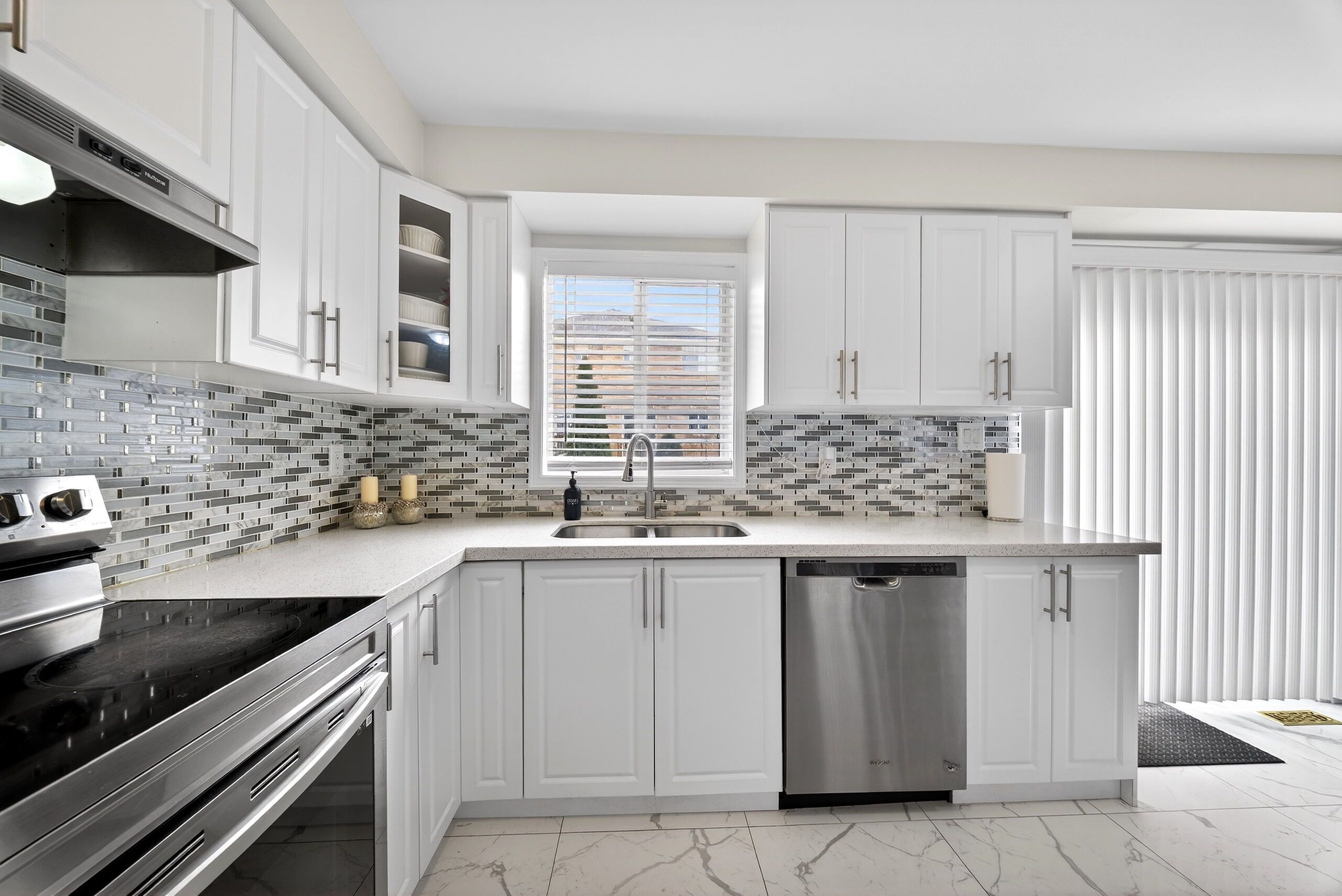 • Upgraded kitchen with modern finishes, quartz countertops, and stainless steel appliances.