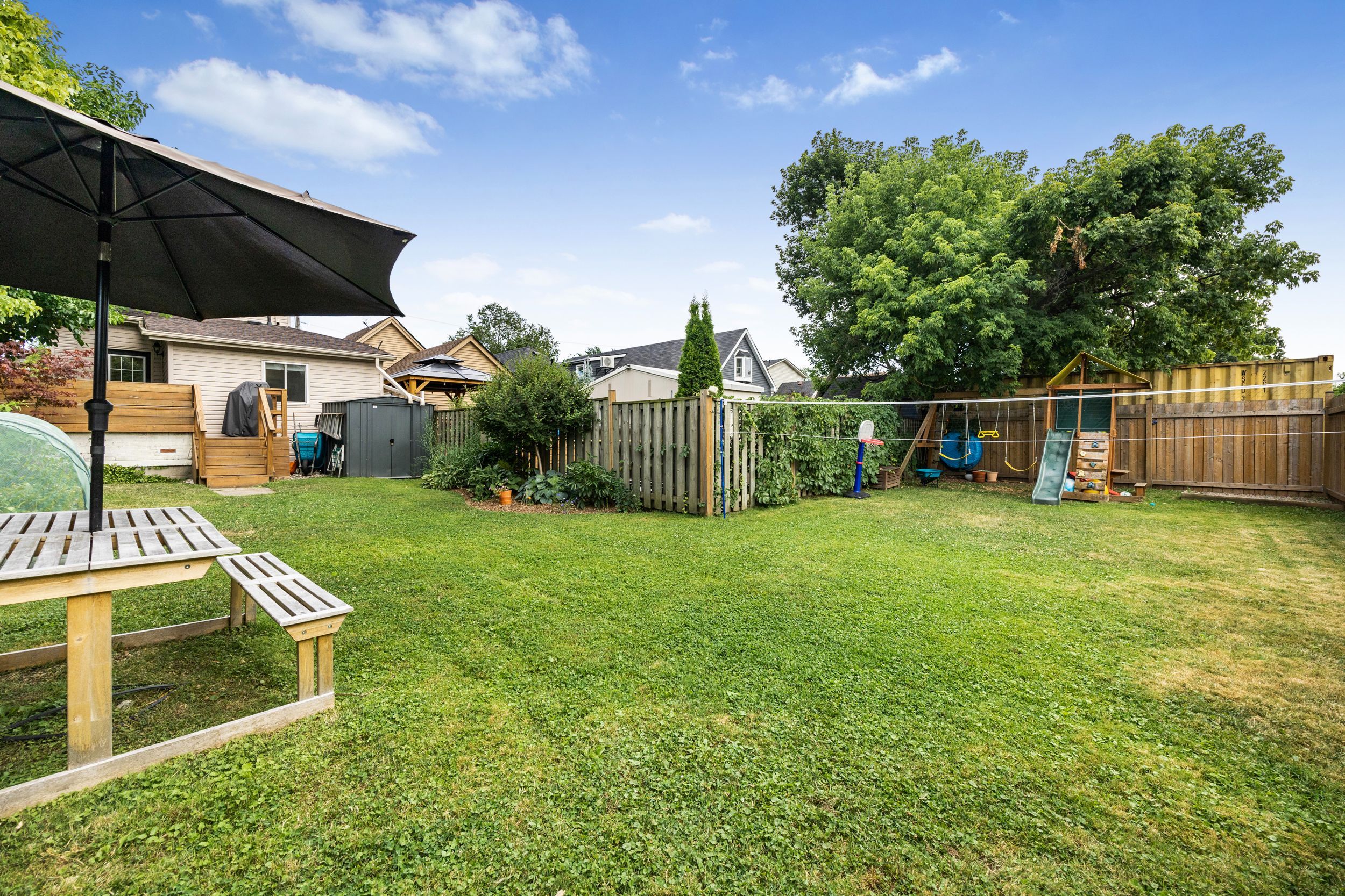 Fully updated & move-in ready, with an incredible backyard you have to see! Meticulously maintained with 1504 sq. Ft. Above grade, 3 big bedrooms, 2 full baths, blending modern updates with charming original character. Nothing to do here - with a renovation in 2019 and so many updates since: new driveway, furnace, ac, water tank, all appliances, landscaping, and more (details attached). The main floor features a bright open-concept layout unique for the area, stylish kitchen with stainless steel appliances, plus a main-level bedroom and full bath, perfect for guests, in-laws, single-level living, or make it an incredible home office or playroom. Upstairs, you'll find two surprisingly spacious bedrooms, a sleek 3-piece bath, and the ultimate convenience of upper level laundry! Outside, enjoy a cozy covered front porch, a private back deck ideal for entertaining, and an incredible backyard, double-wide at the rear with fresh landscaping, mature trees, perennials, and loads of space for kids, pets, gardening, or relaxing in total privacy. Extras include motion-sensor lighting and a new shed. Located just around the corner from the boys and girls club, queen mary elementary, ottawa street shops and market, gage park, and centre mall with easy transit access. A rare turnkey opportunity in a family-friendly, amenity-rich neighbourhood, this is the perfect affordable, turnkey starter home!