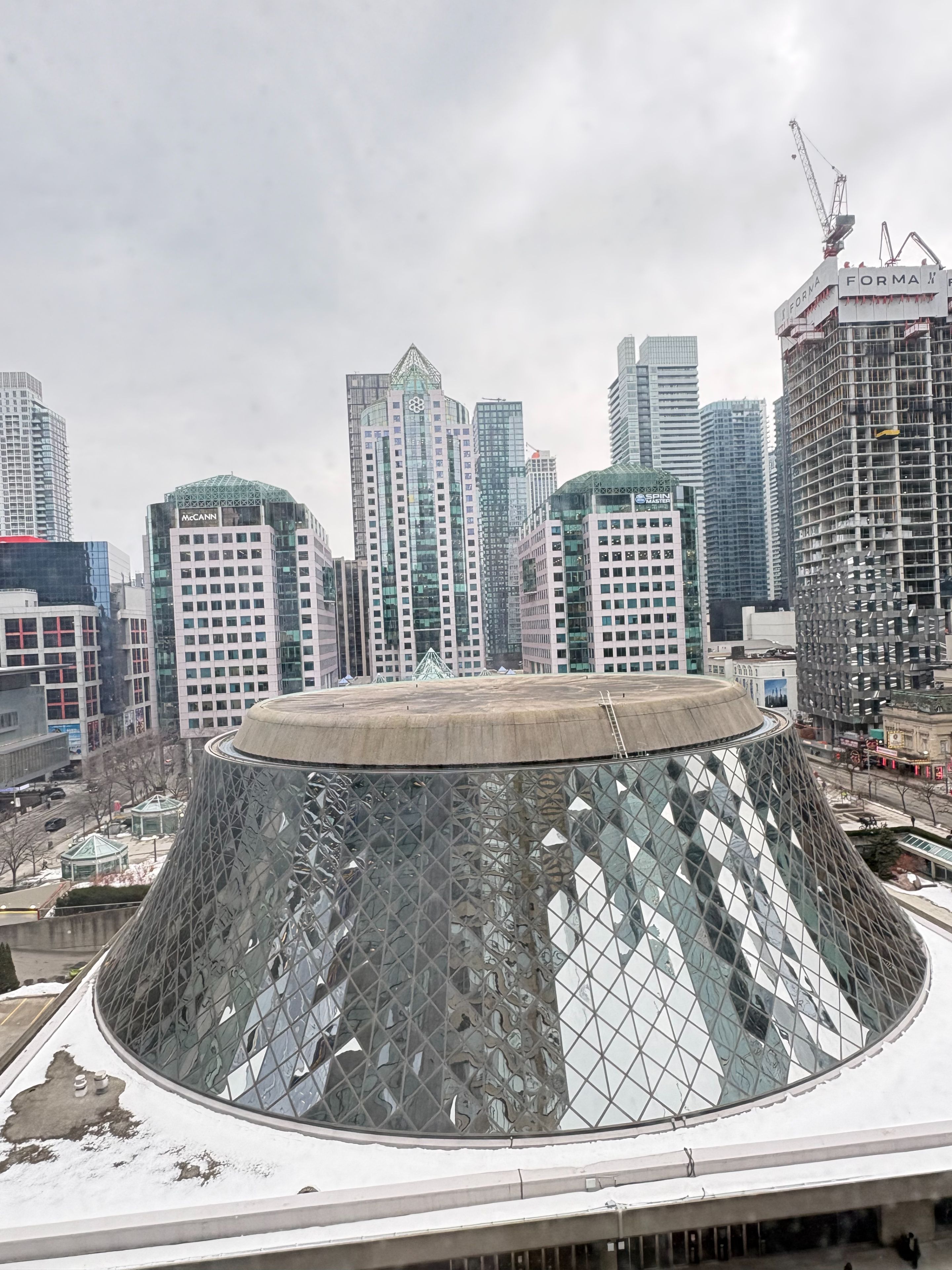 Wrapped in the charm of king & university, this suite sits in the heart of the city with a walk score of 100, directly across from the timeless beauty of roy thomson hall-symphony place at its most poetic. Tucked within a classic boutique building, this one-bedroom plus den feels like a quiet retreat above the rhythm of the entertainment district, shared with only a handful of neighbours on the same floor. The home opens into a spacious layout where calm and comfort meet. The primary bedroom features a serene 5-piece ensuite with a jacuzzi-your own private sanctuary-while a separate powder room welcomes guests with ease. The custom kitchen, rich with storage and character, includes a charming pass-through window perfect for sharing late-night snacks, morning coffees, or a glass of wine as music drifts in from the city below. An exclusive parking space sits beside an oversized private locker room, offering rare convenience in the downtown core. Steps from st. Andrew station, theatres, restaurants, and the path, this is a place where the city's energy surrounds you, yet your home remains a peaceful escape.