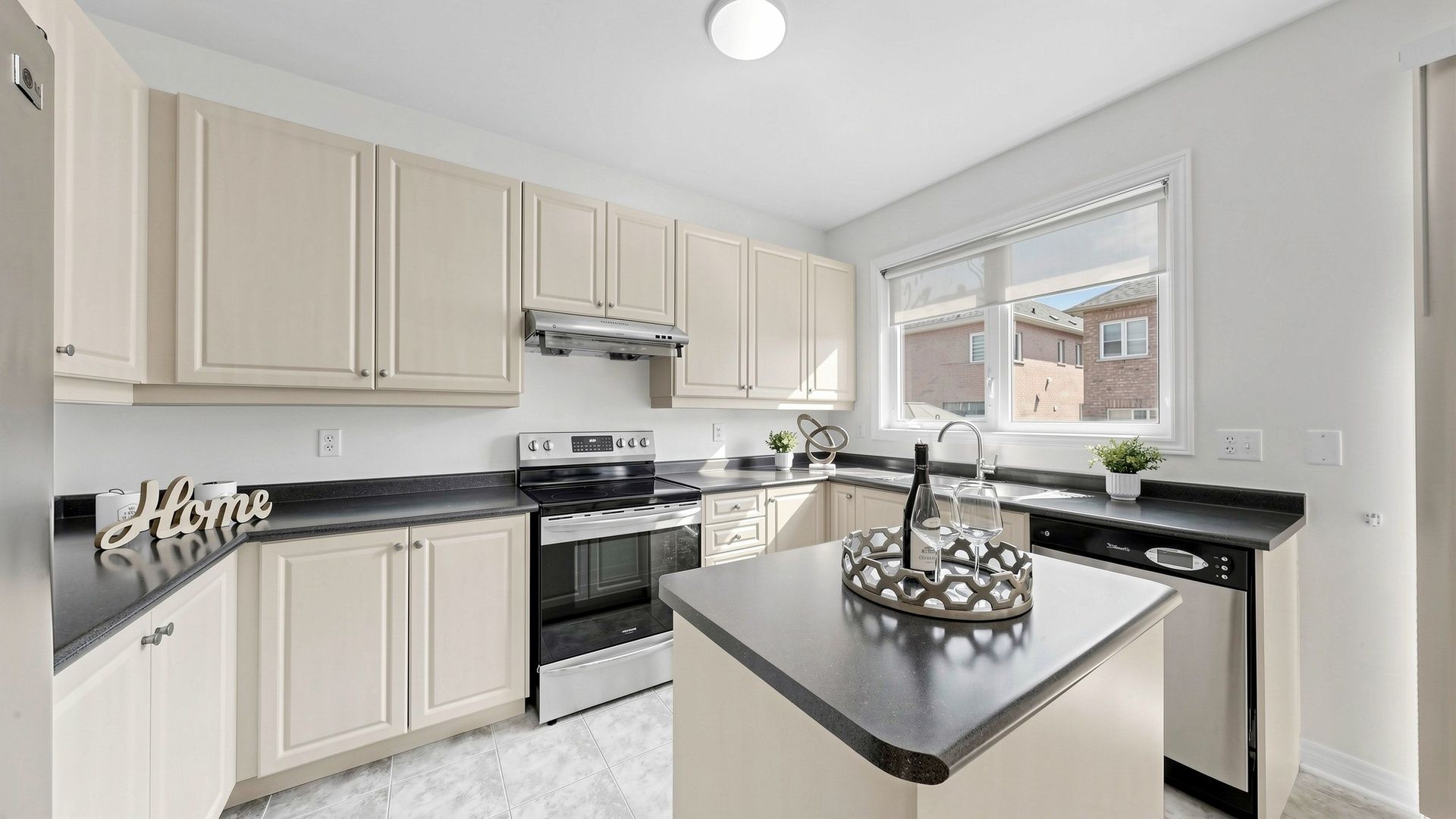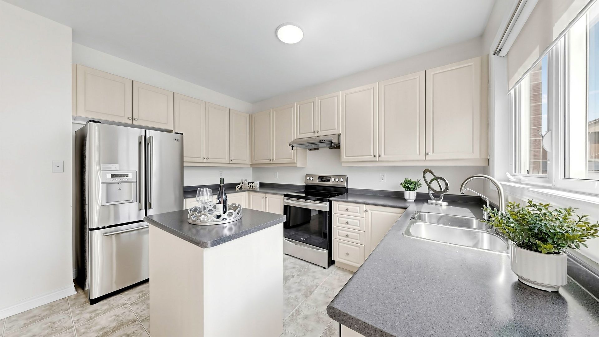• Modern kitchen with stainless-steel appliances and ample storage.